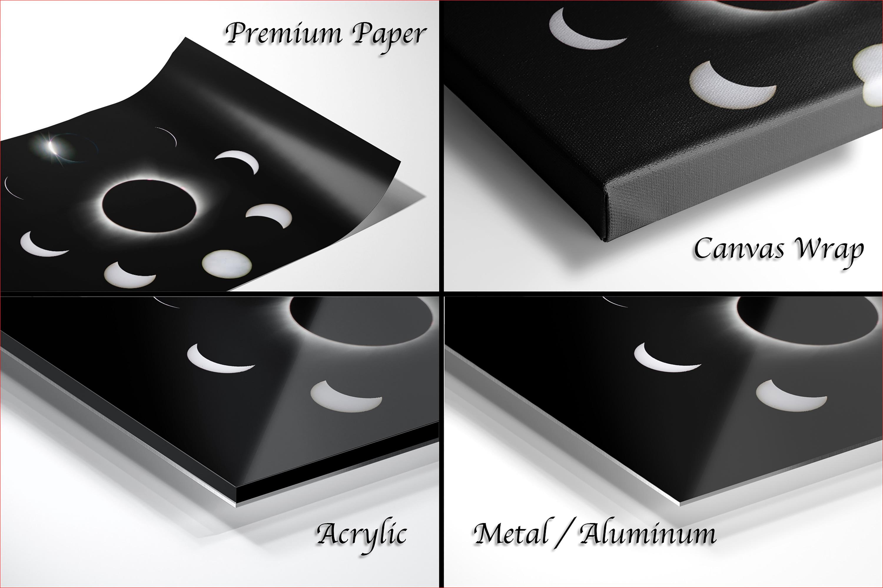 3.1) Only framed paper prints, acrylics and aluminum/metal prints will have a 2" white mat border. 3.2) Canvas prints will be a flush mounted (no mat border) to the frame.