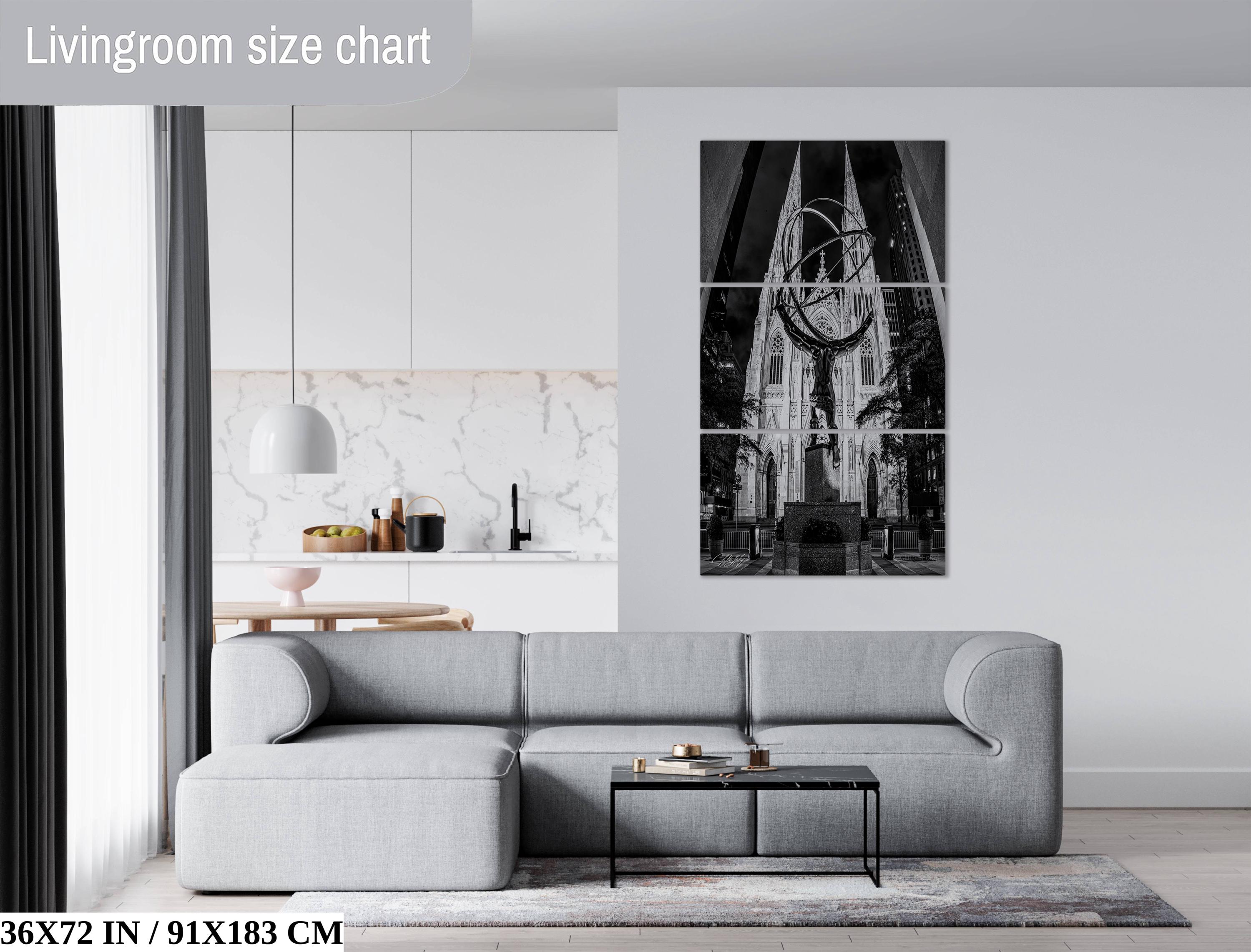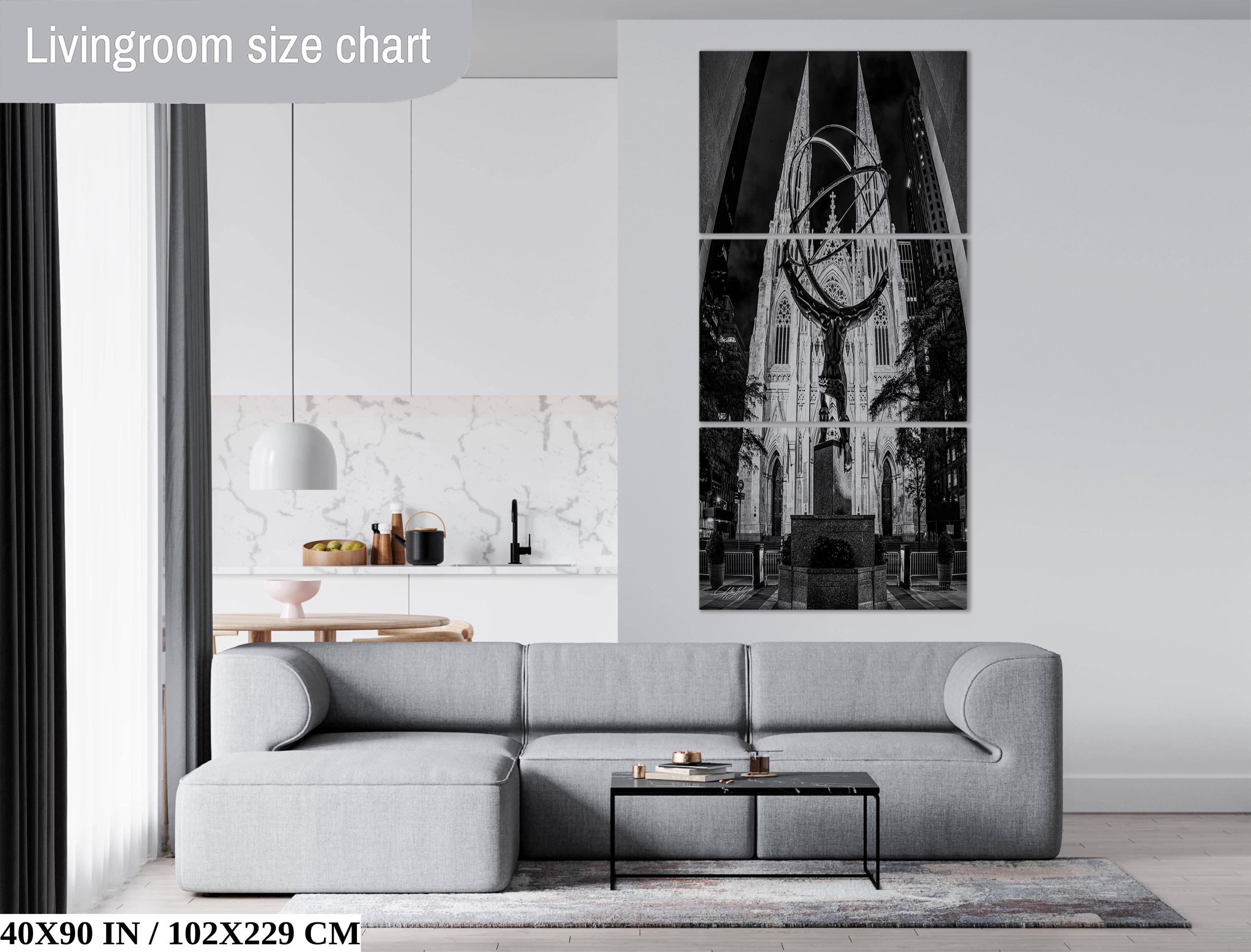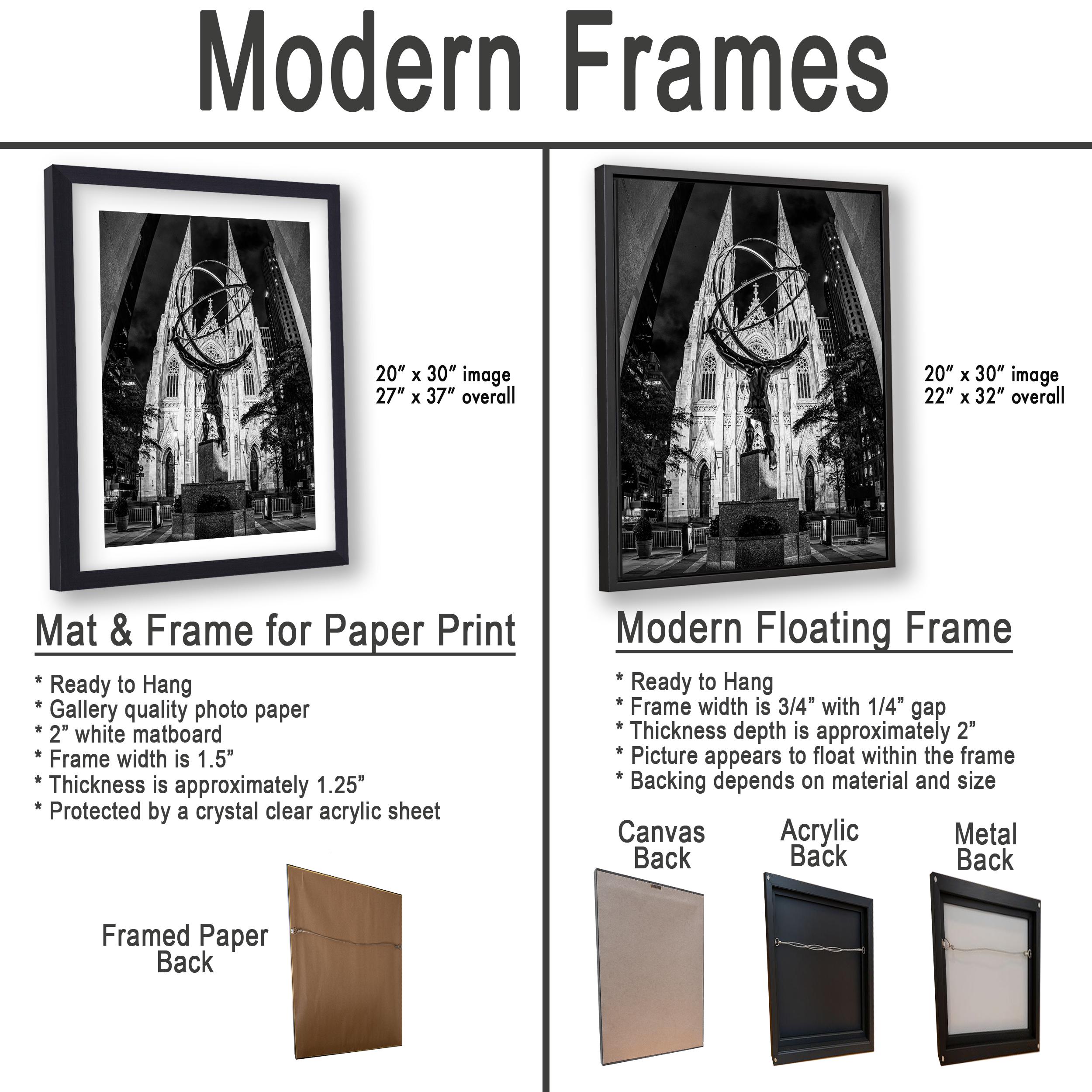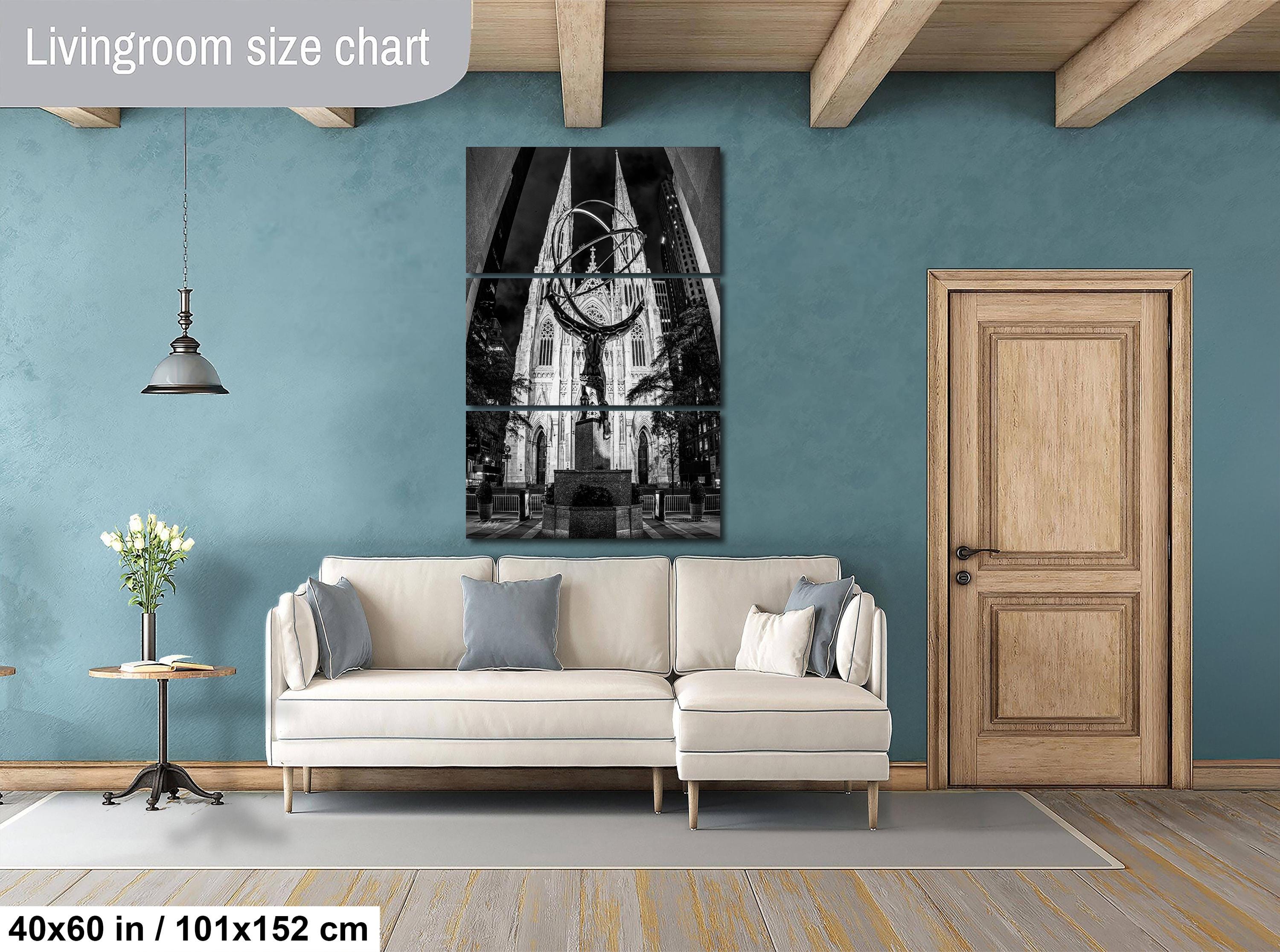 Atlas St Patrick metal print captures the iconic NYC urban landscape with striking black and white photography. This fine art signed piece beautifully showcases the gothic cathedral and the powerful Atlas statue, making it a timeless addition to your wall decor.