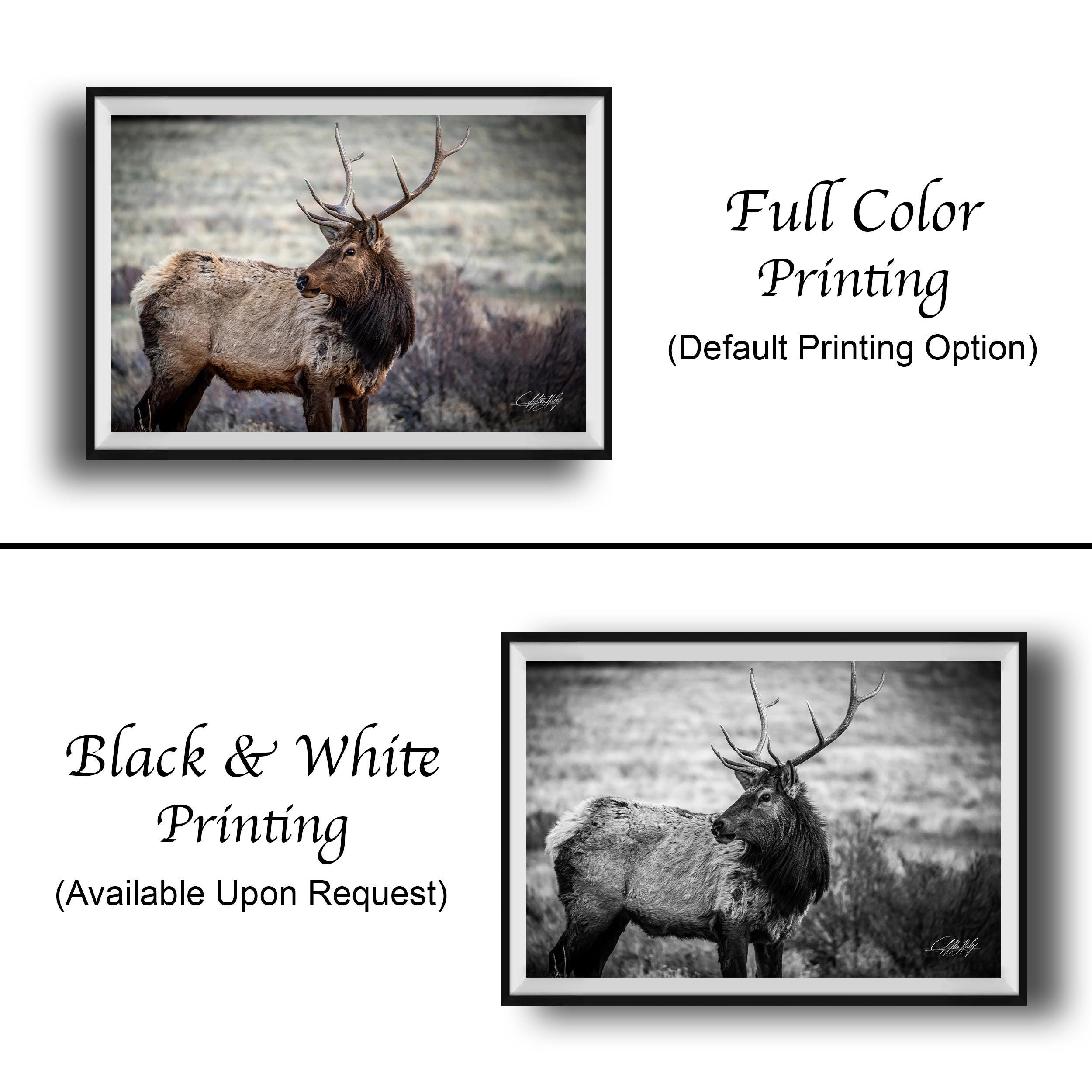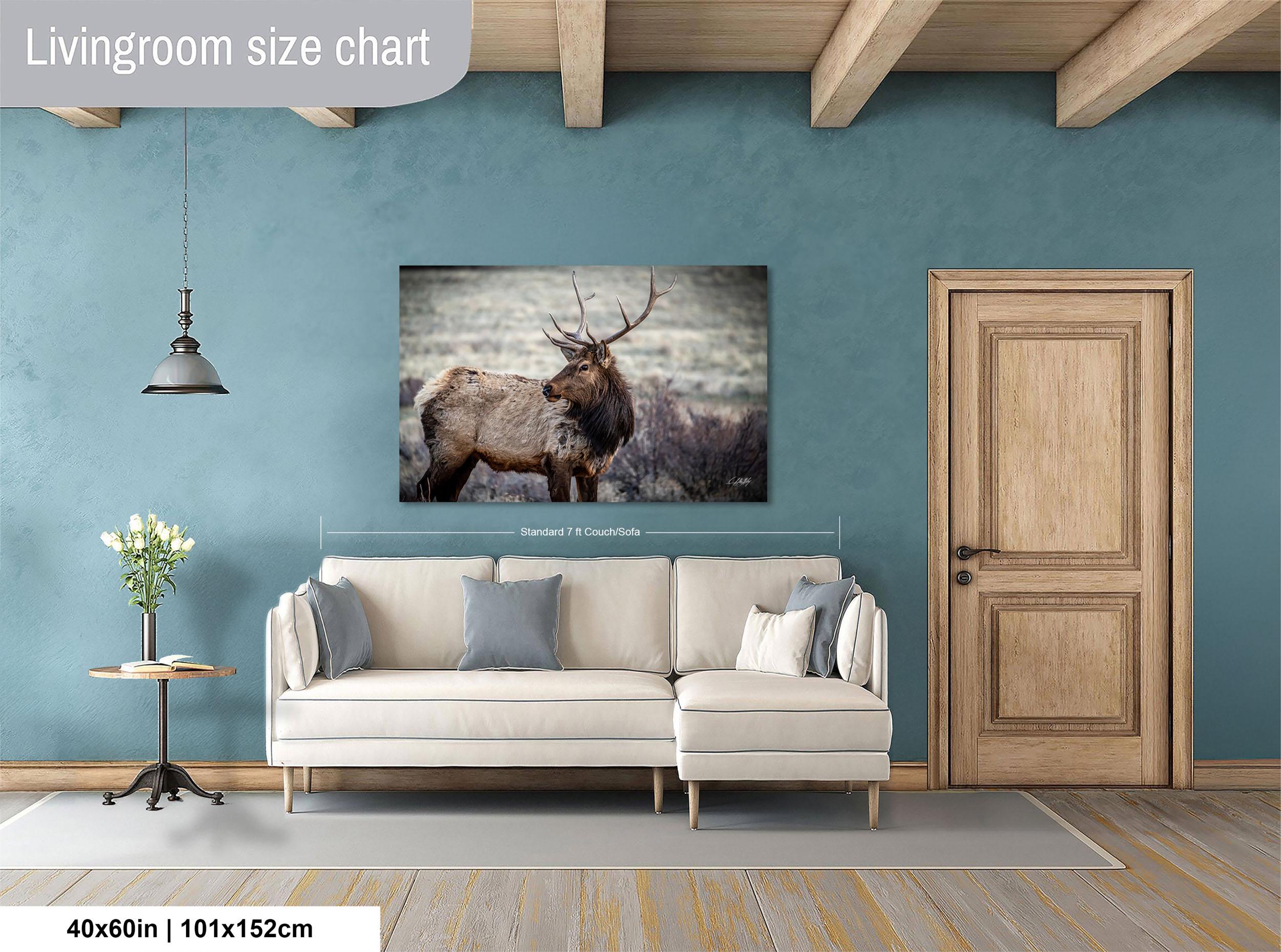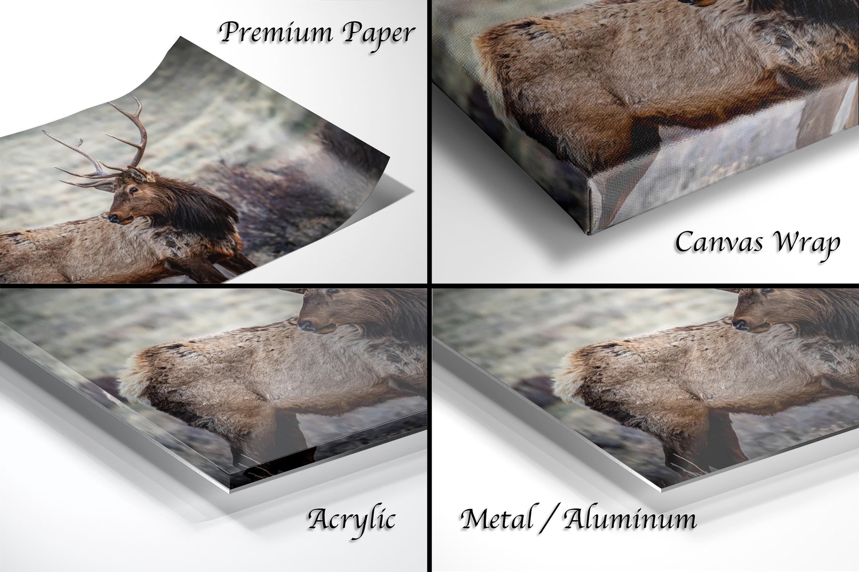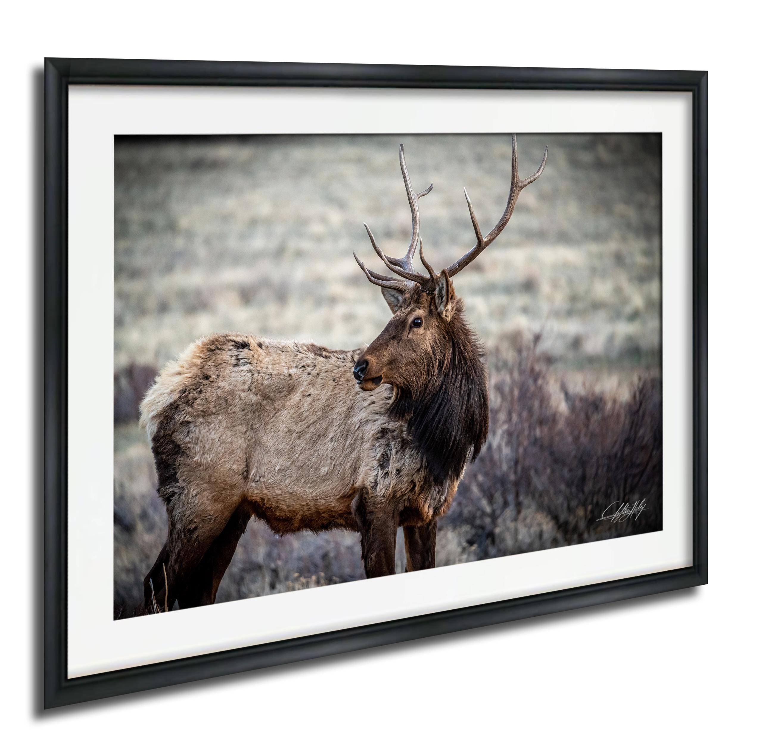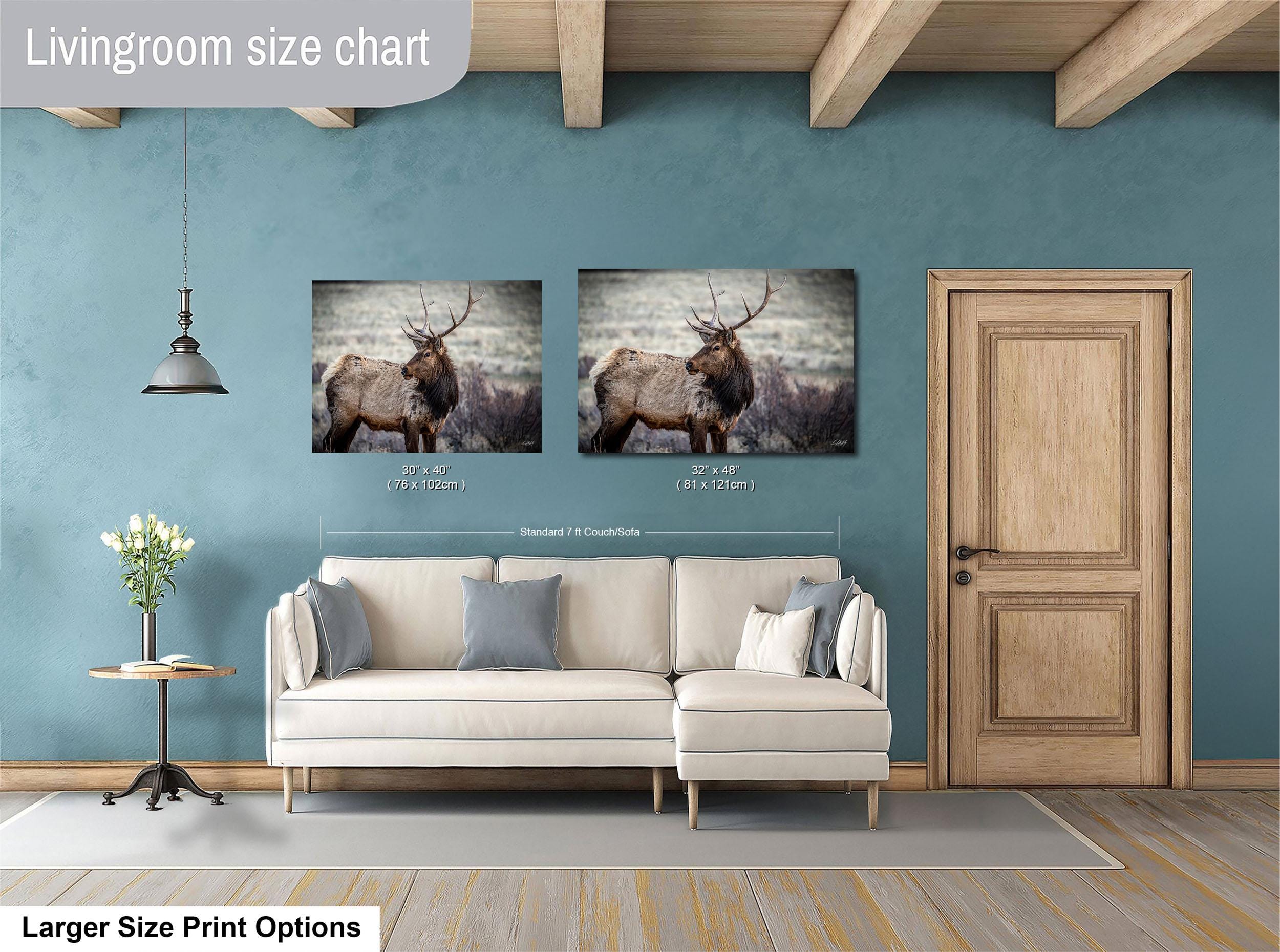 Experience the majestic beauty of the Rocky Mountains with this trophy elk image showcasing shaggy elk coats and impressive elk antlers. Printed on high-quality materials, this western art print brings the wilderness right into your home.