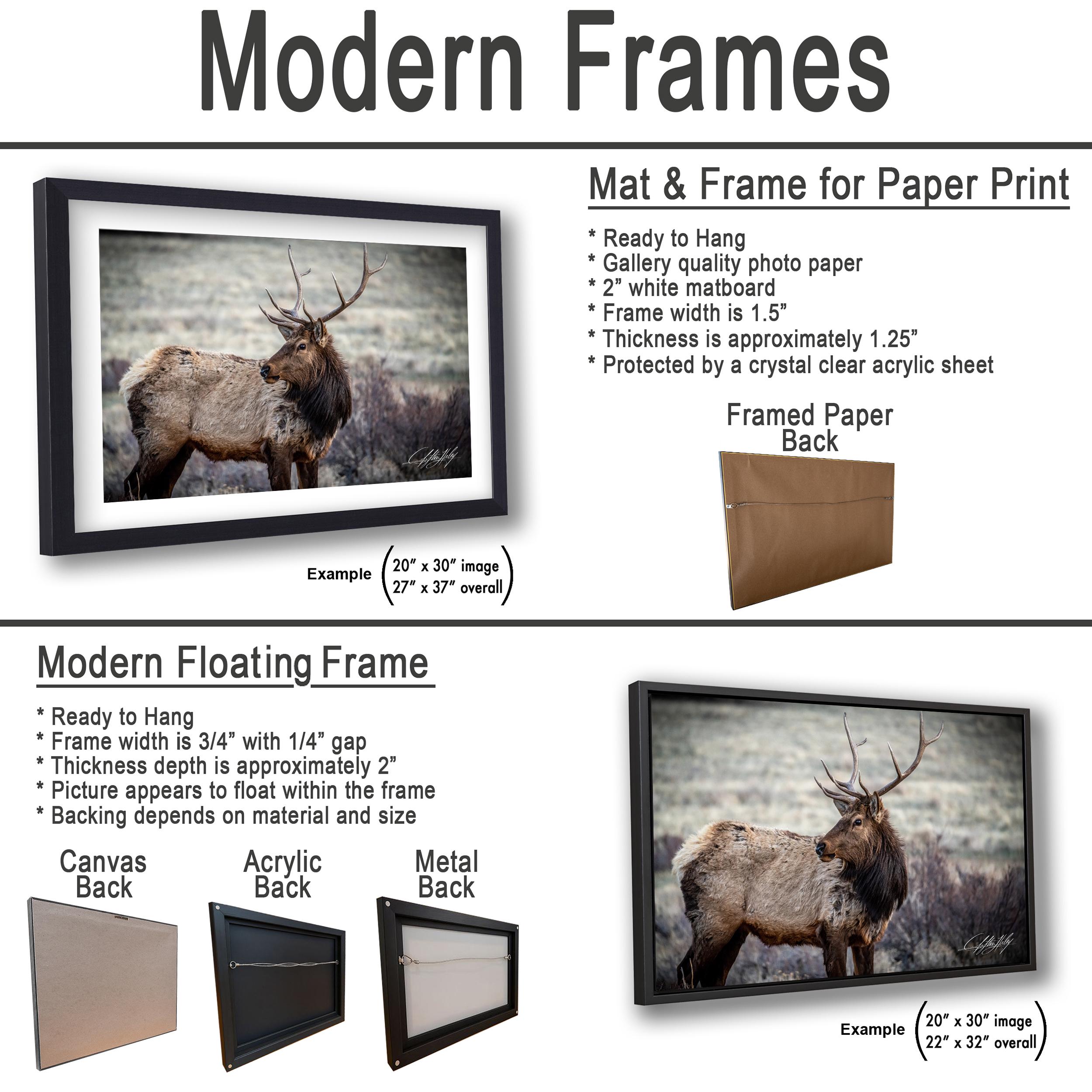 3.1) Only framed paper prints, acrylics and aluminum/metal prints will have a 2" white mat border. 3.2) Canvas prints will be a flush mounted (no mat border) to the frame.