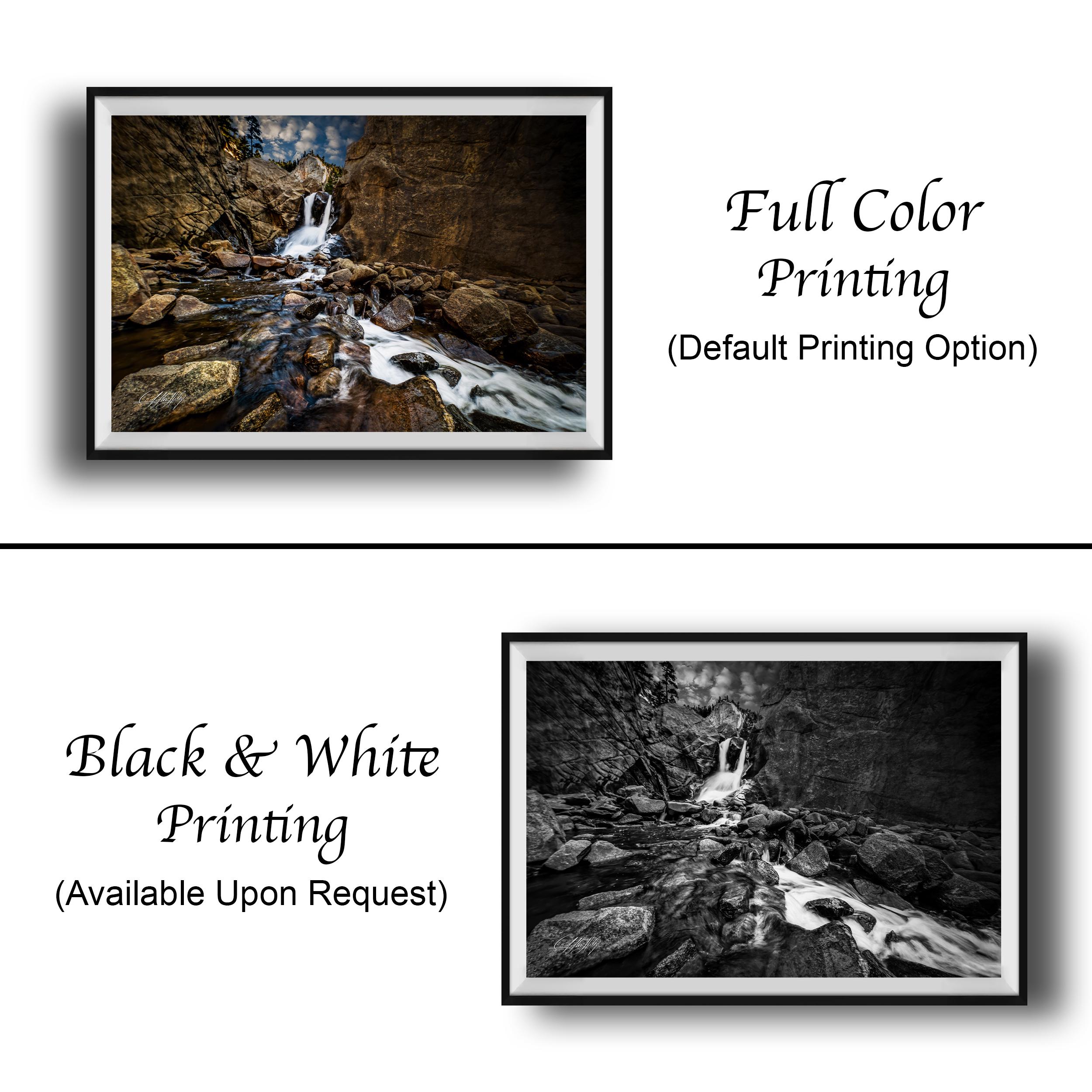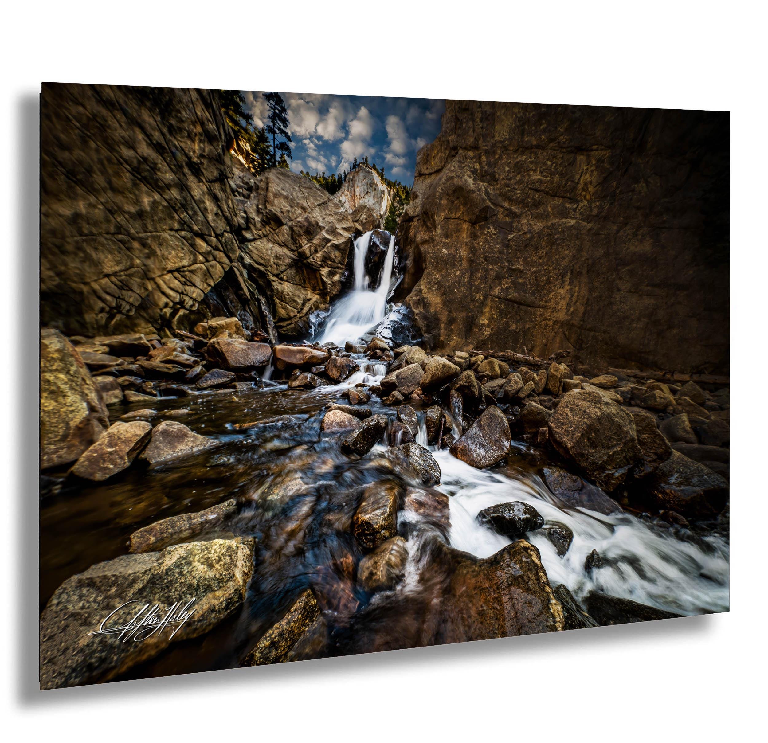- ✅ Made-to-order fine art print featuring the artist's signature in the bottom corner for authenticity - ✅ Available as framed paper prints, acrylics, aluminum/metal prints with a 2" white mat border, or canvas prints with flush mounting - ✅ Dimensions and materials vary by format; ideal for rustic cabin decor or gifting to hikers and nature lovers - ✅ Captures the natural wonder of mountain stream art with a long exposure effect that highlights water movement