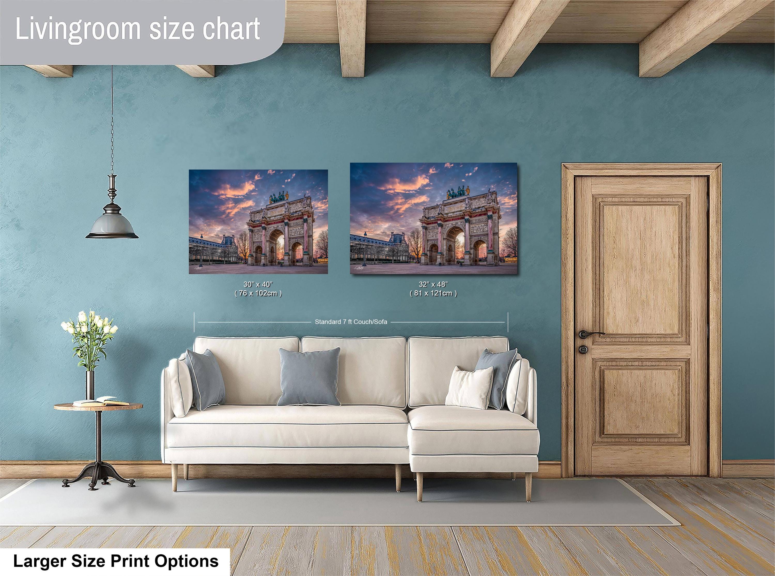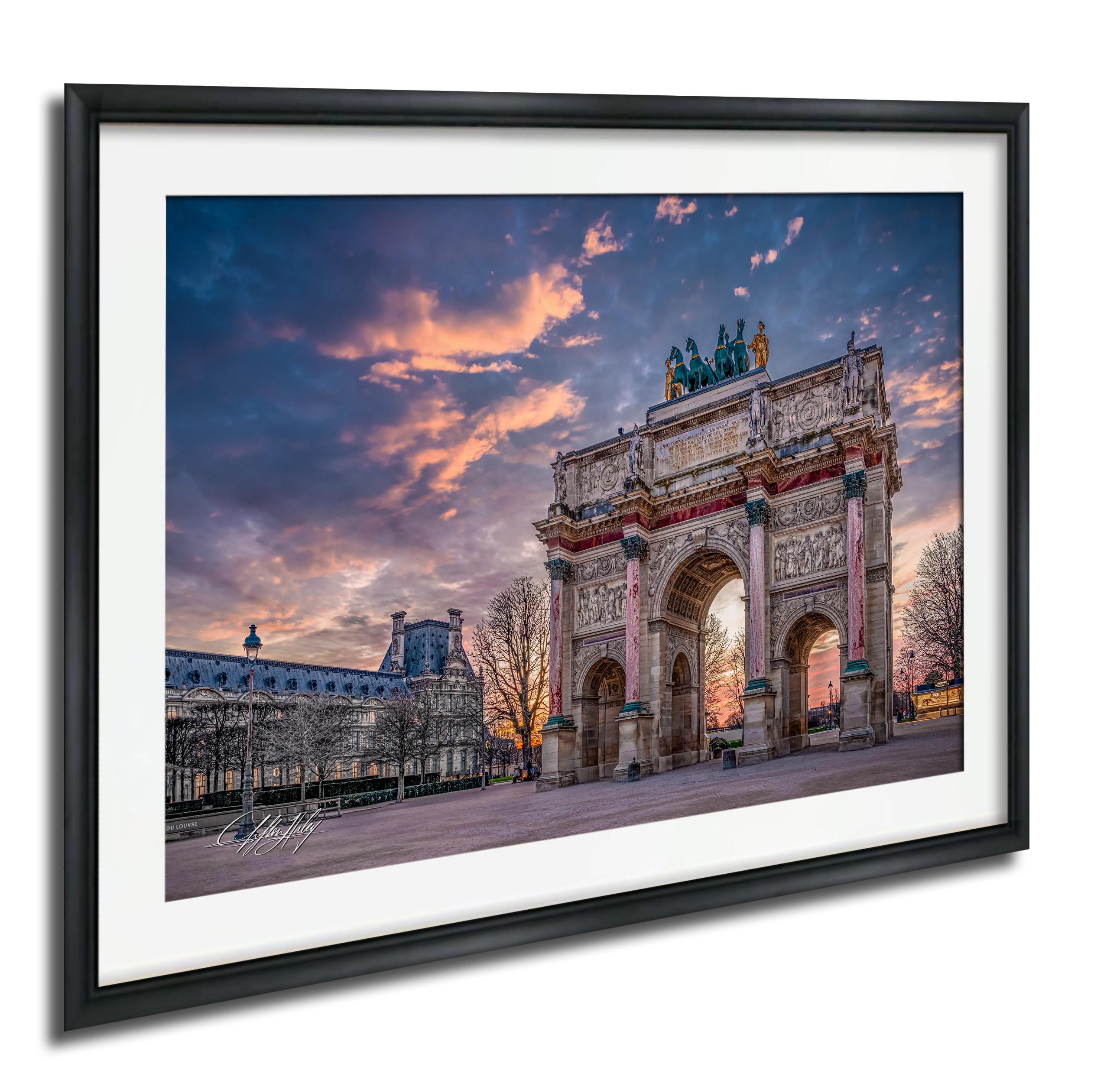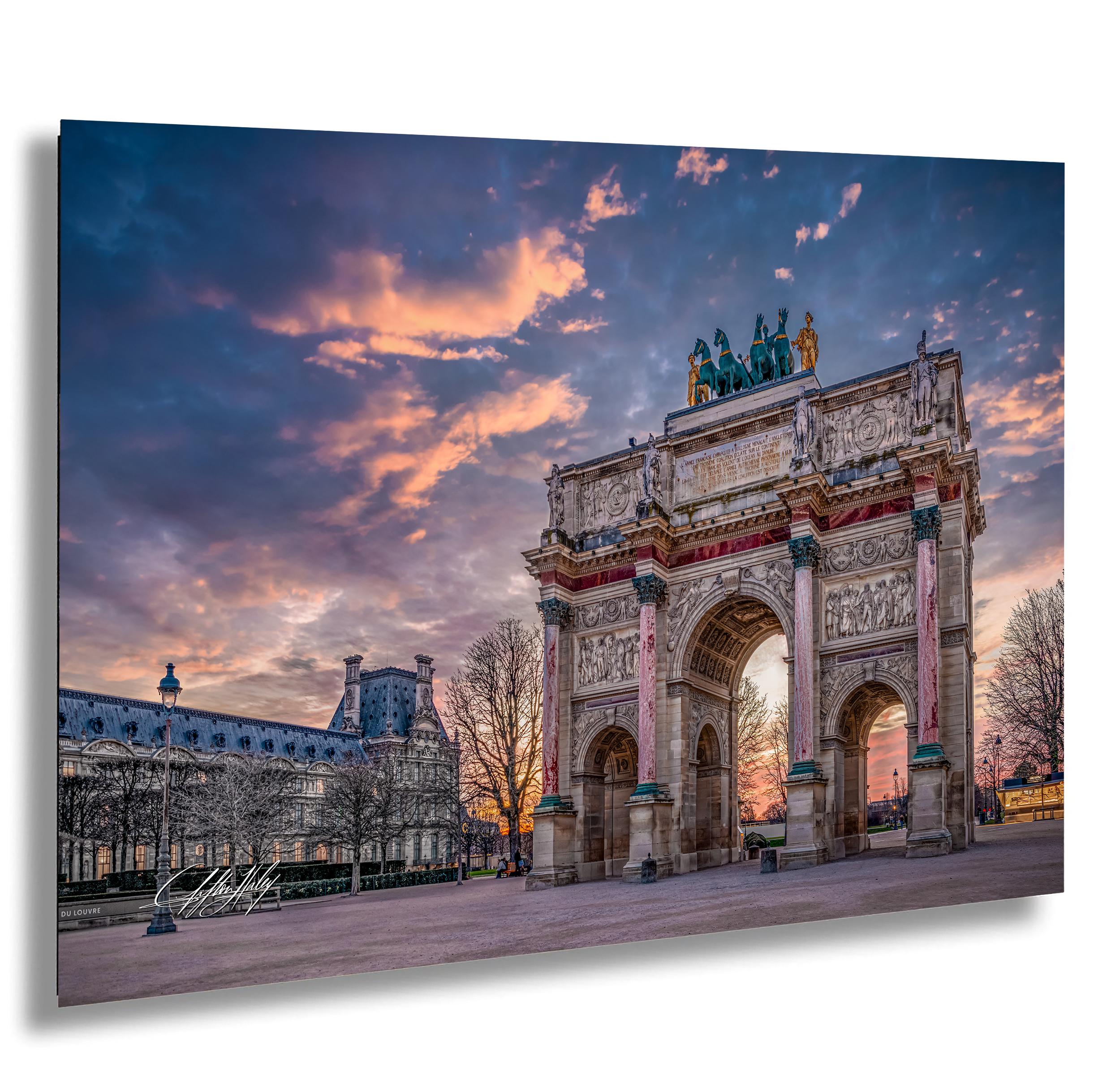 Experience the timeless beauty of the Arc de Triomphe du Carrousel Paris captured at sunset, a stunning travel wall art piece that brings European history and golden hour decor into your space.