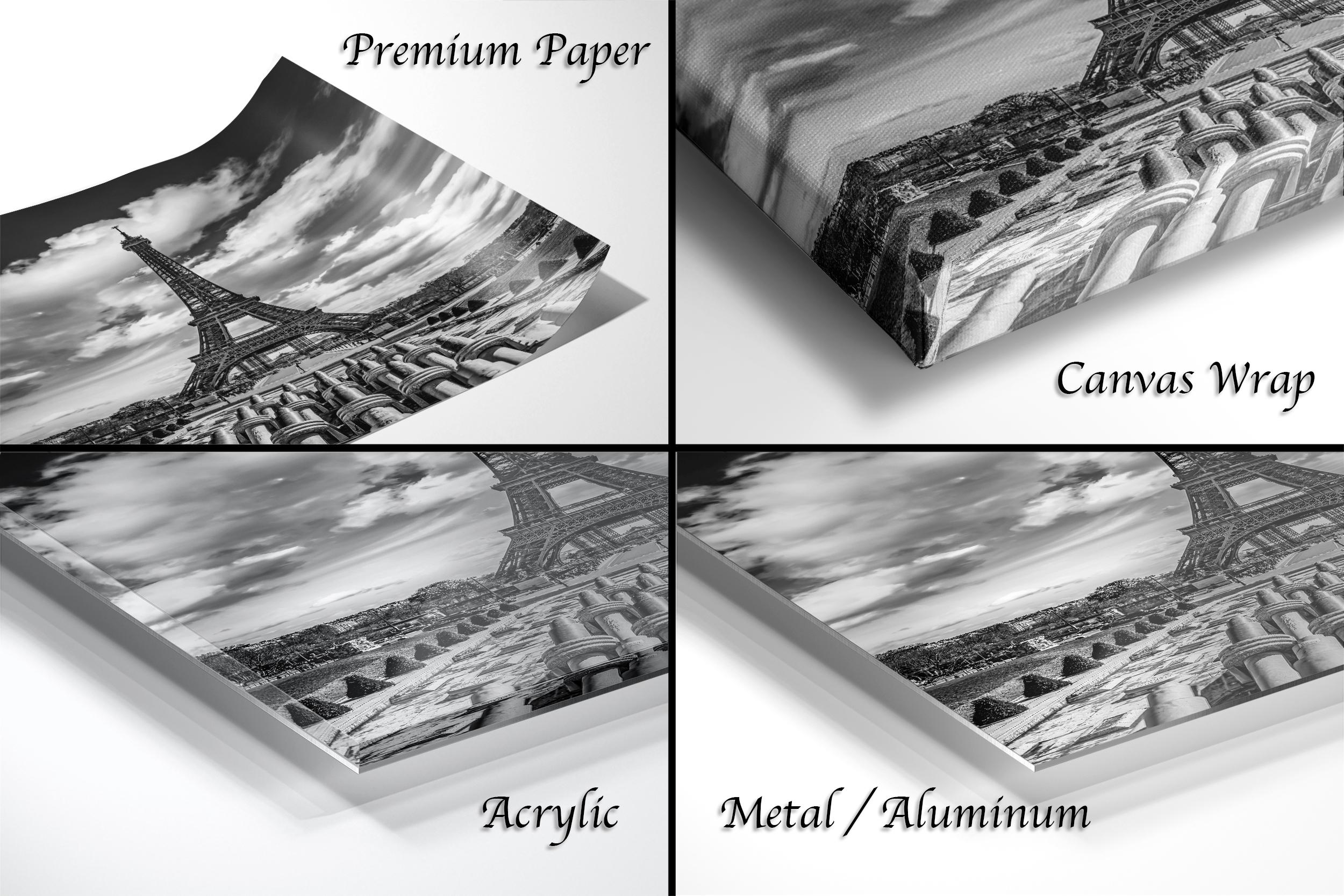 1. Each custom fine art piece is made specifically for you, ensuring a unique and personal touch—returns are not offered, but we gladly exchange or replace any damaged items. 2. The artist’s signature in the bottom corner authenticates your Paris travel gift as a genuine creation. 3.1 Framed paper prints, acrylics, and aluminum/metal prints feature a 2" white mat border for a classic presentation. 3.2 Canvas prints are flush mounted without a mat border, offering a sleek modern look.