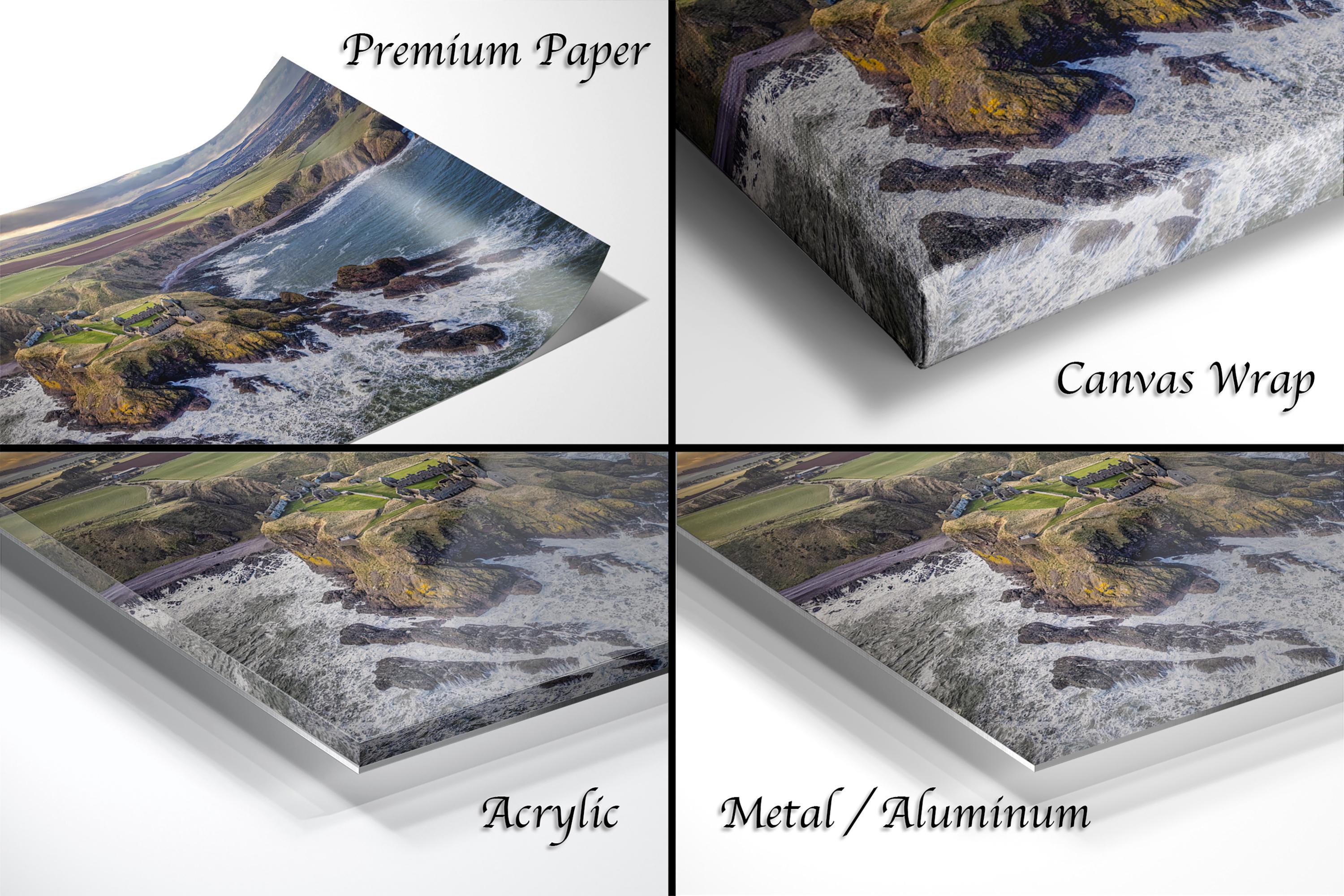 3.1) Only framed paper prints, acrylics and aluminum/metal prints will have a 2" white mat border. 3.2) Canvas prints will be a flush mounted (no mat border) to the frame.