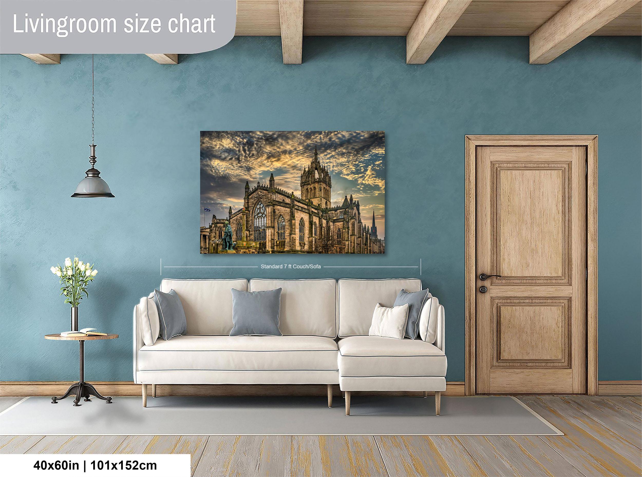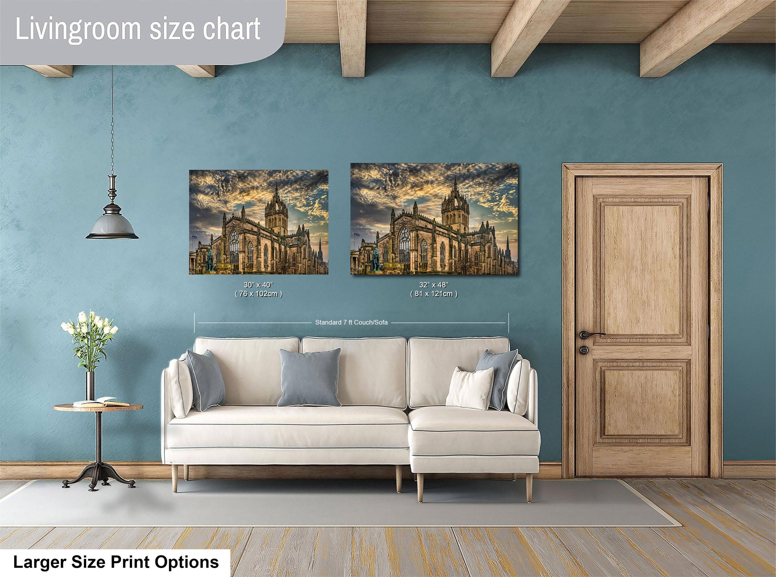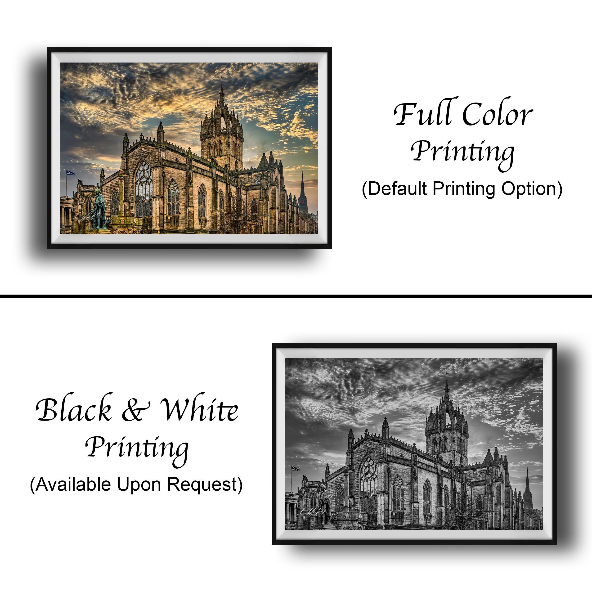Discover the majestic St Giles Cathedral, Edinburgh Castle, and gothic cathedral landmarks in this stunning travel photography print, capturing Scotland's rich heritage.