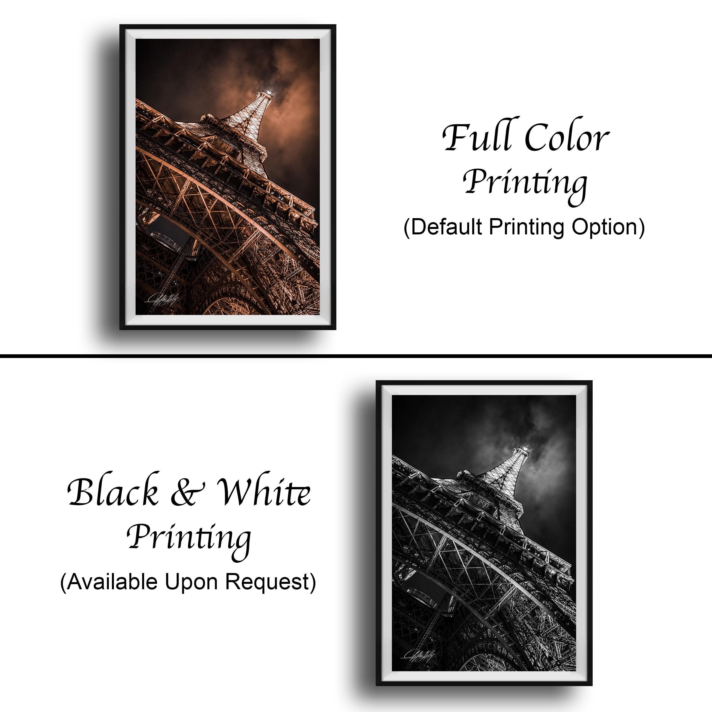 Eiffel Tower Paris print captures the iconic landmark bathed in a dreamy sunset glow, perfect for adding a touch of romance to your travel wall decor. This fine art cityscape brings the ethereal beauty of Paris into your home, making it a unique gift for lovers of France and travel.