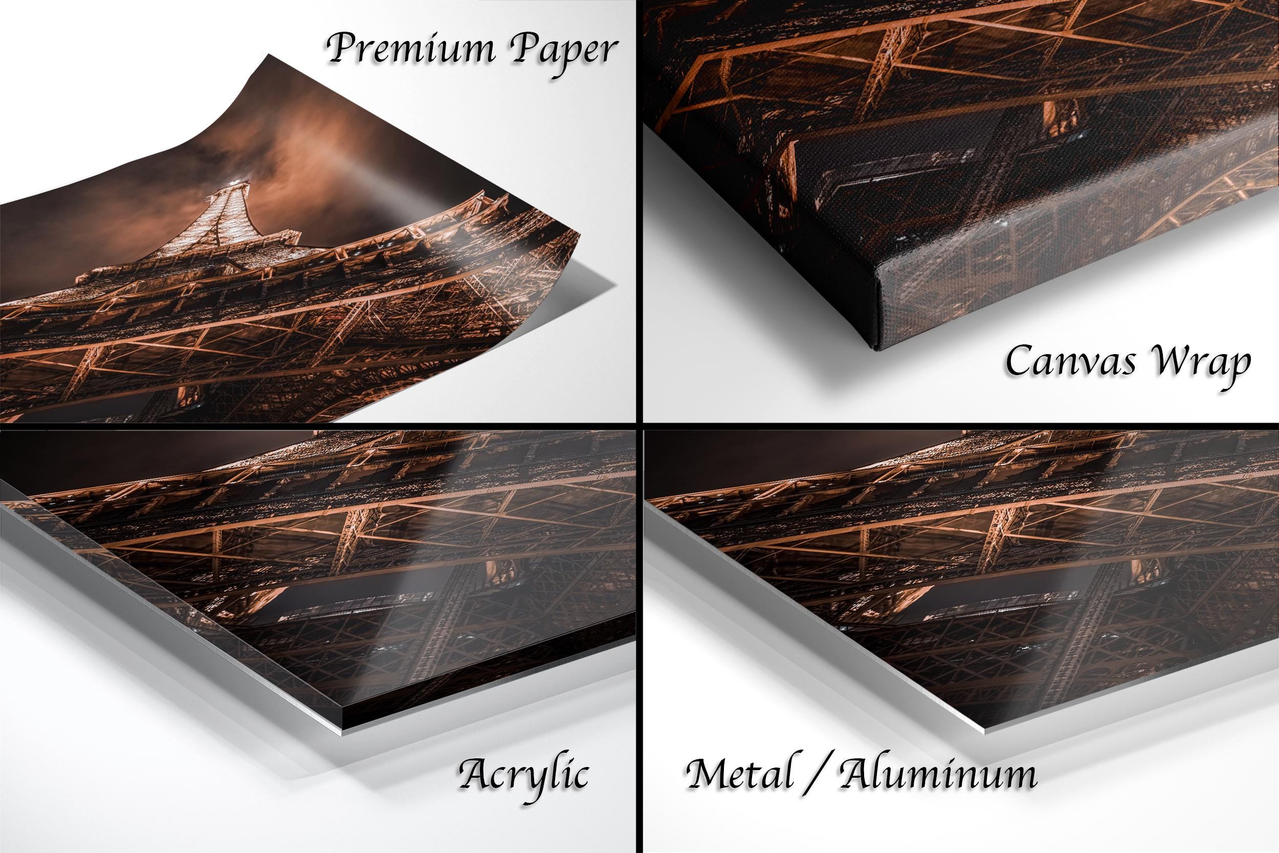 Each made-to-order print is crafted with care to ensure your artwork is unique and personal. Choose from framed paper prints, acrylics, or aluminum/metal prints featuring a 2" white mat border, or opt for canvas prints with a flush-mounted frame for a sleek look.