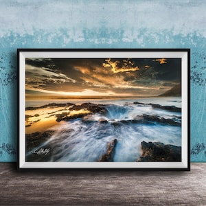 Bring the magic of Oregon’s coast into your space with this exquisite Sprouting Horn sunrise or sunset photography print.