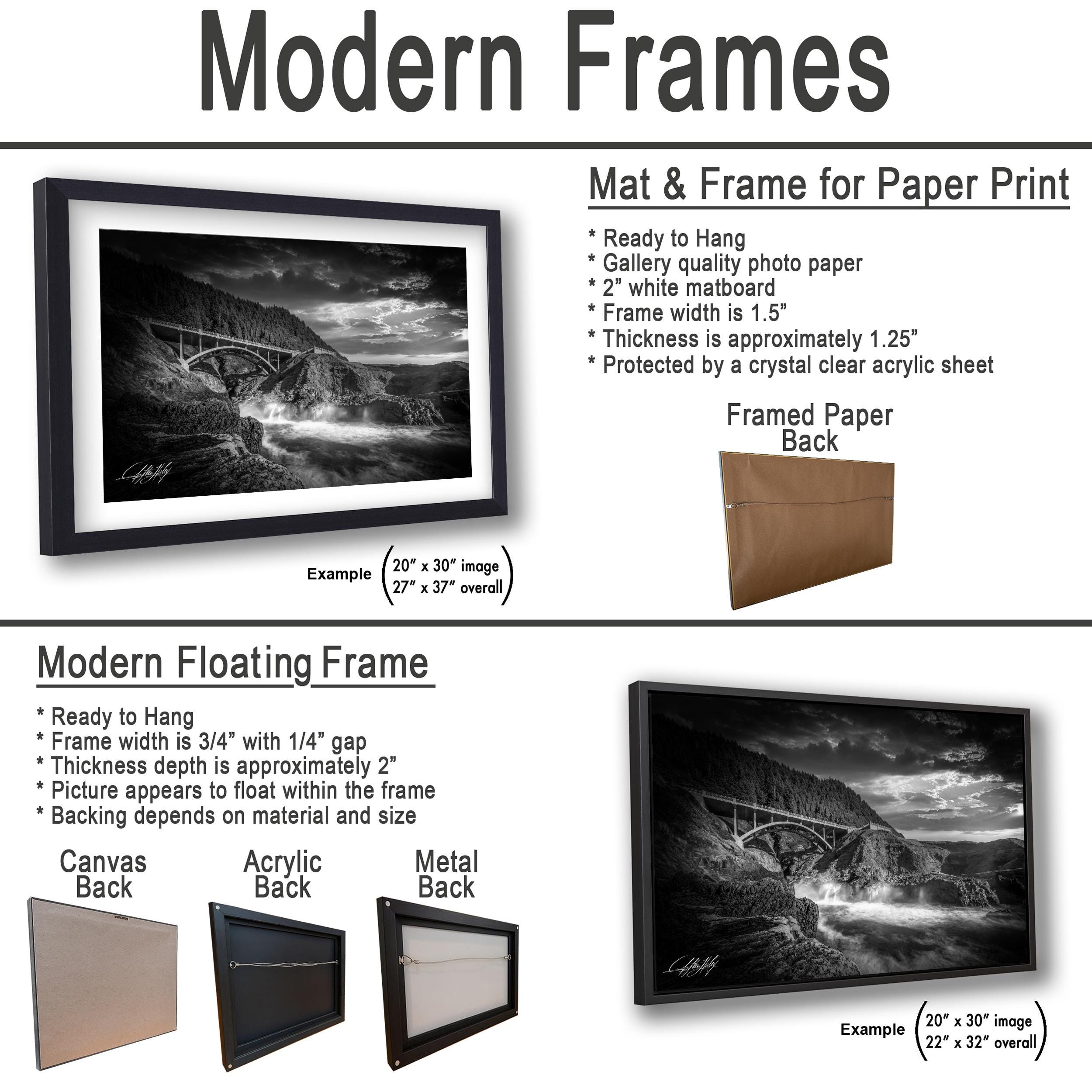 • Made-to-order custom fine art print • Artist's signature authenticates each piece • Available framed with a 2" white mat border (paper, acrylic, aluminum/metal prints) or flush-mounted canvas