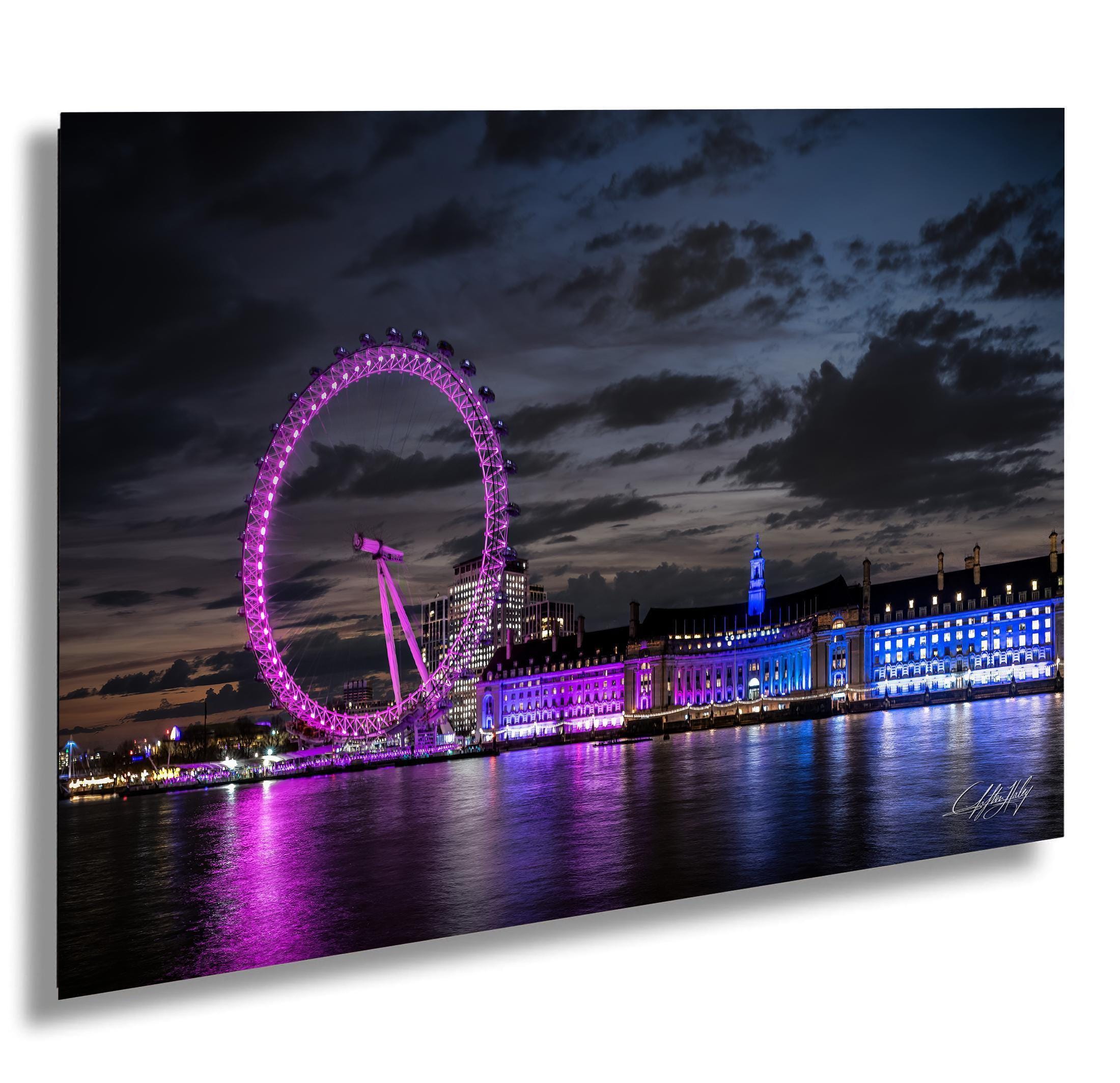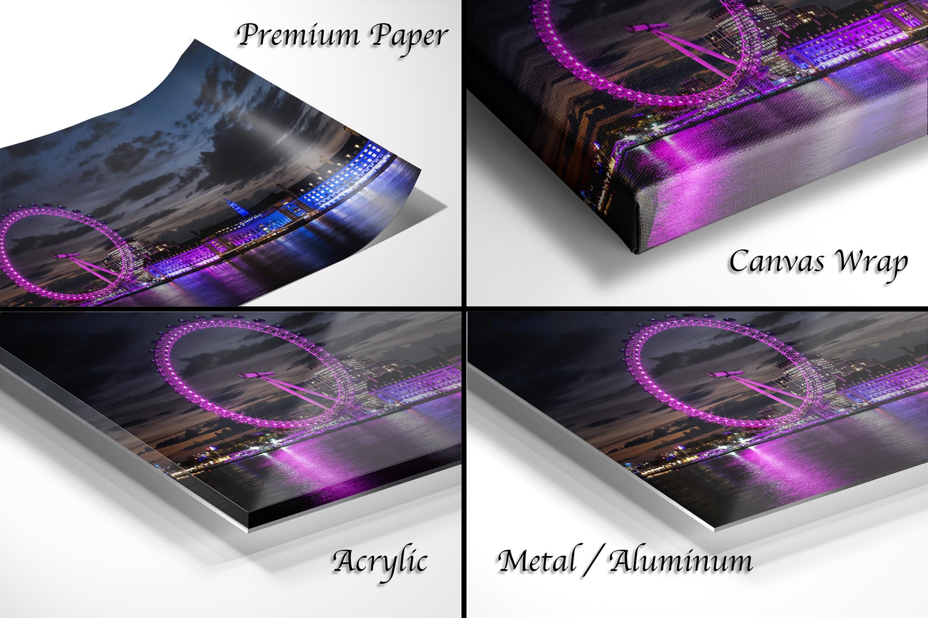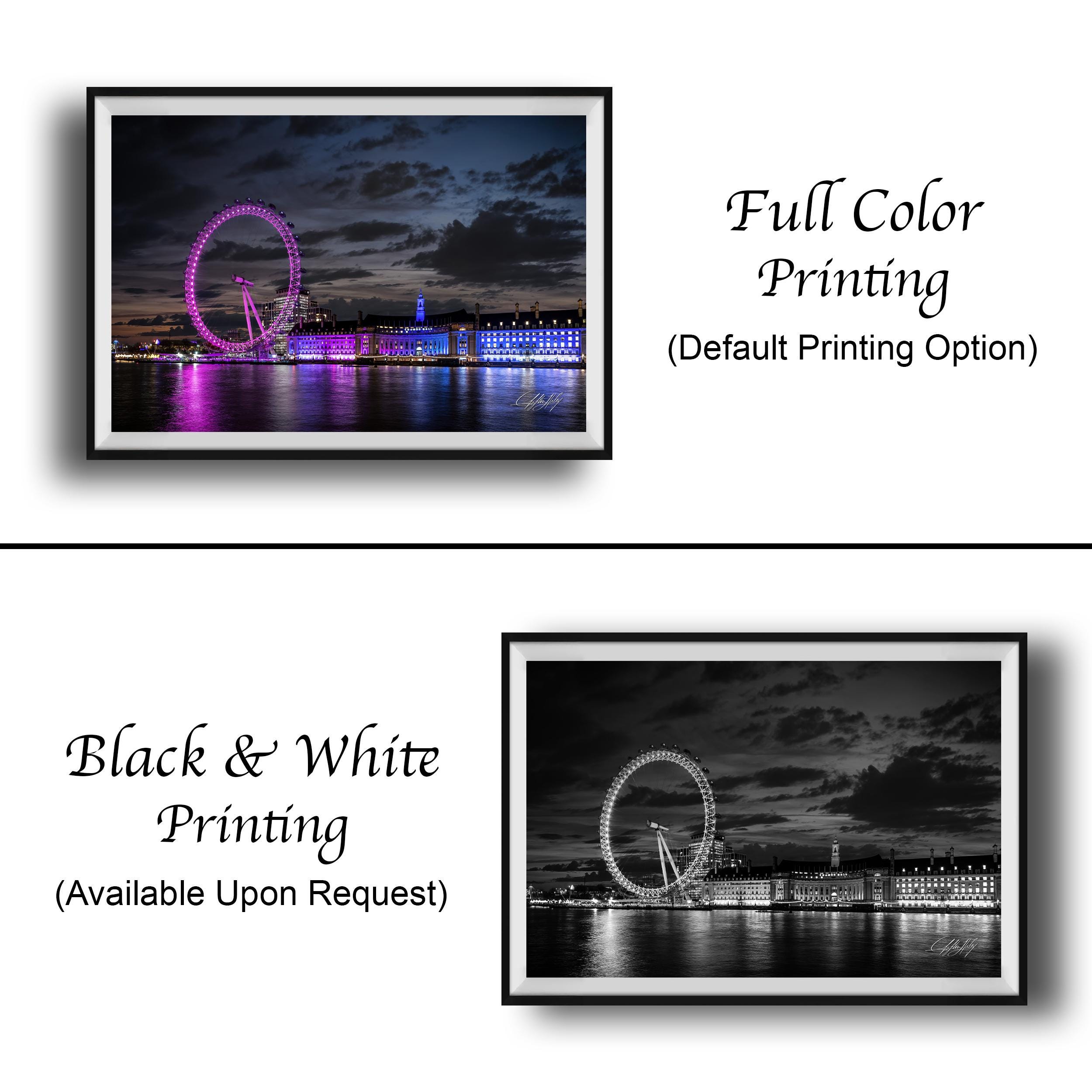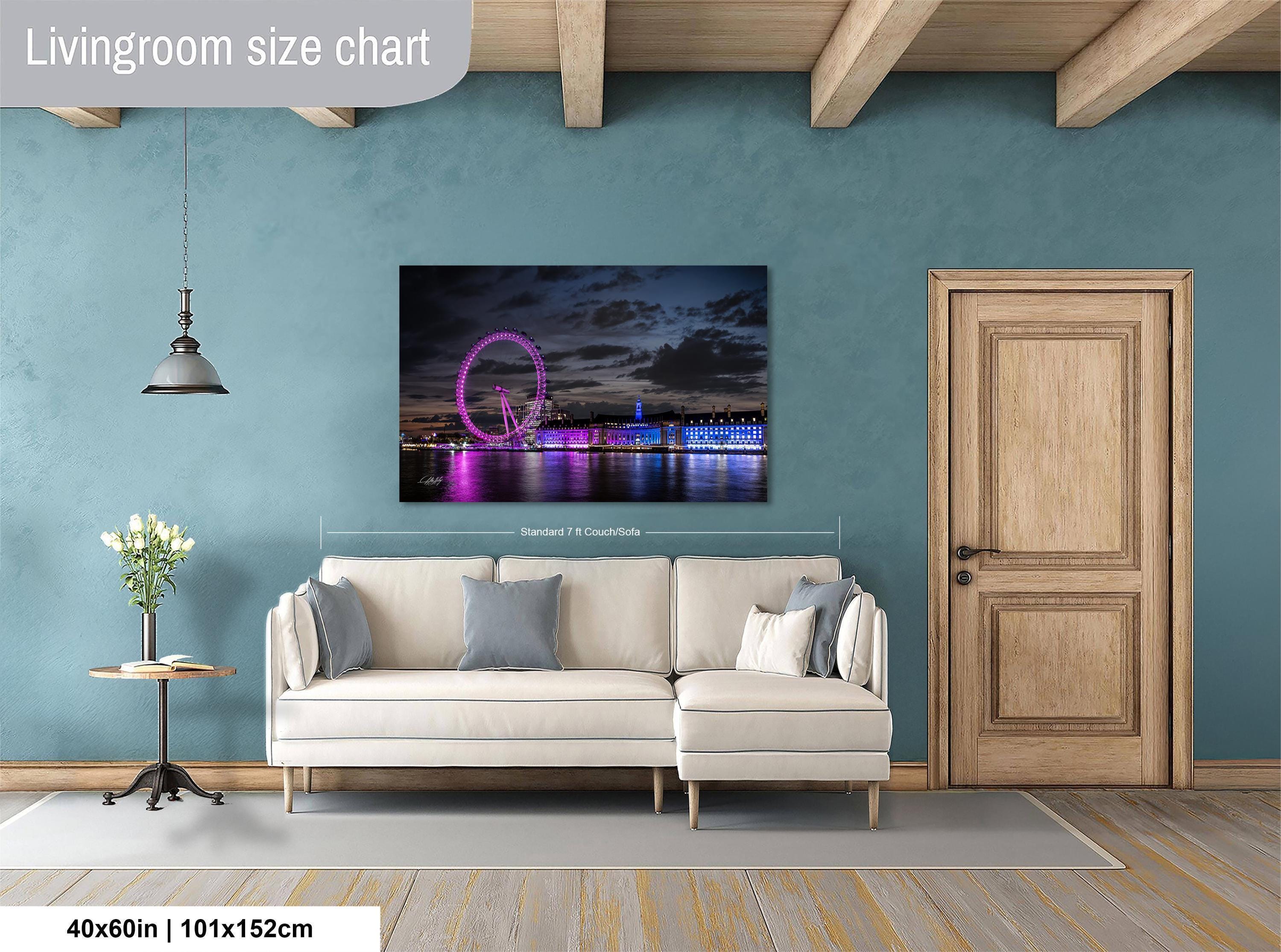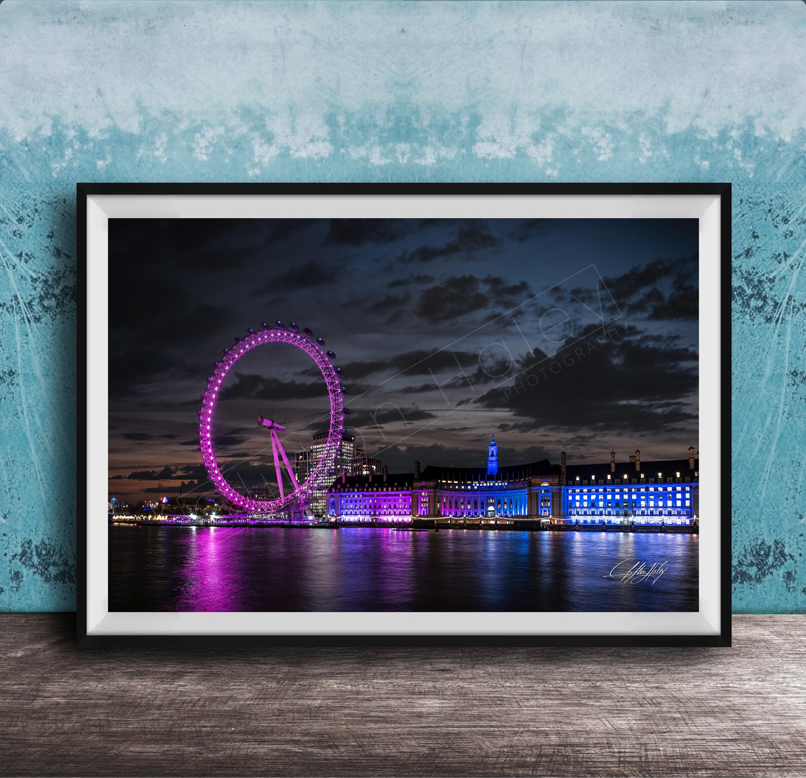 Capture the charm of London with this London Eye Waterfront Print, featuring a stunning London Skyline Wall Art scene that perfectly embodies UK Travel Decor and Iconic Landmark Photography. This London Gift Idea showcases the illuminated London Eye and surrounding waterfront in rich detail, making it an ideal Home Office Decoration that brings a touch of the city’s vibrant energy into your space.