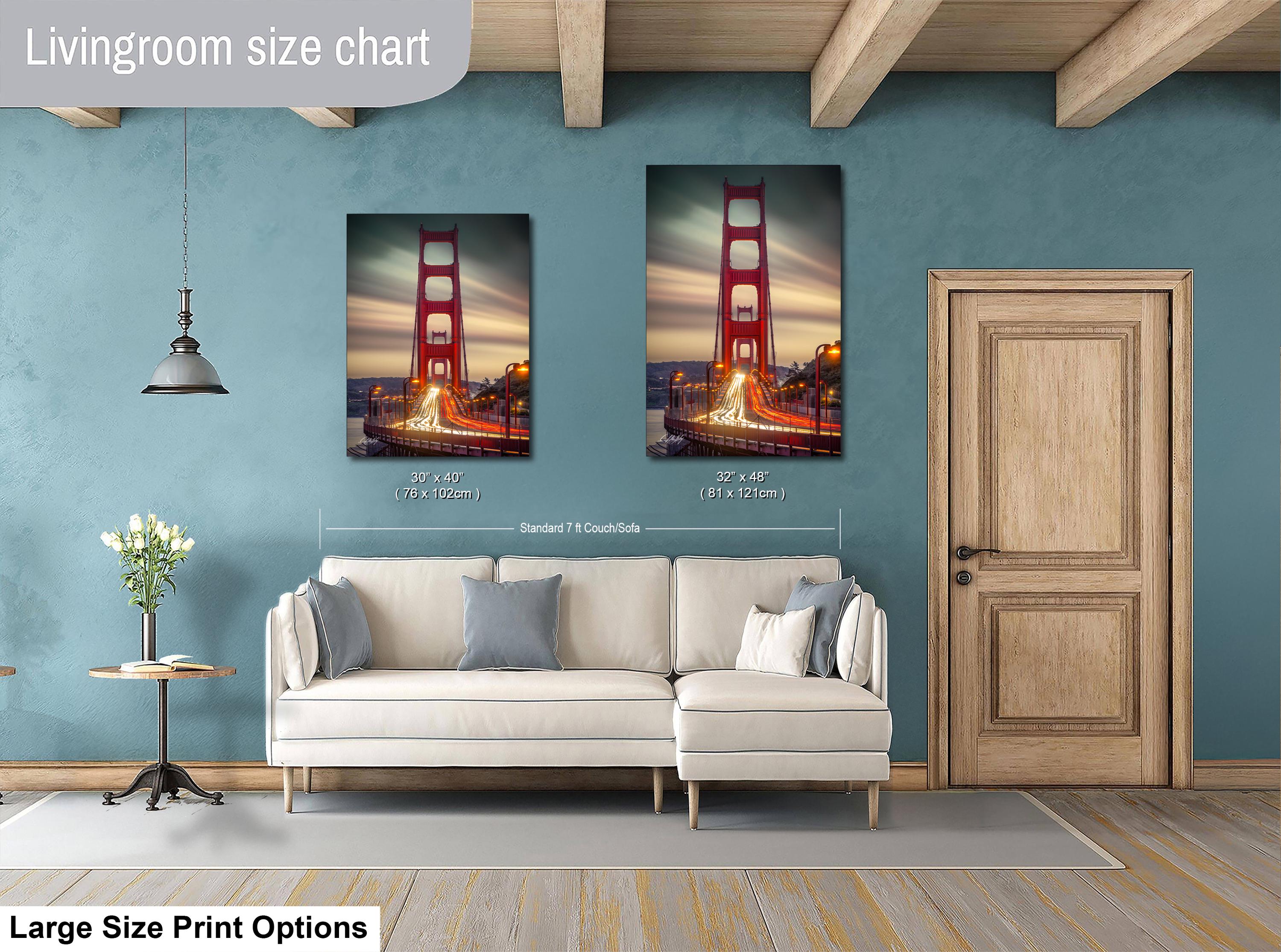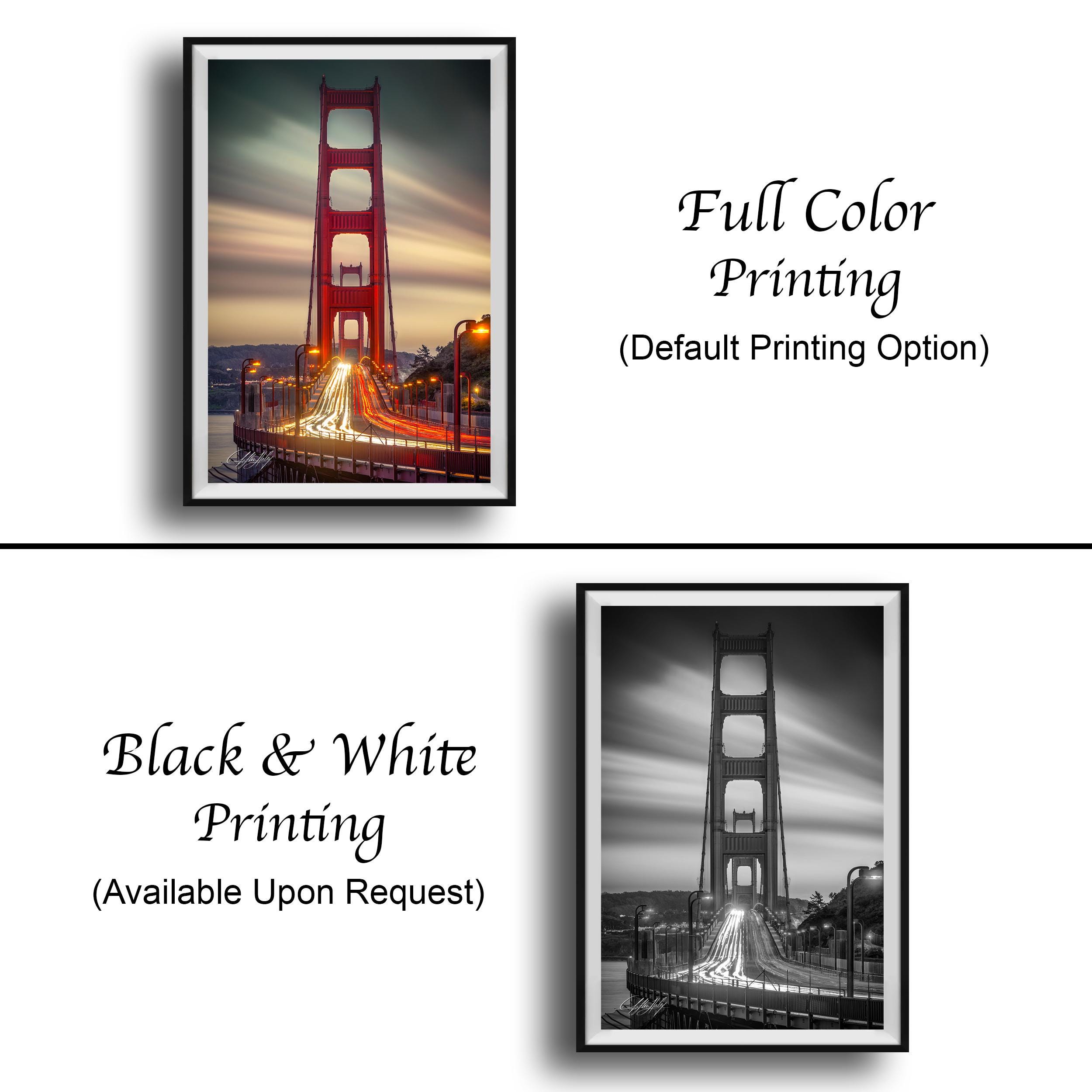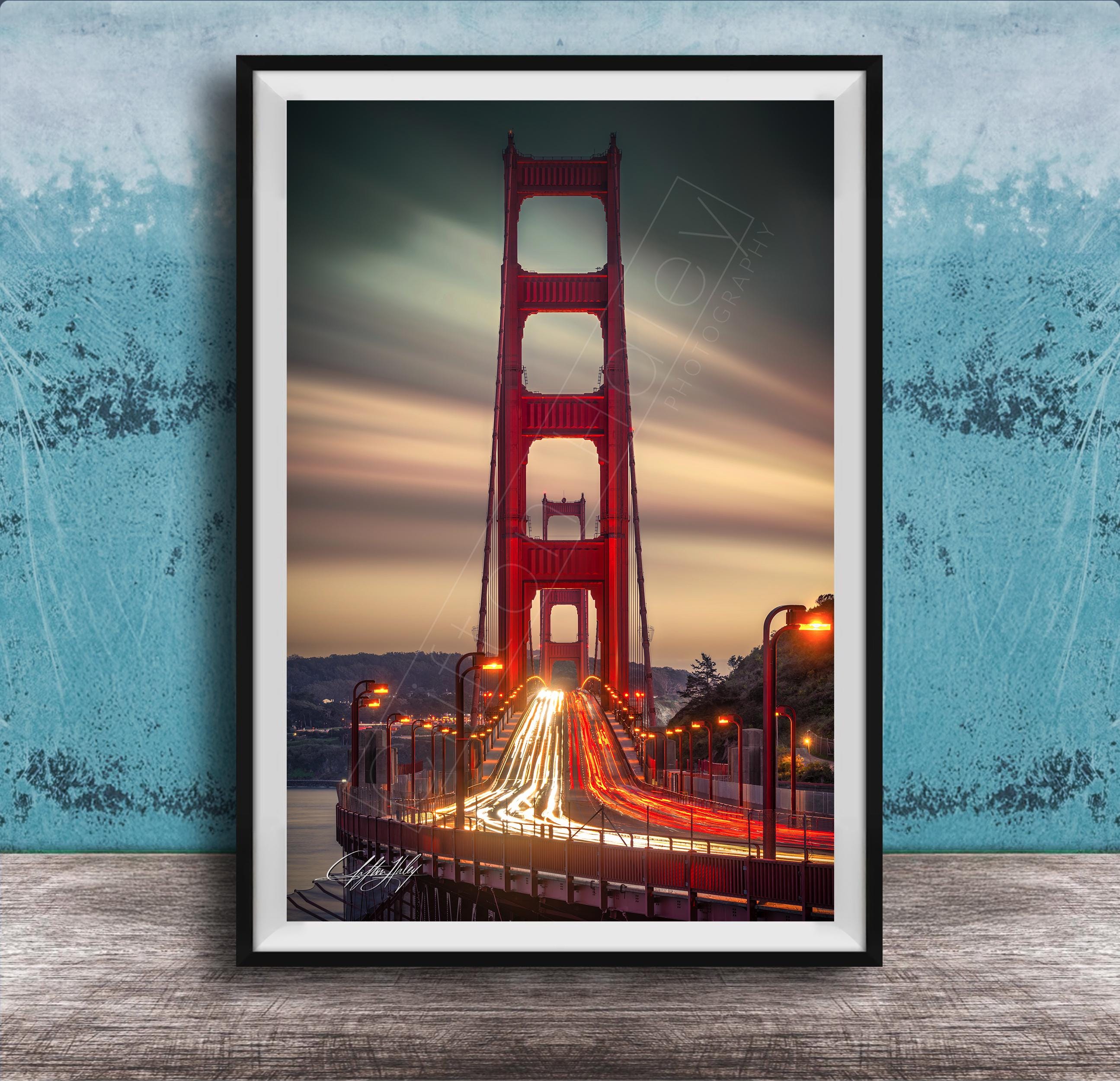 Celebrate the iconic Golden Gate Bridge with this stunning San Francisco print, perfect as a travel poster or unique California wall decor gift. Capturing breathtaking sunrise and sunset photography art, this piece brings the spirit of the city right into your home.
