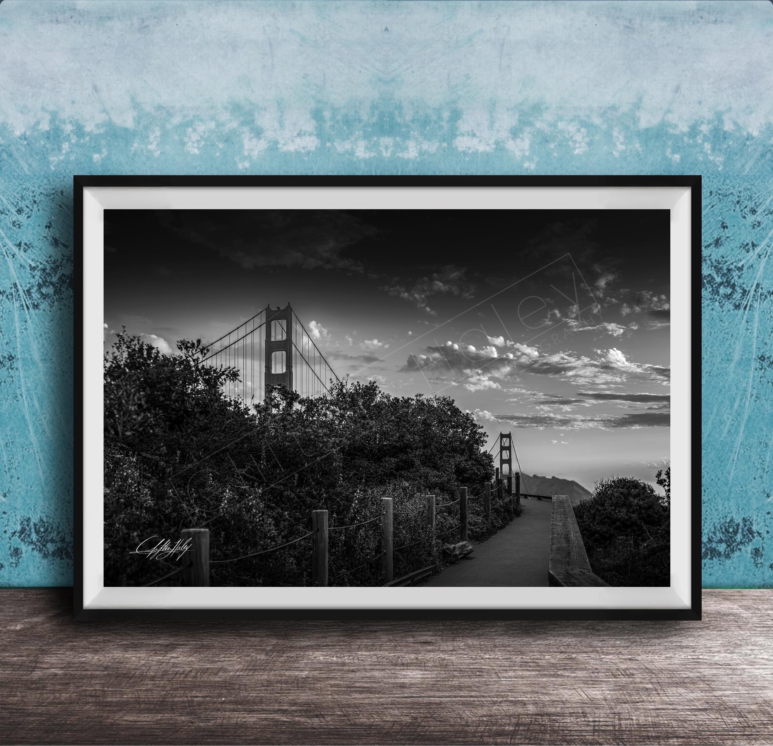 Golden Gate Bridge Photo Print - Black & White Sunrise