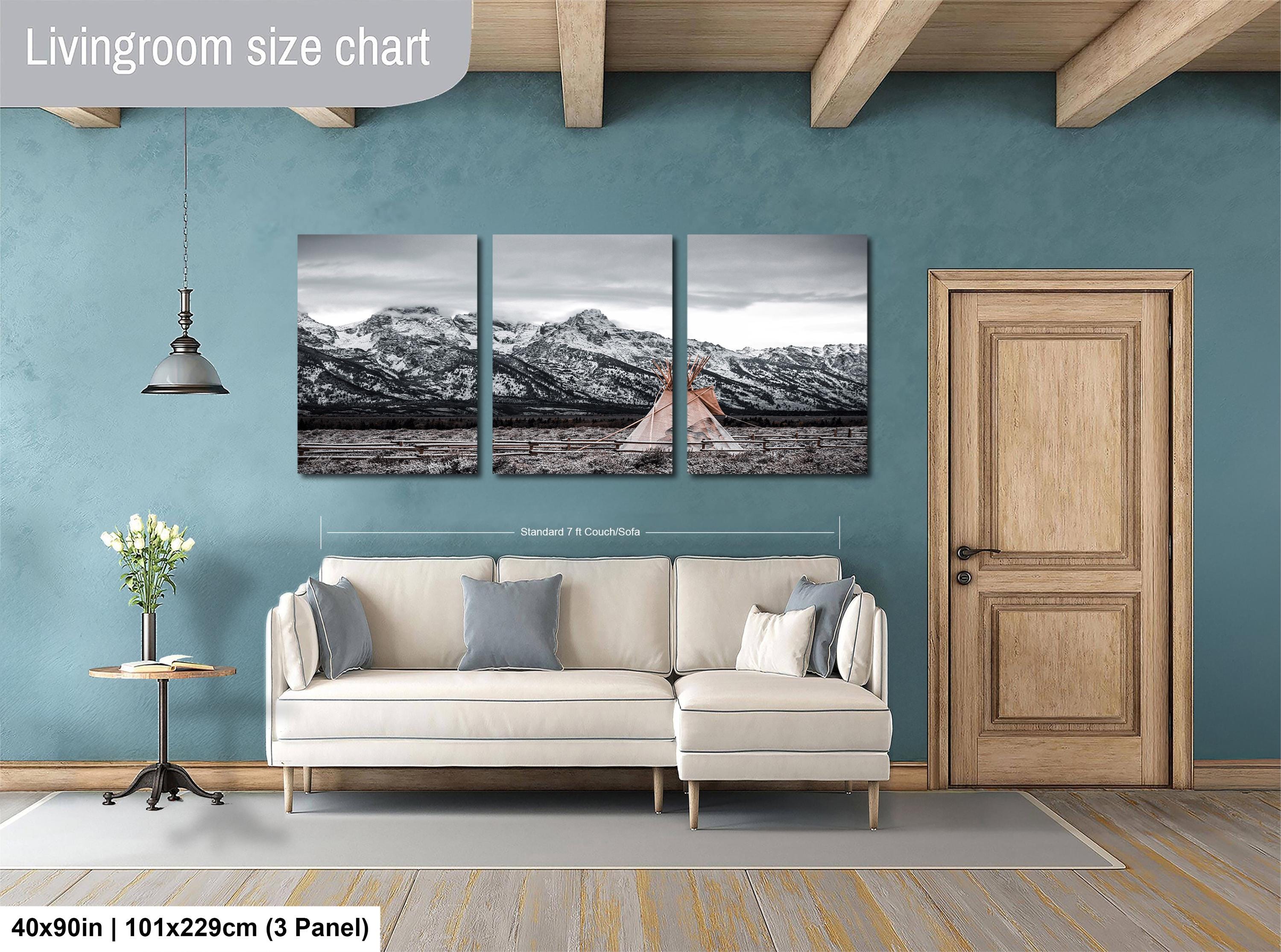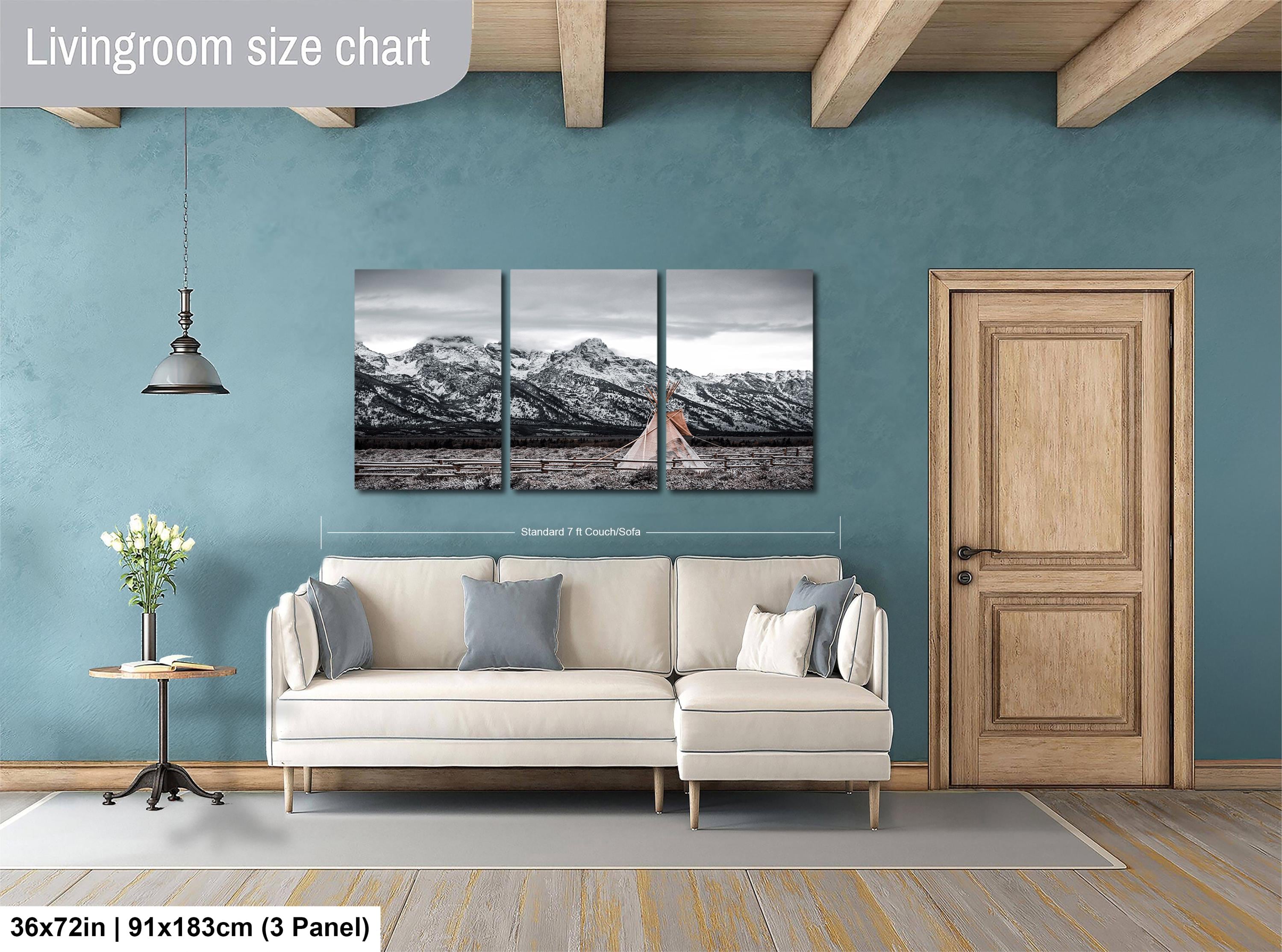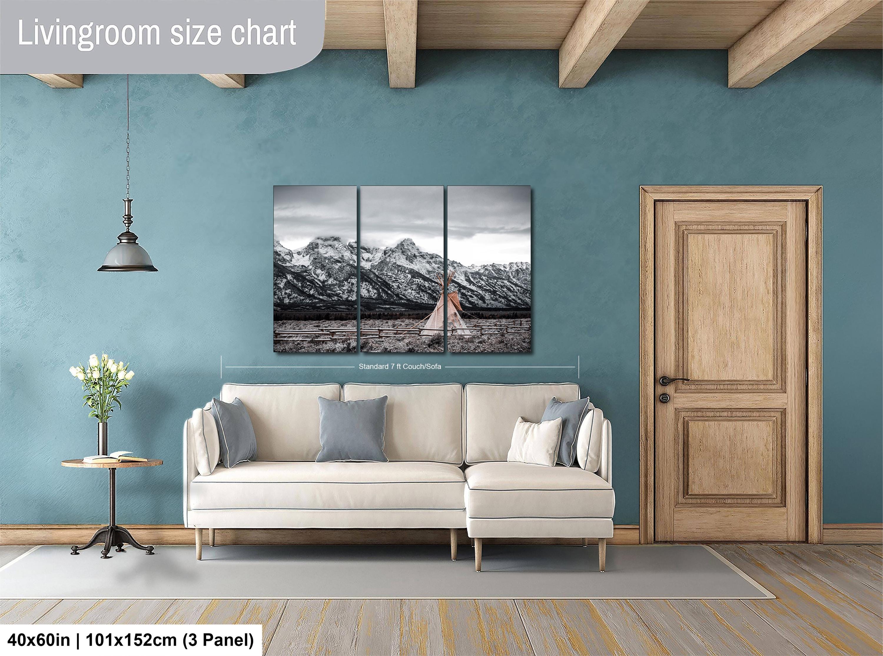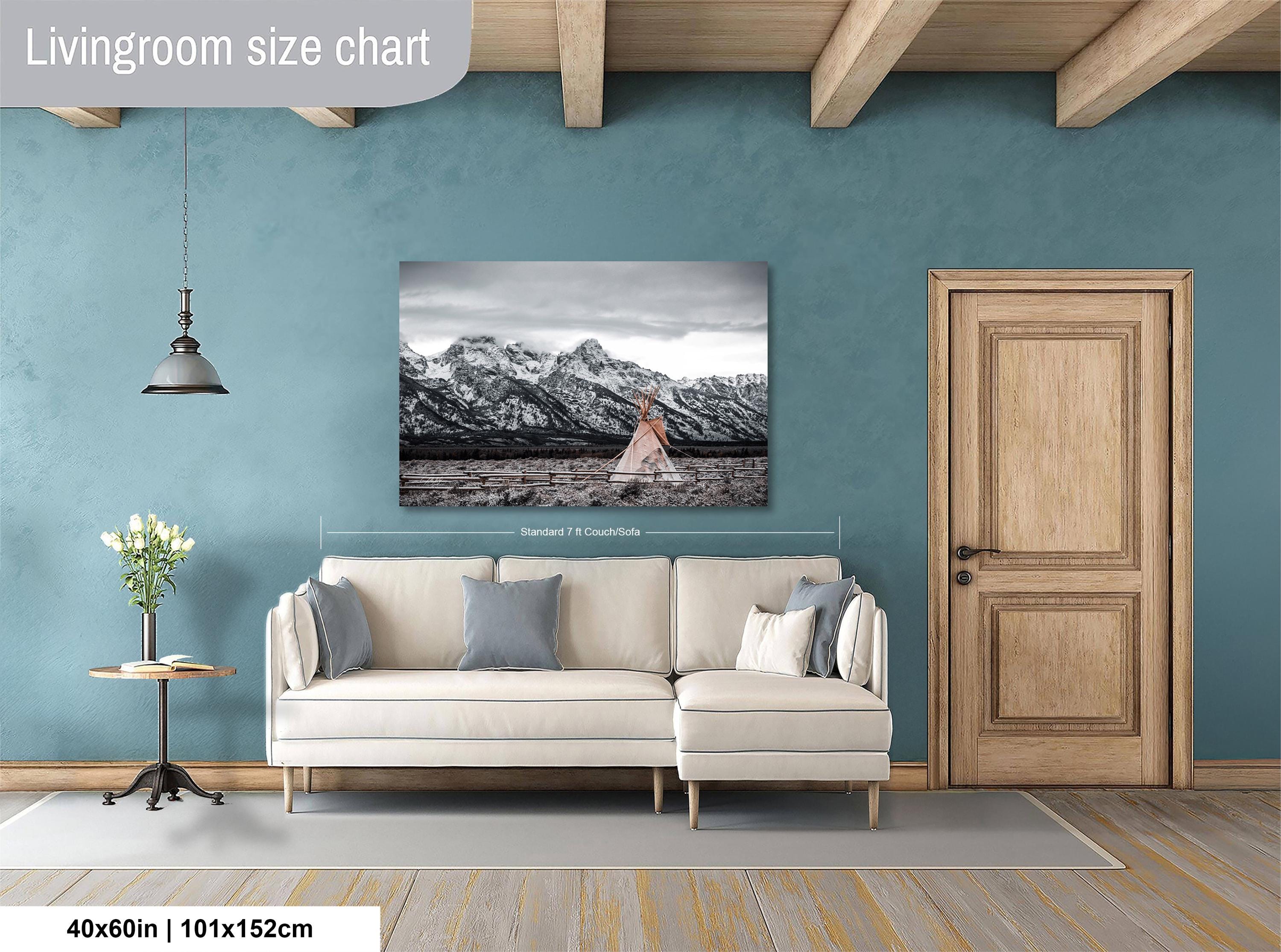 Experience the breathtaking Rocky Mountains and Grand Teton National Park with this scenic teepee landscape art print, capturing Wyoming's majestic beauty.