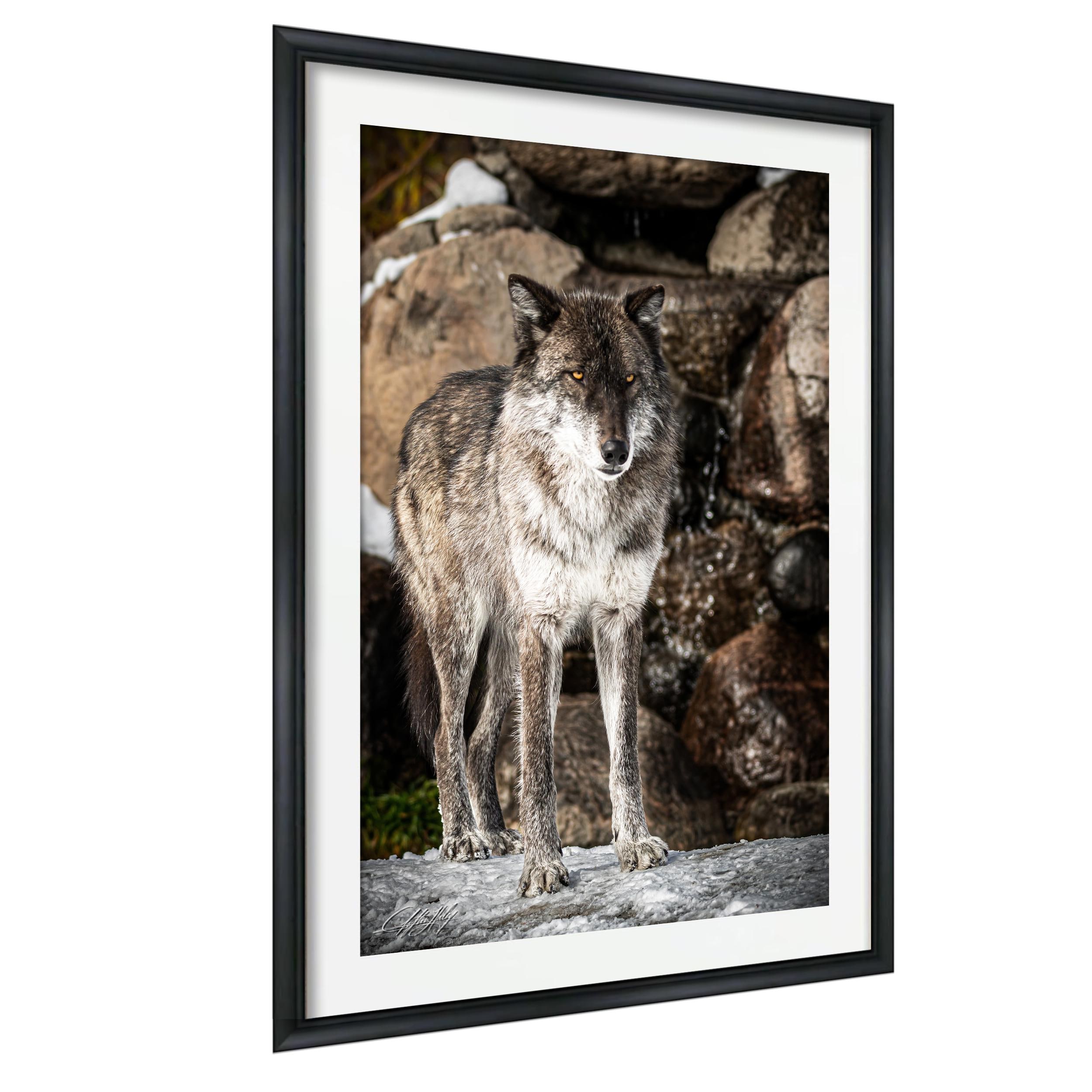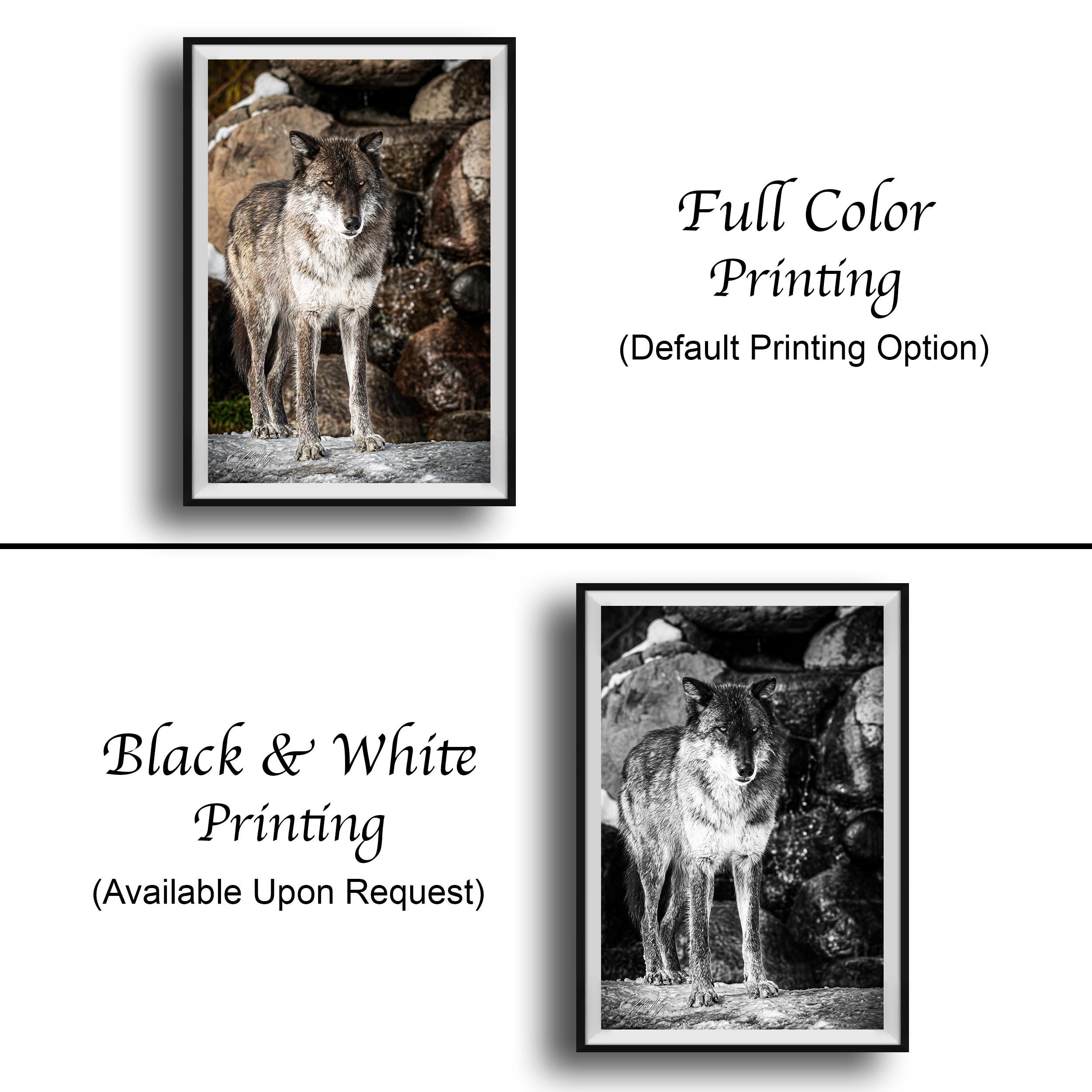 Add a touch of the wild to your home with this captivating forest animal print that celebrates the powerful presence of gray wolves in their mountainous environment.