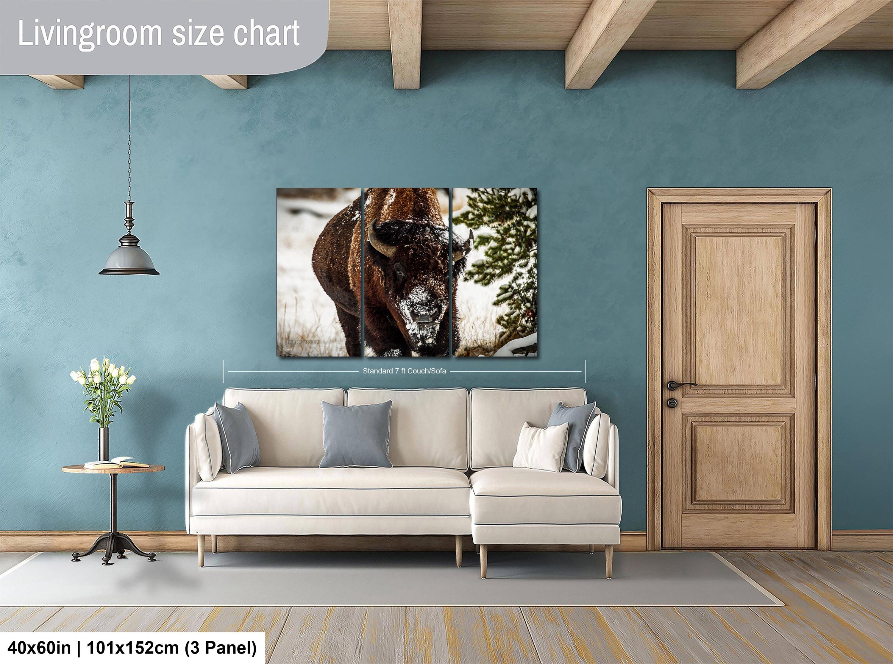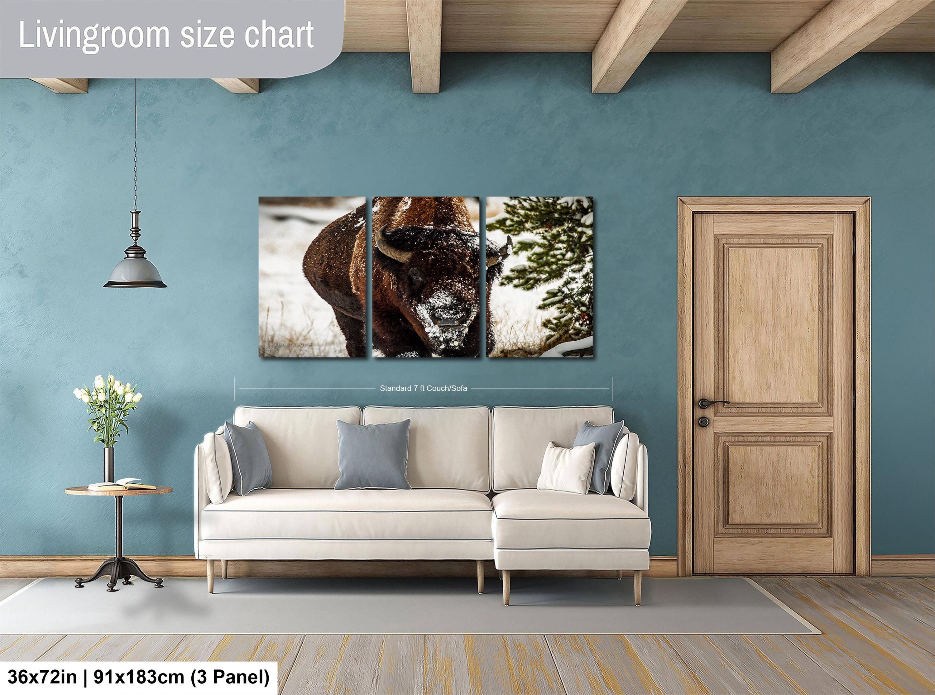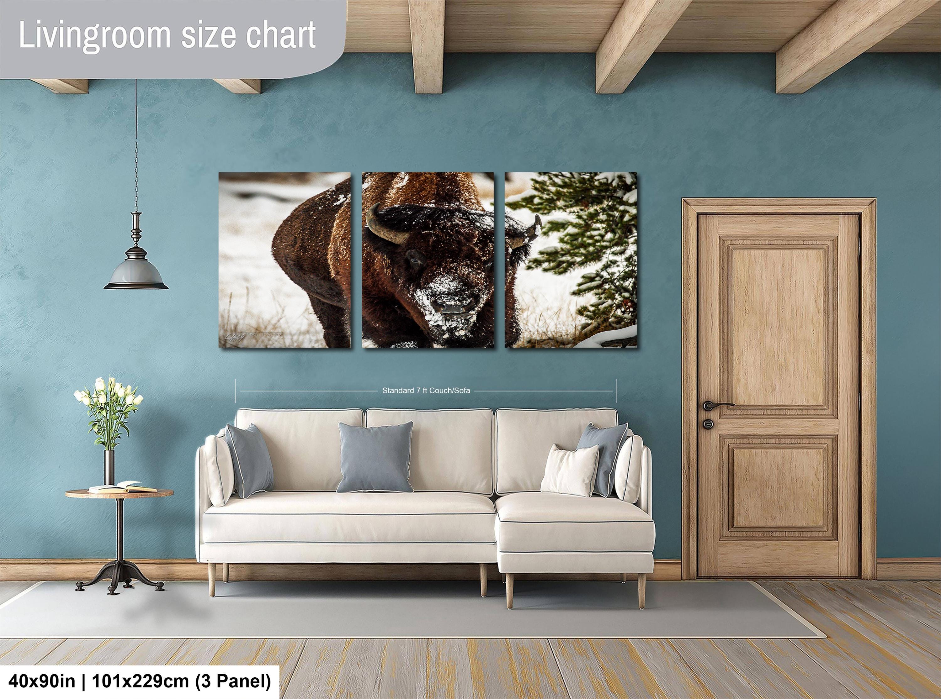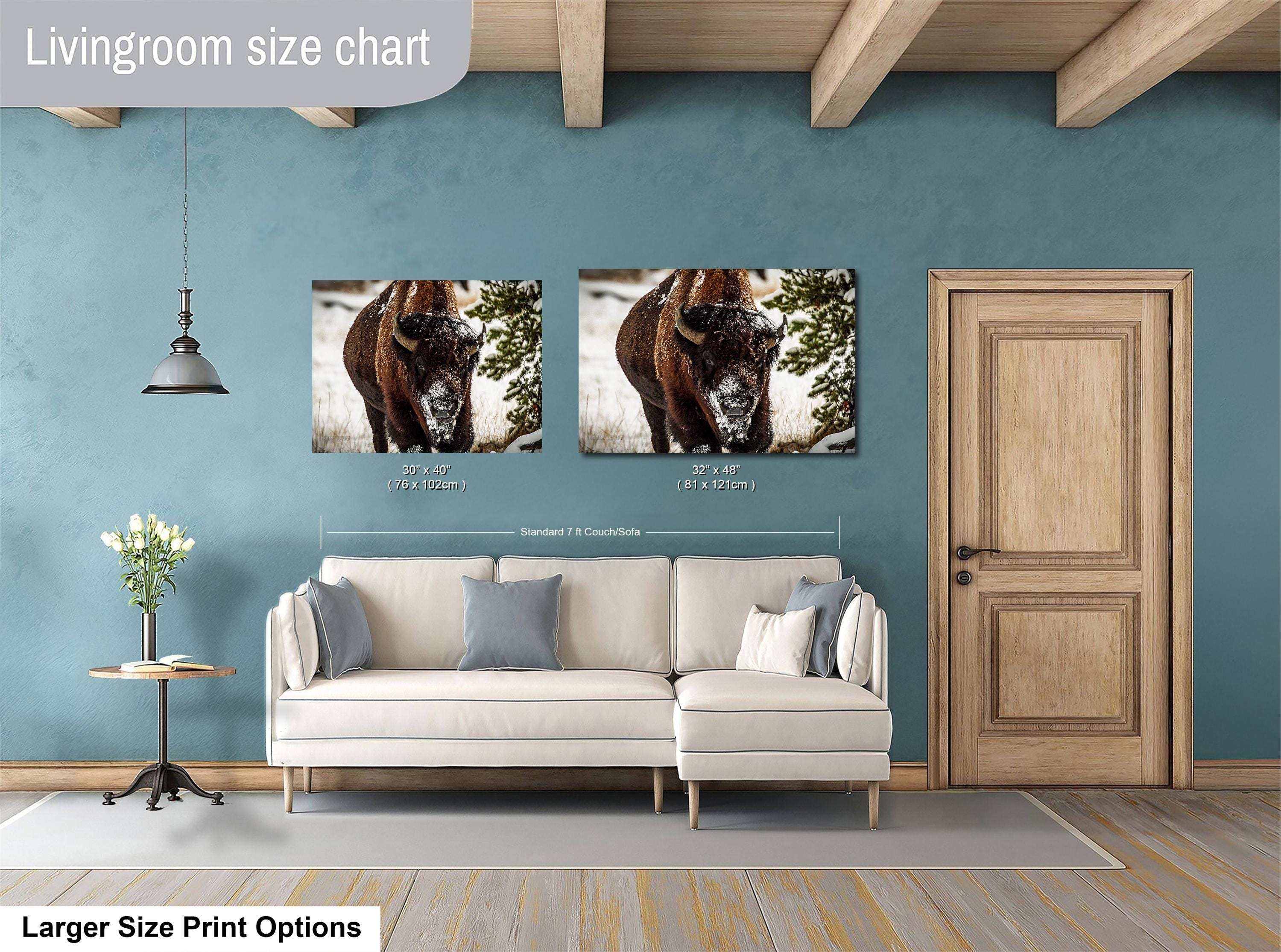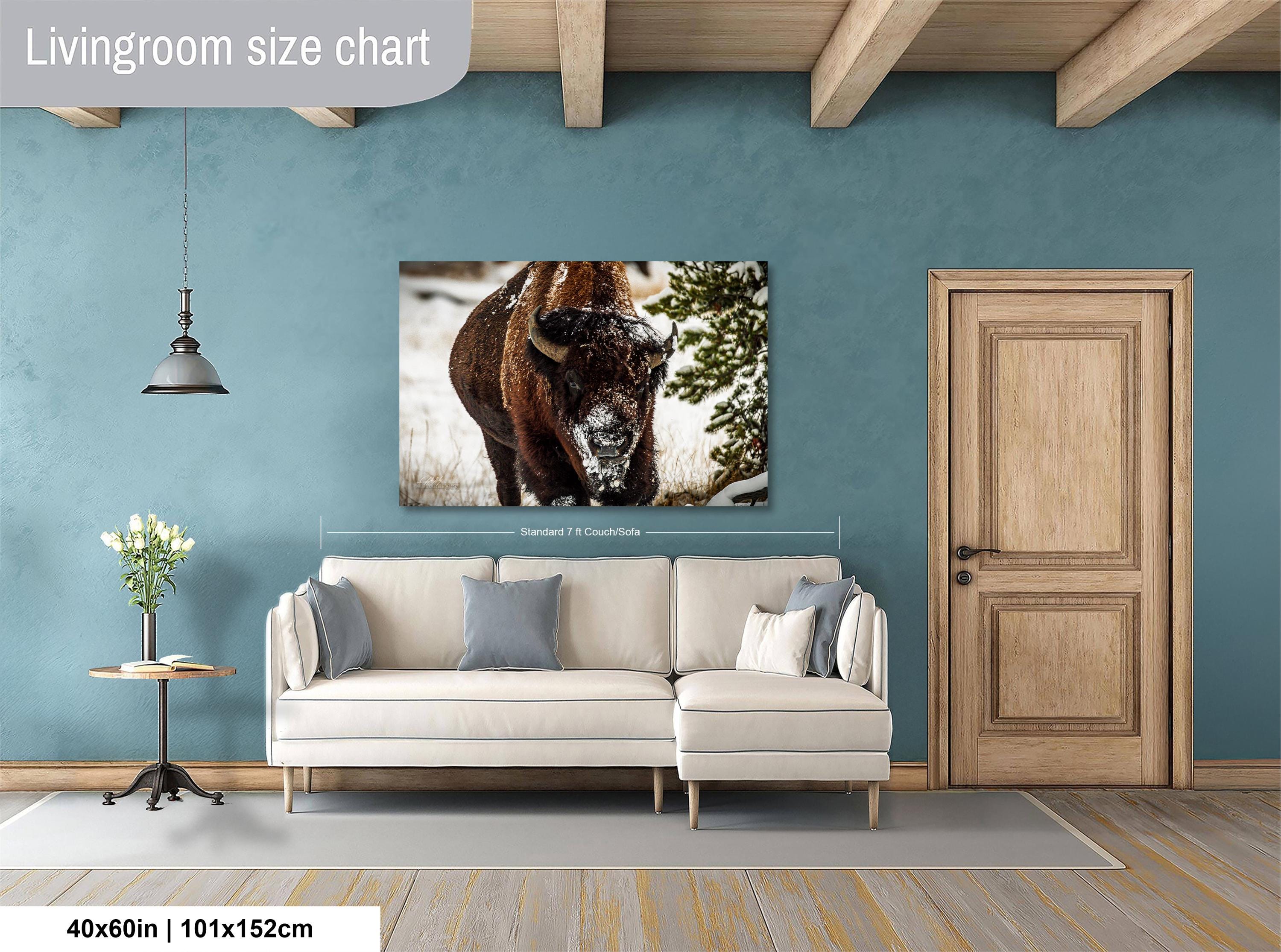 Bring the serene beauty of a snowy winter wilderness into your home with this evocative artwork that celebrates the power and grace of bison in their frigid winter environment.