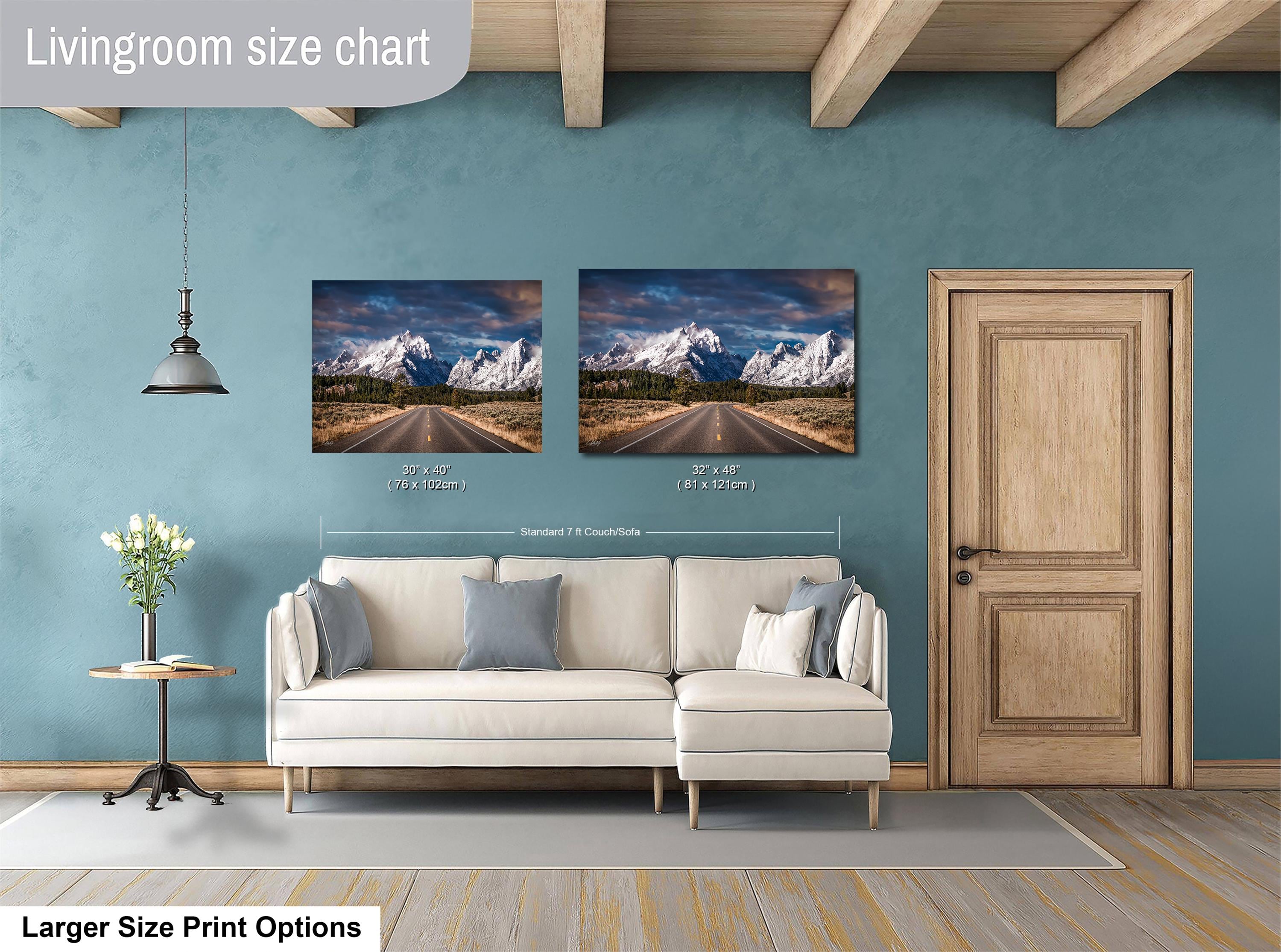 Bring the serene beauty and awe-inspiring majesty of Grand Teton Park into your home with this evocative mountain landscape view.