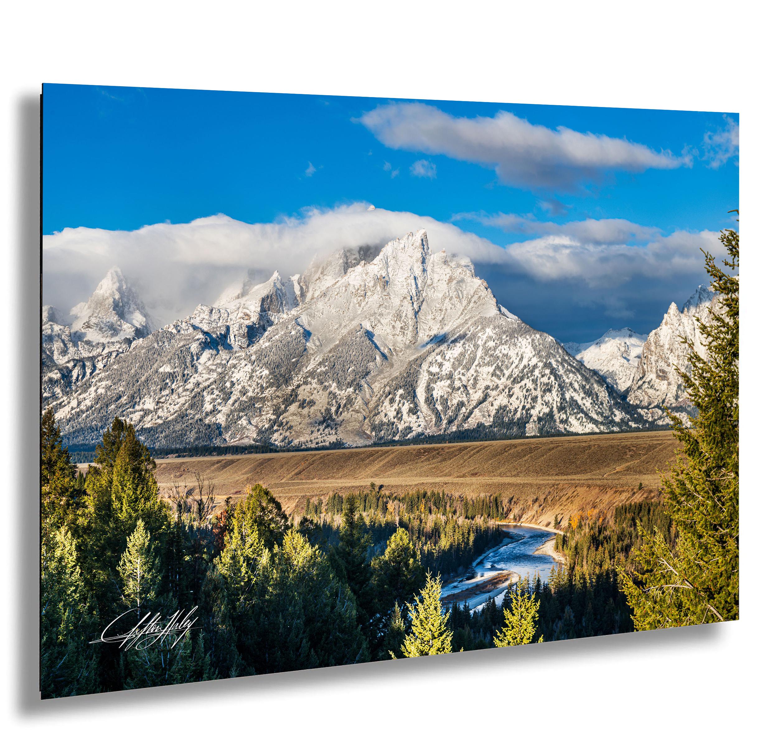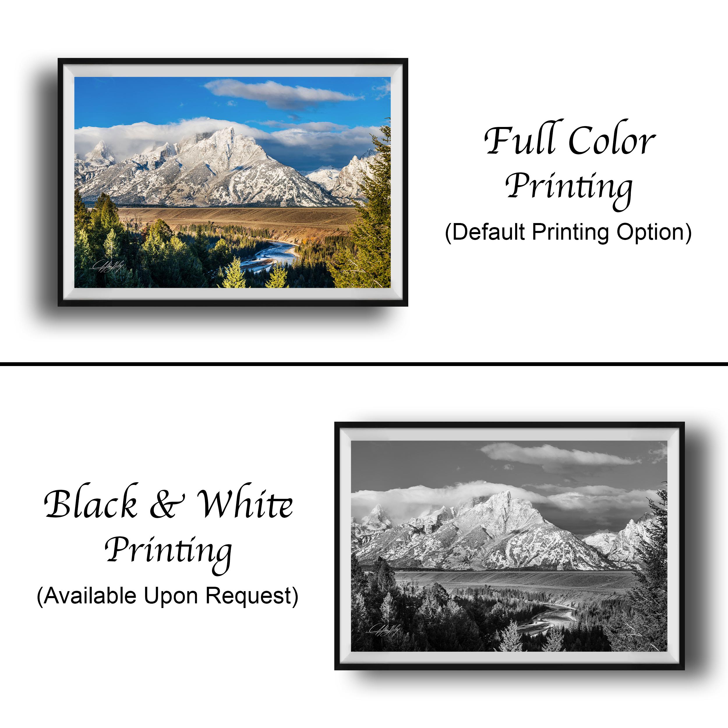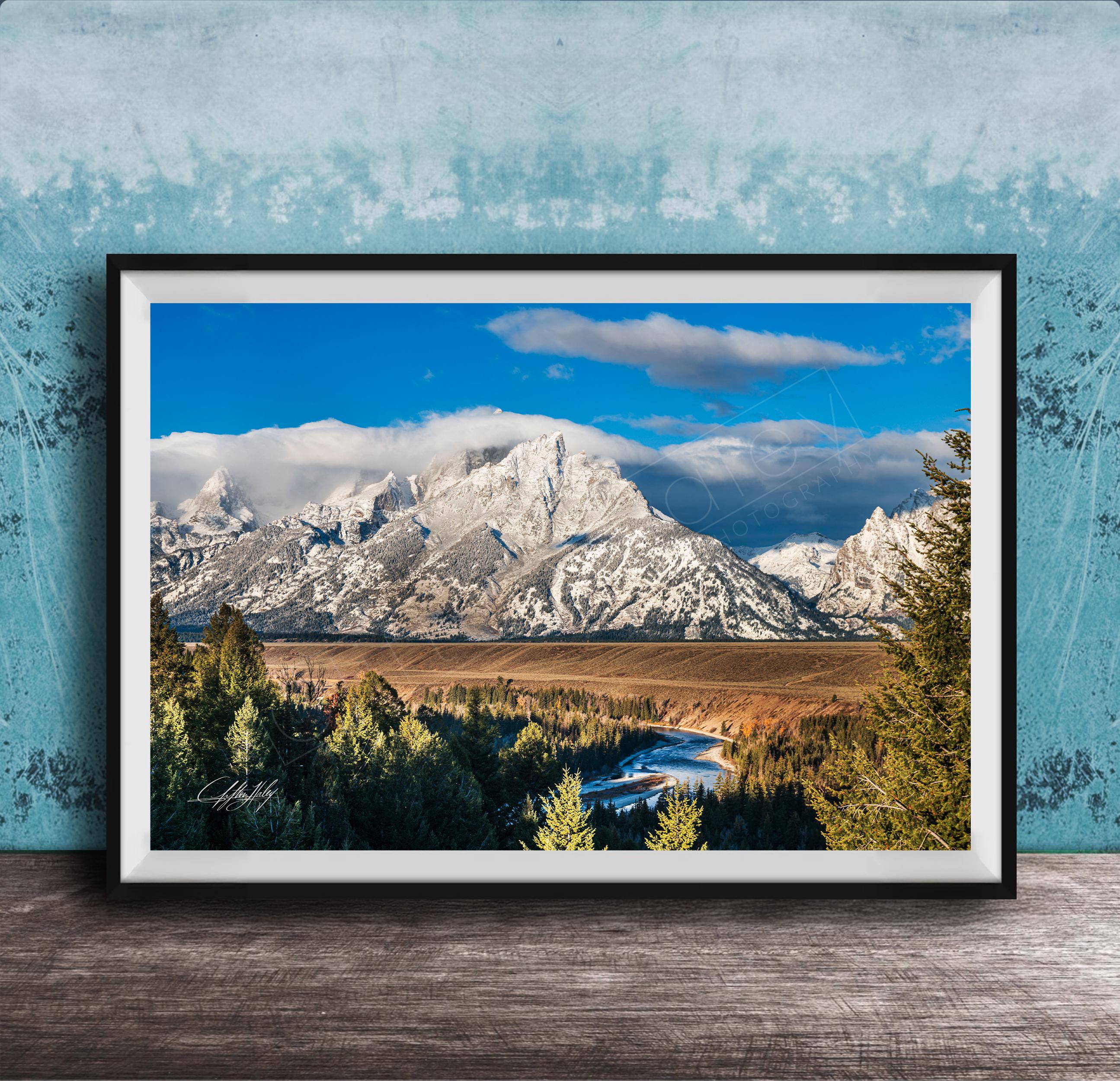 Immerse yourself in the breathtaking beauty of the Grand Teton Wall art, capturing the iconic Snake River Overlook in all its serene glory. This fine art photography piece brings the majestic Teton Range and its winding silver river ribbon right into your living space, perfect for lovers of national park decor and alpine terrain prints. Inspired by the crisp mountain air and timeless landscapes, each image tells a story of nature's grandeur and quiet power.