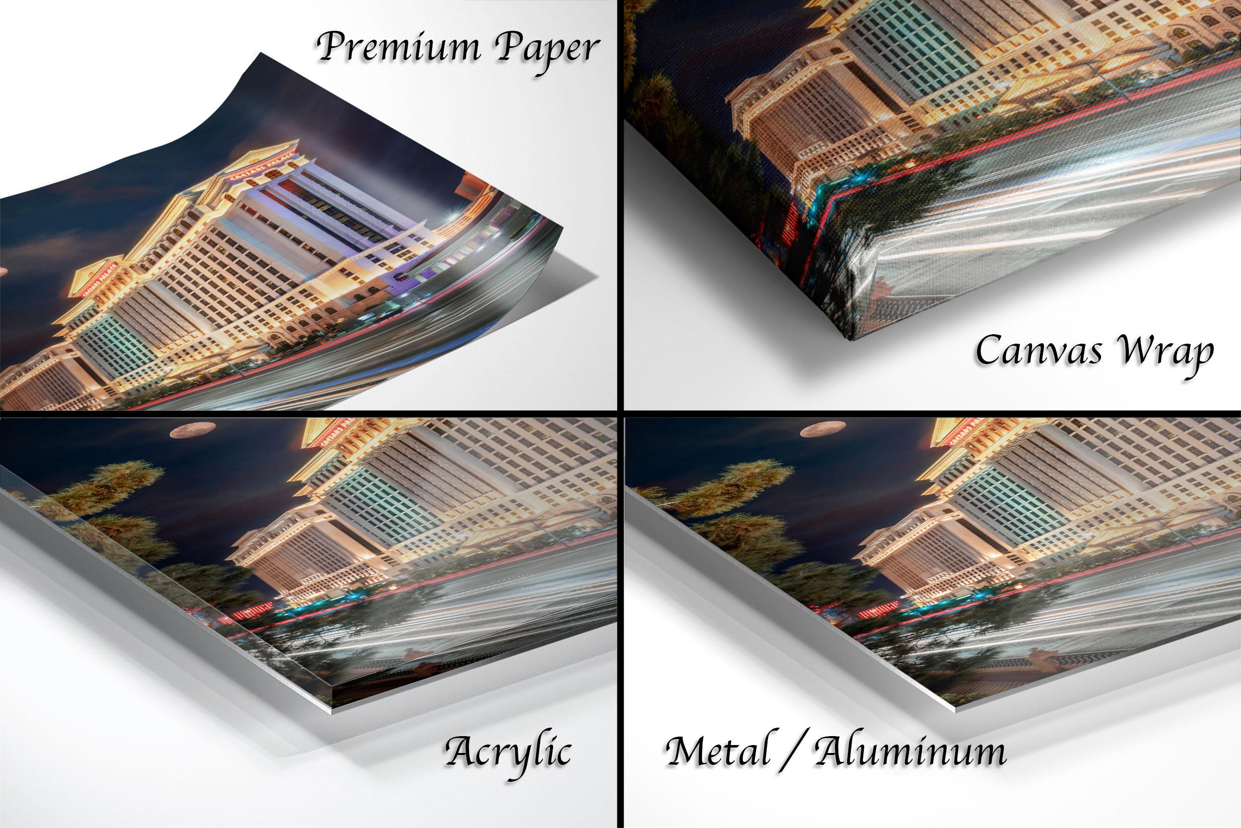 This photo captures the essence of Caesars Palace’s legendary status as a hub for high rollers and entertainment. From its world-class casino games like blackjack, craps, roulette, baccarat, and poker to its historic ties to live music legends performing at The Colosseum theater — this artwork celebrates the spirit of Las Vegas nightlife.