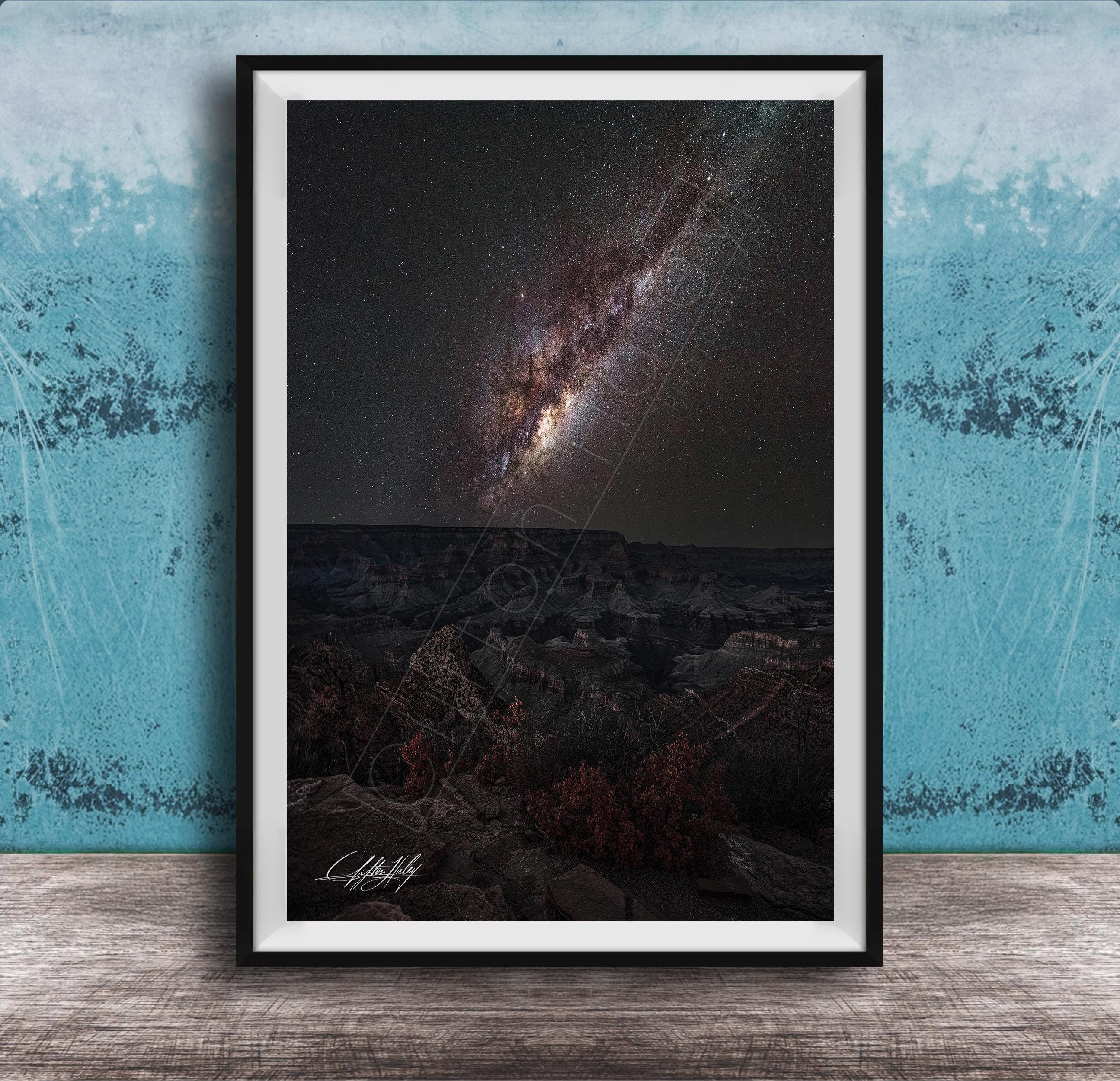 Celebrate the wonder of the universe and the grandeur of the Grand Canyon with this stunning celestial art print—a perfect addition to any collection of fine art photography and a thoughtful gift for travelers and nature lovers alike.