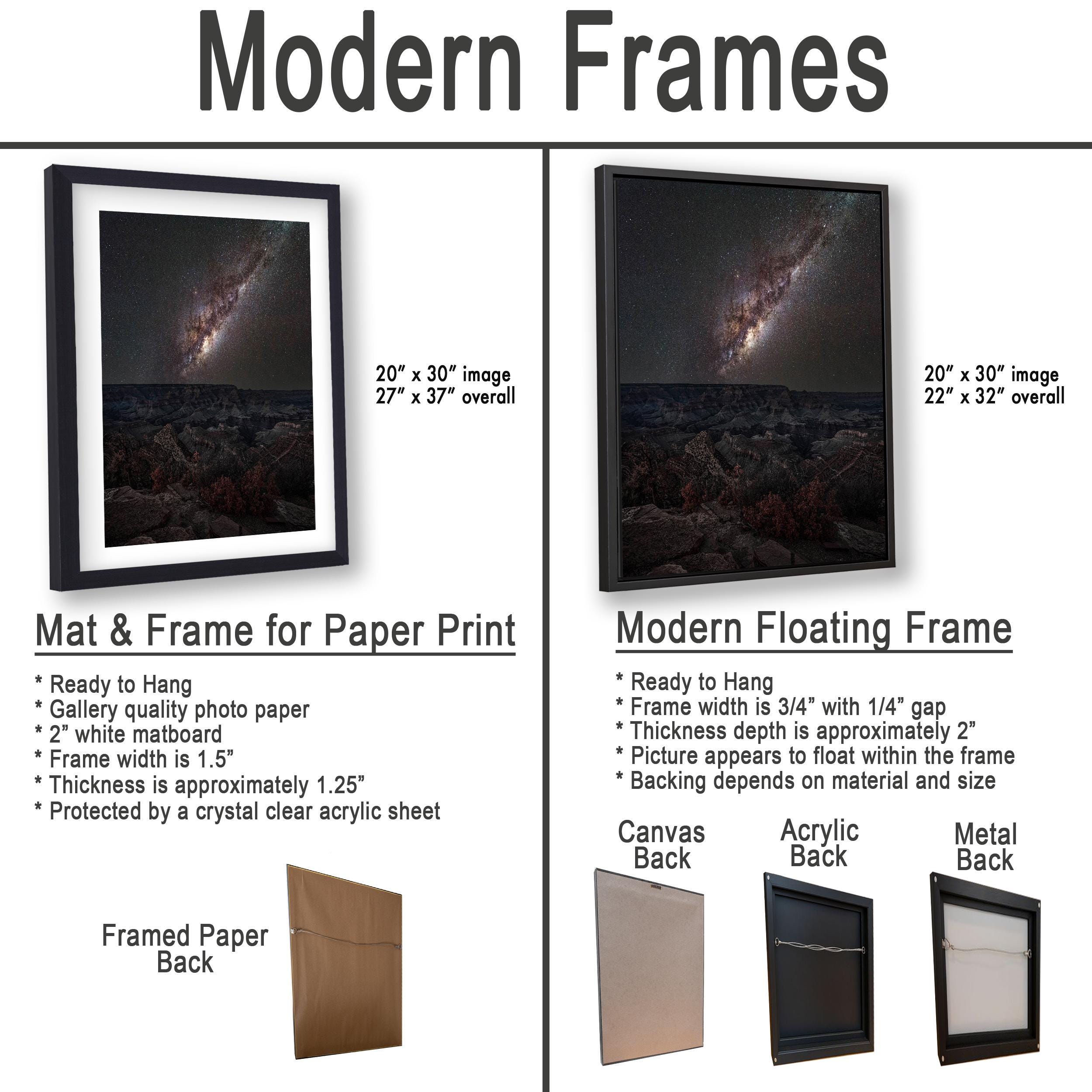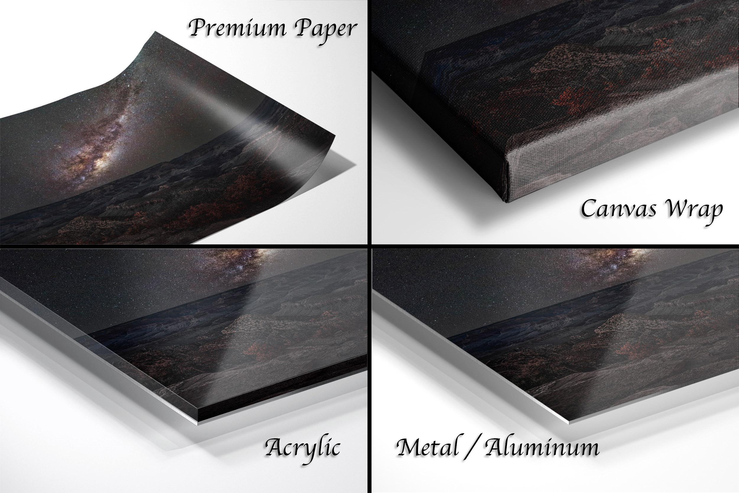 - Available as framed paper prints, acrylics, aluminum/metal prints with a 2" white mat border - Canvas prints are flush mounted without a mat border - Ideal as a starry night print or landscape photo gift for nature enthusiasts