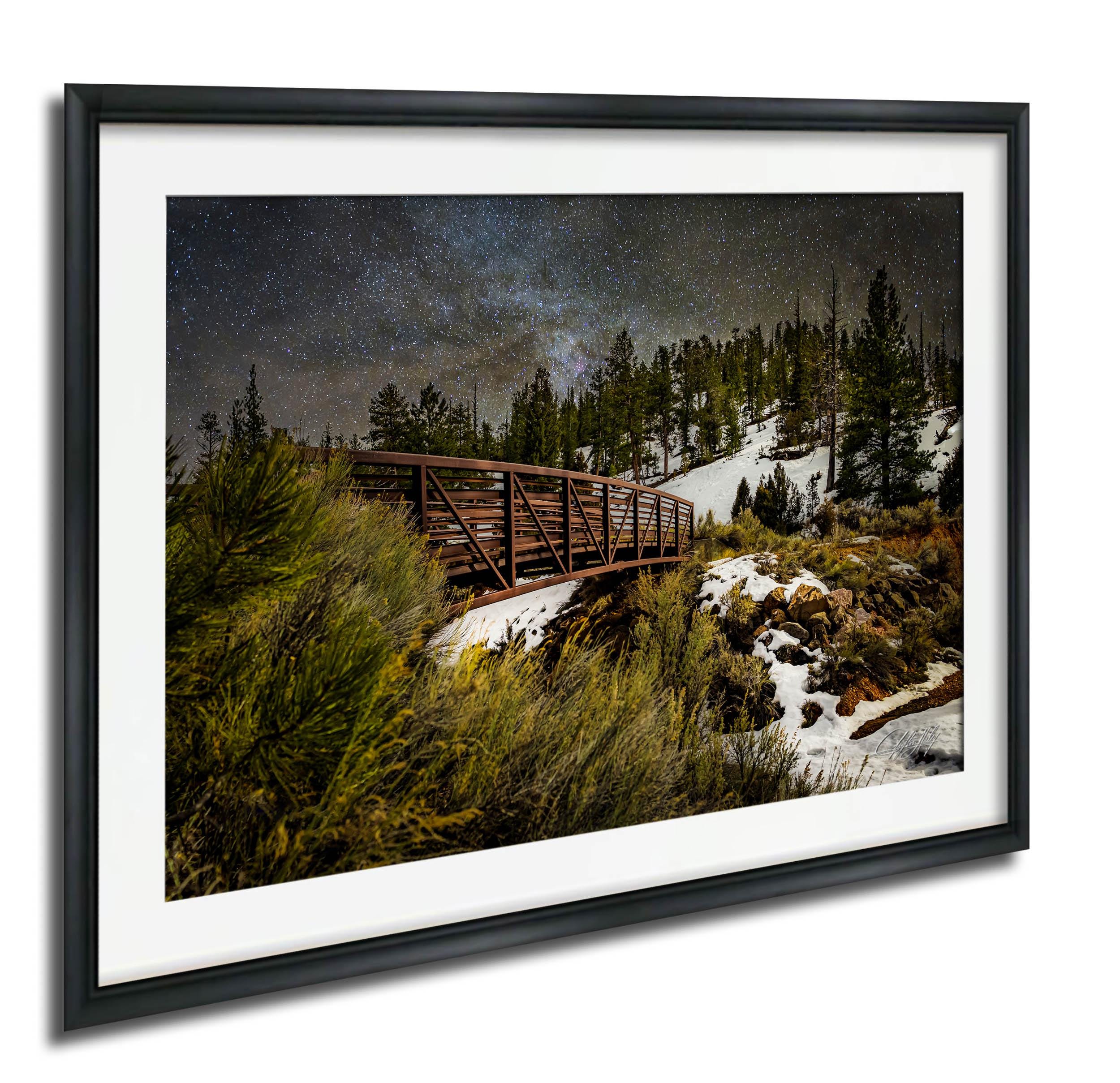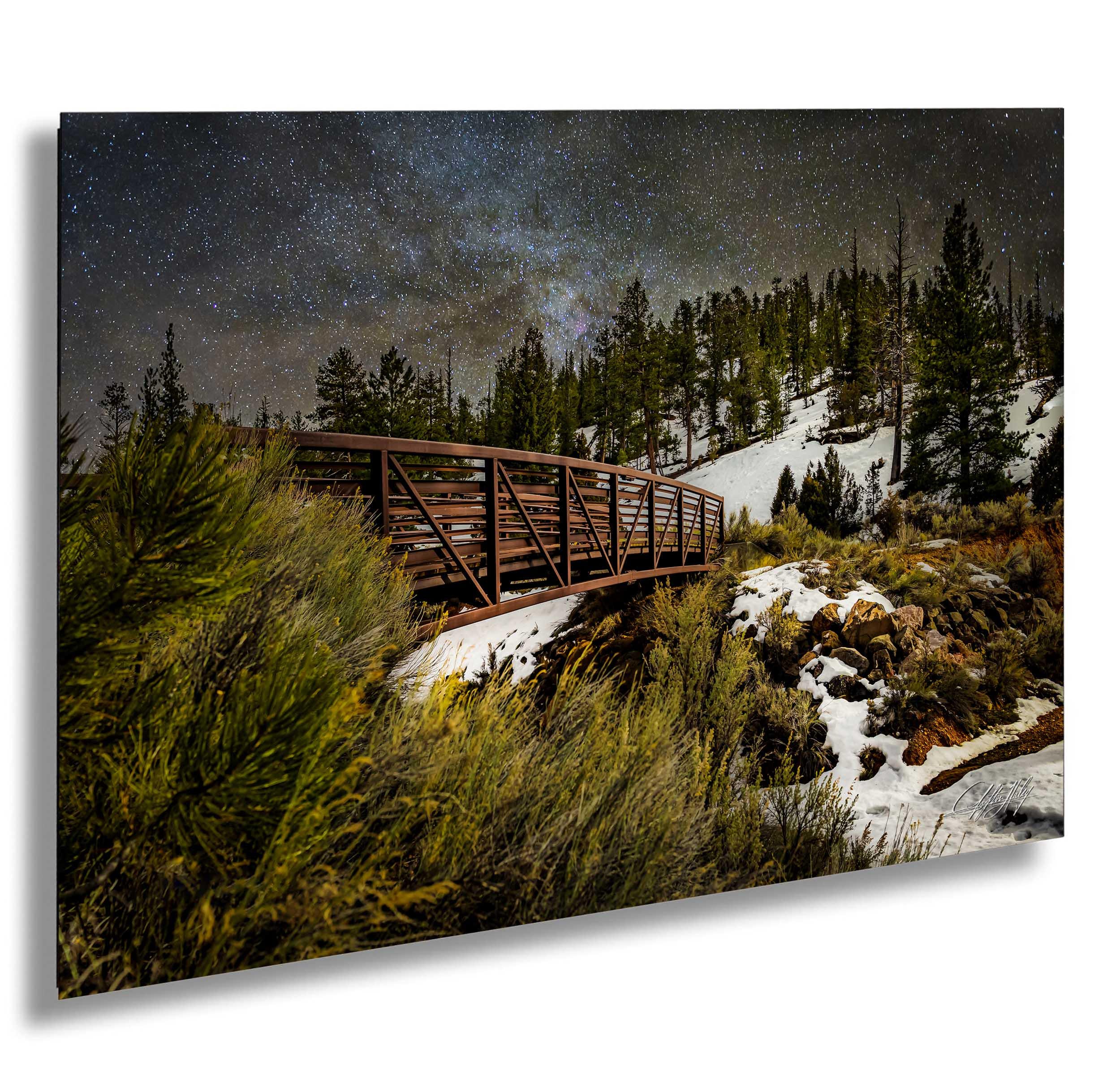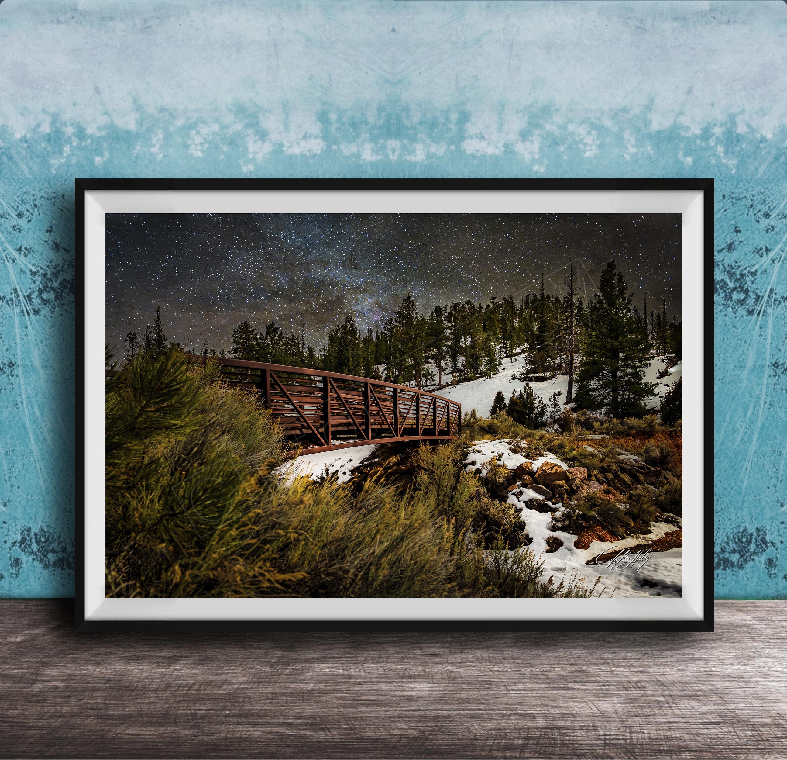 - Crafted as a custom fine art metal print, designed specifically for you - Showcases a snow-covered bridge framed by the expansive Bryce Canyon night sky - Perfect gift for nature lovers and fans of Milky Way artwork - Includes a 2" white mat border for metal prints, enhancing its presentation - Ideal as canyon wall hanging or starry night decor to elevate any space