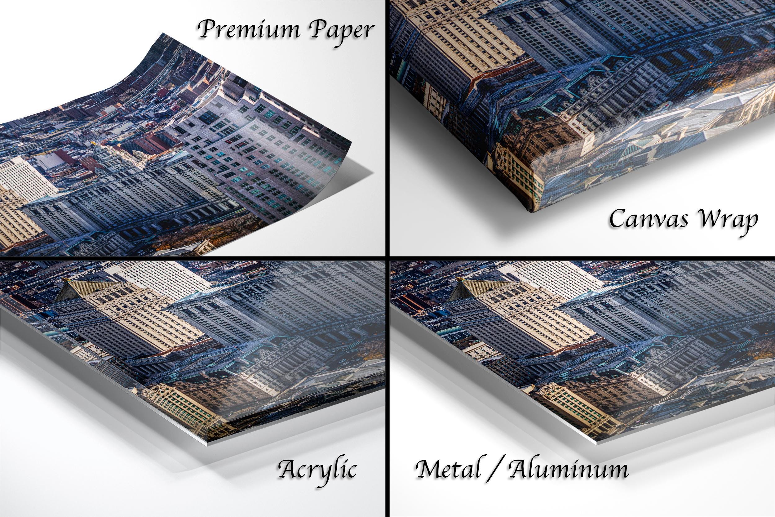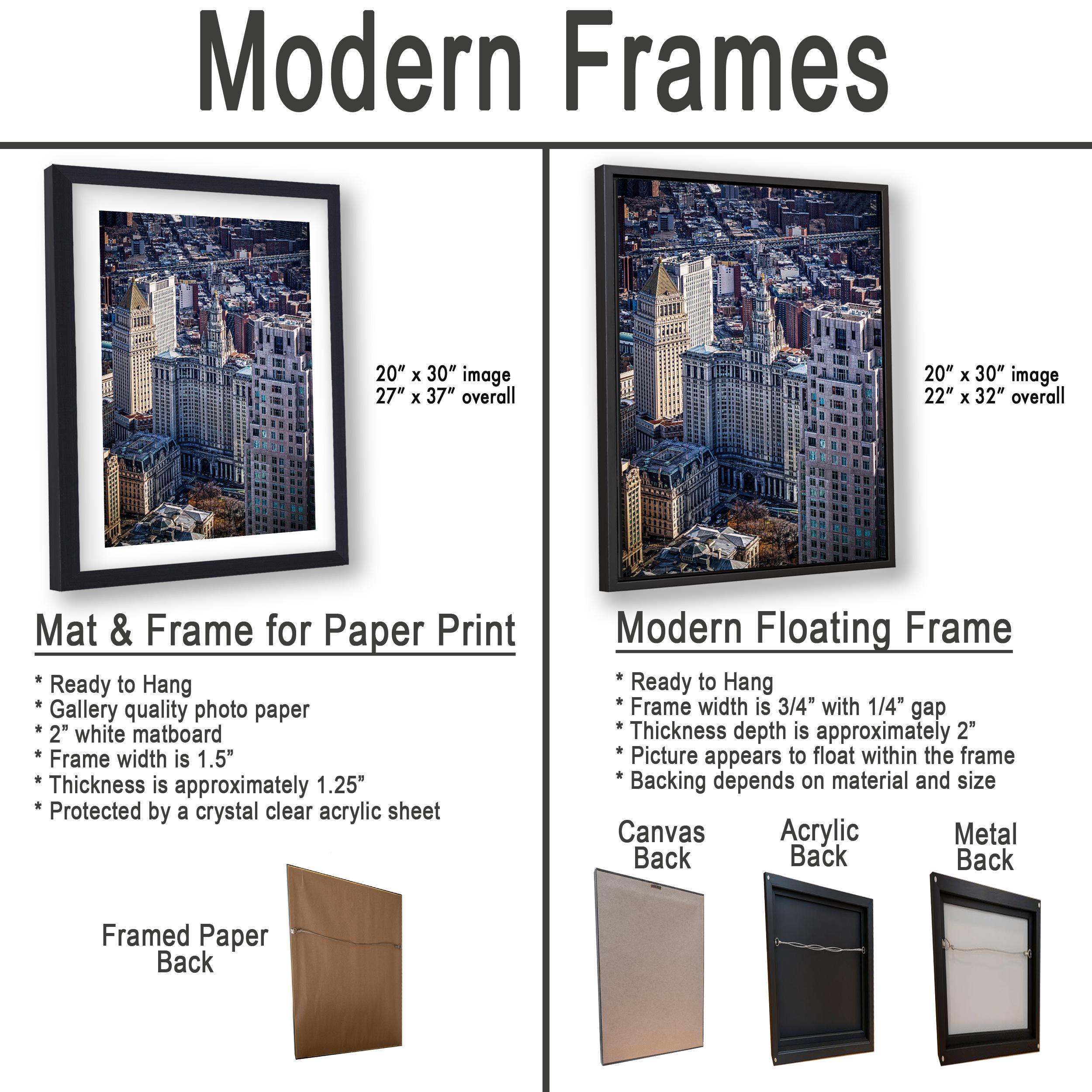 3.1) Only framed paper prints, acrylics and aluminum/metal prints will have a 2" white mat border. 3.2) Canvas prints will be a flush mounted (no mat border) to the frame.