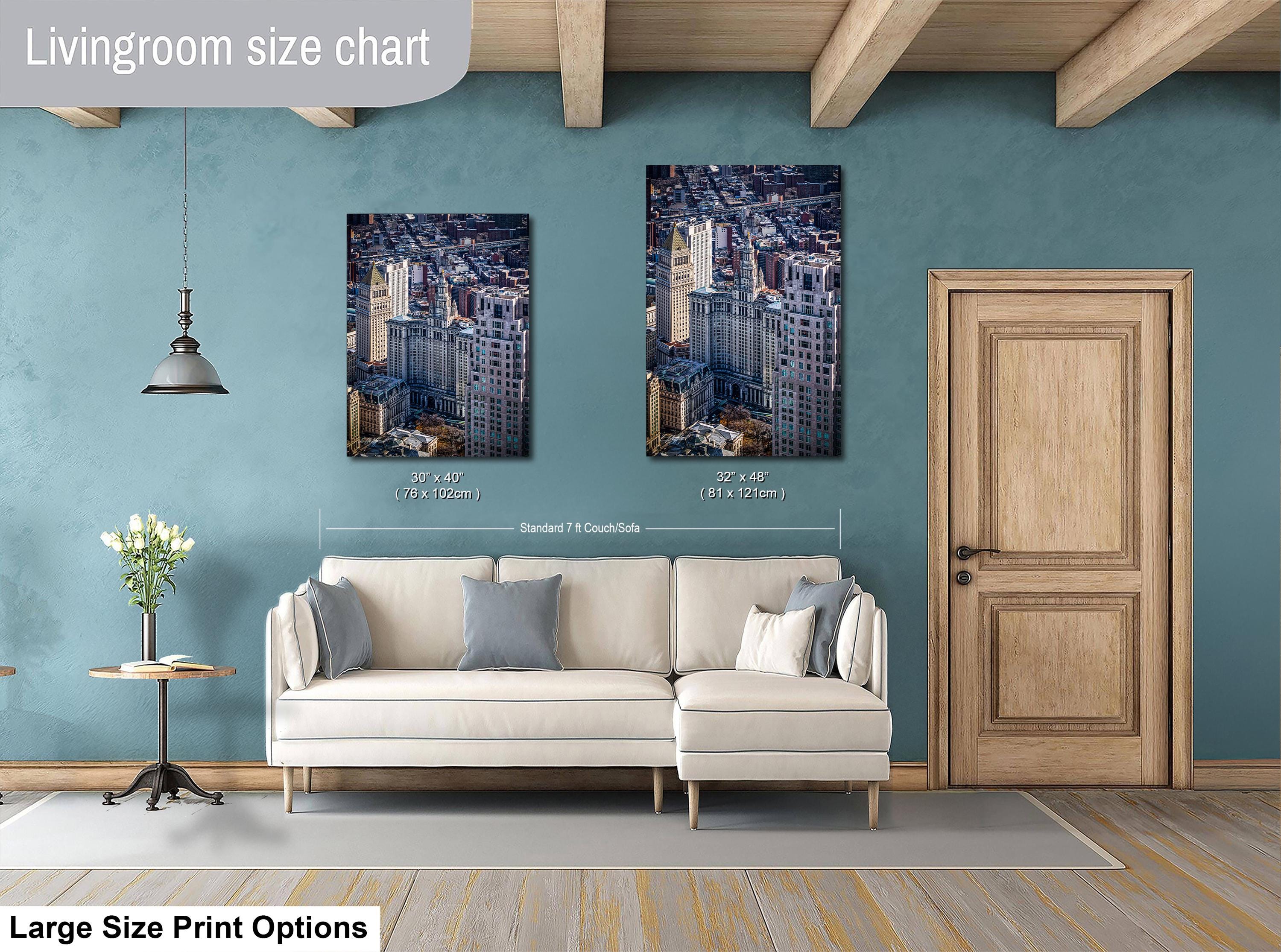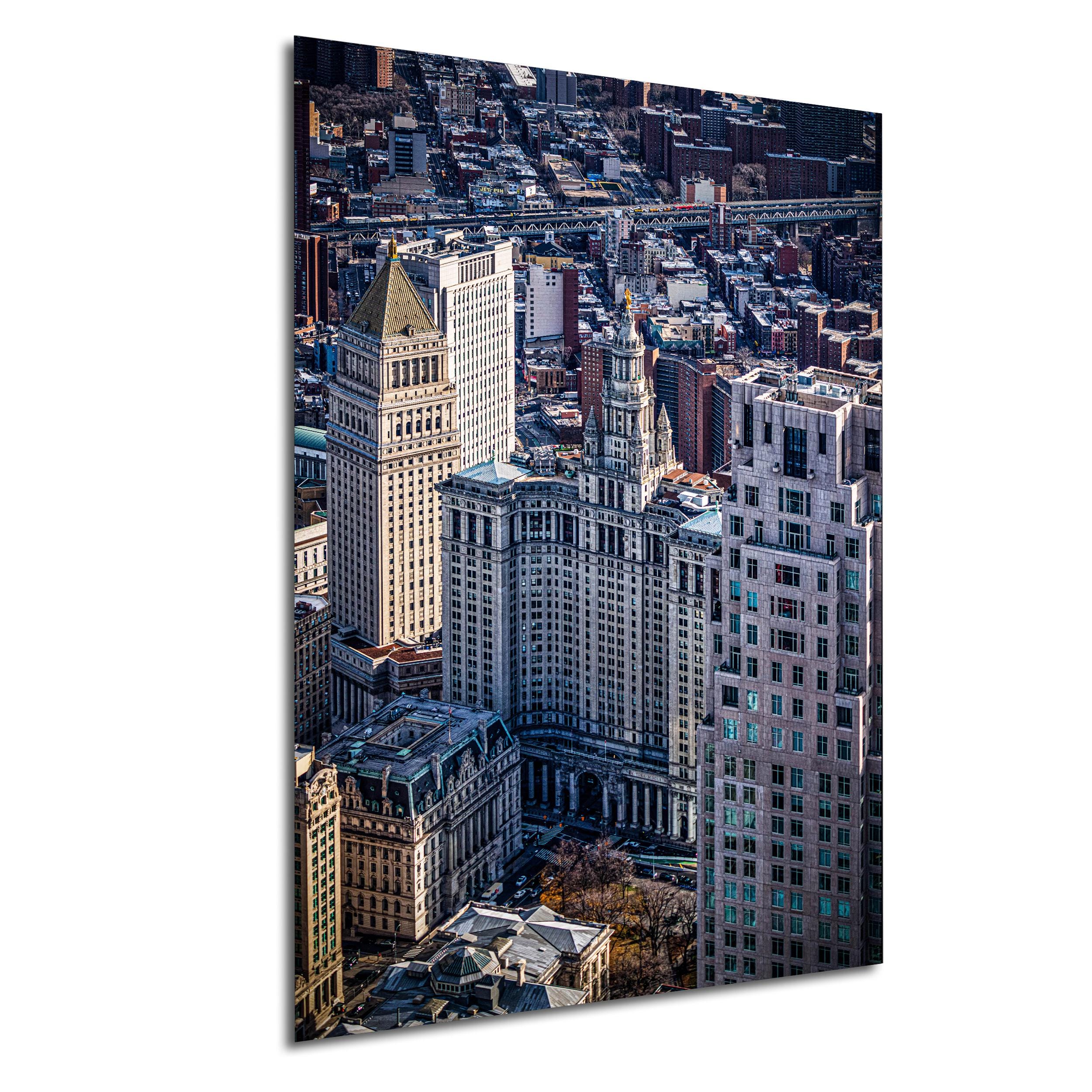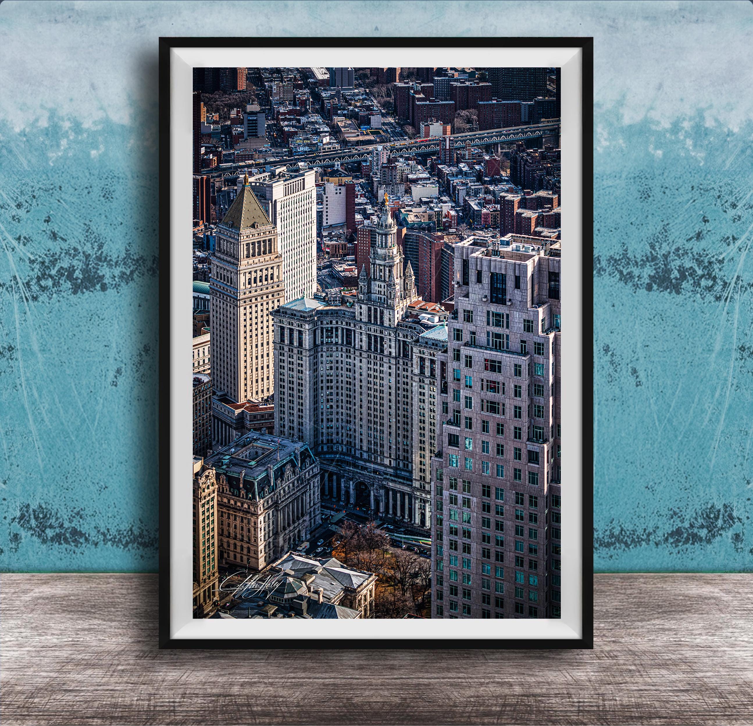 Experience the captivating charm of the Manhattan Municipal Building canvas, a stunning urban landscape that brings the vibrant New York skyline into your living space. This signed artist print captures the essence of midday light, making it a perfect modern city decor piece for any large wall.