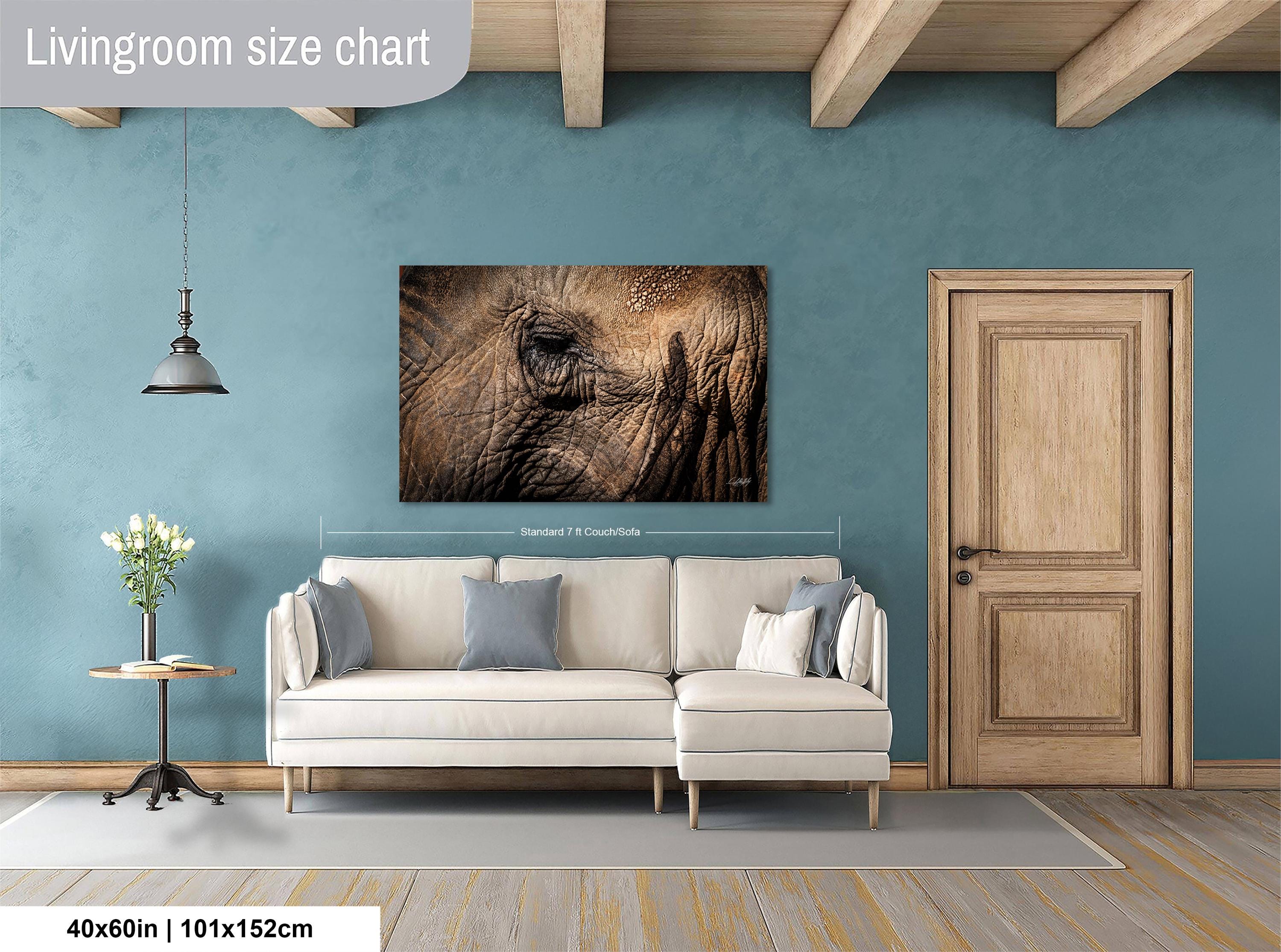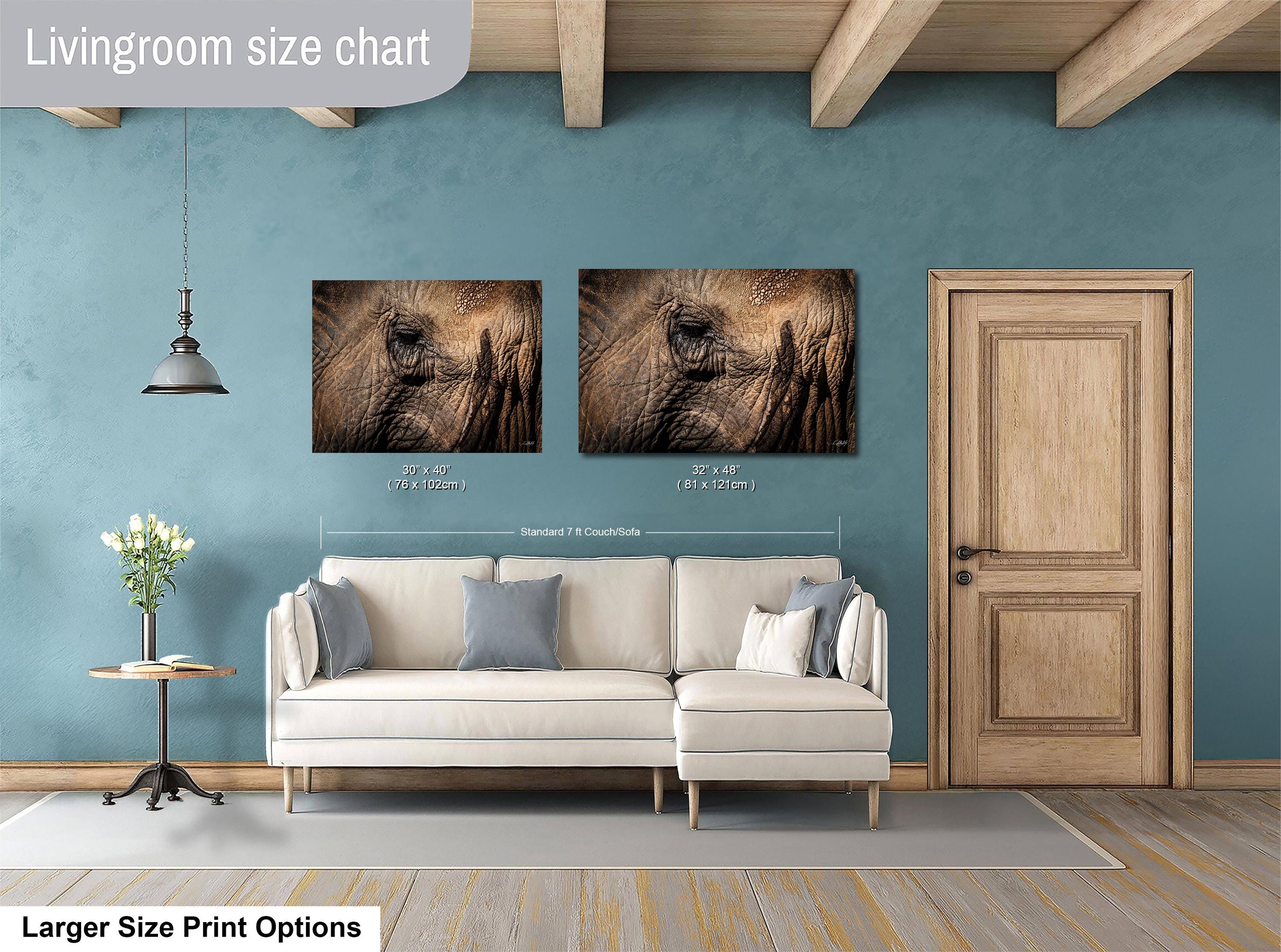 Experience the serene gaze of this noble beast—an evocative blend of African elephant strength and Asian elephant grace—perfect for adding character to any room. The detailed textured hide and vibrant equatorial sun scene bring warmth and depth to your decor.