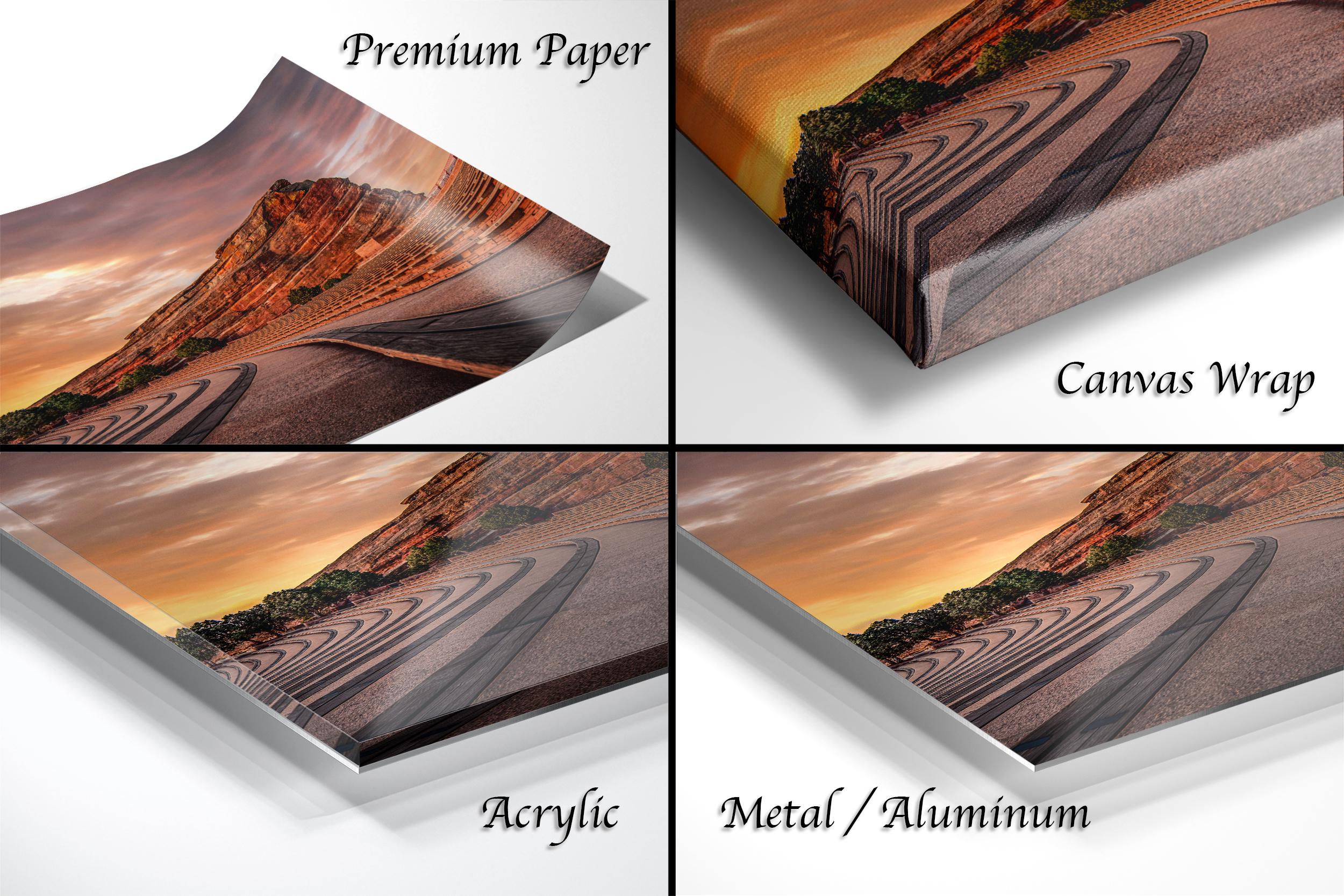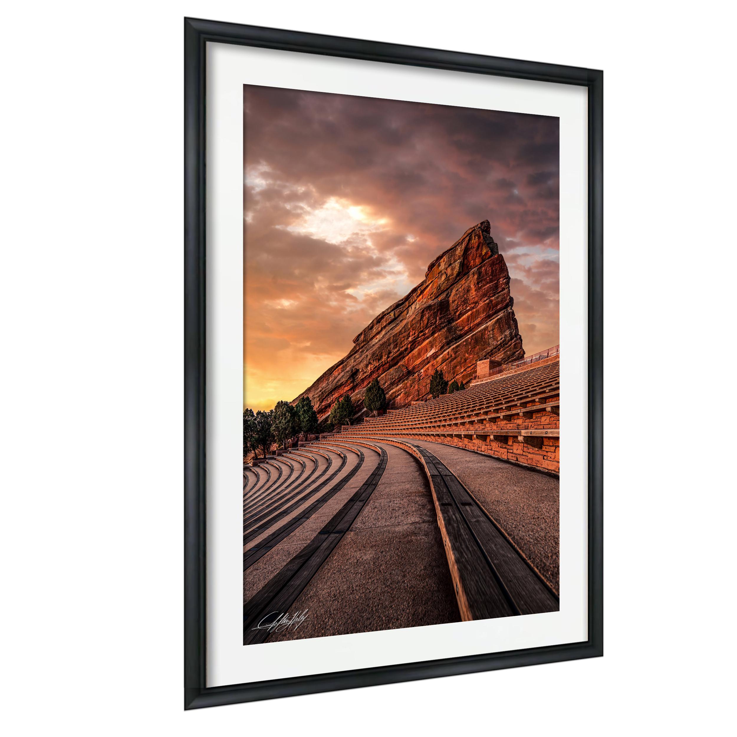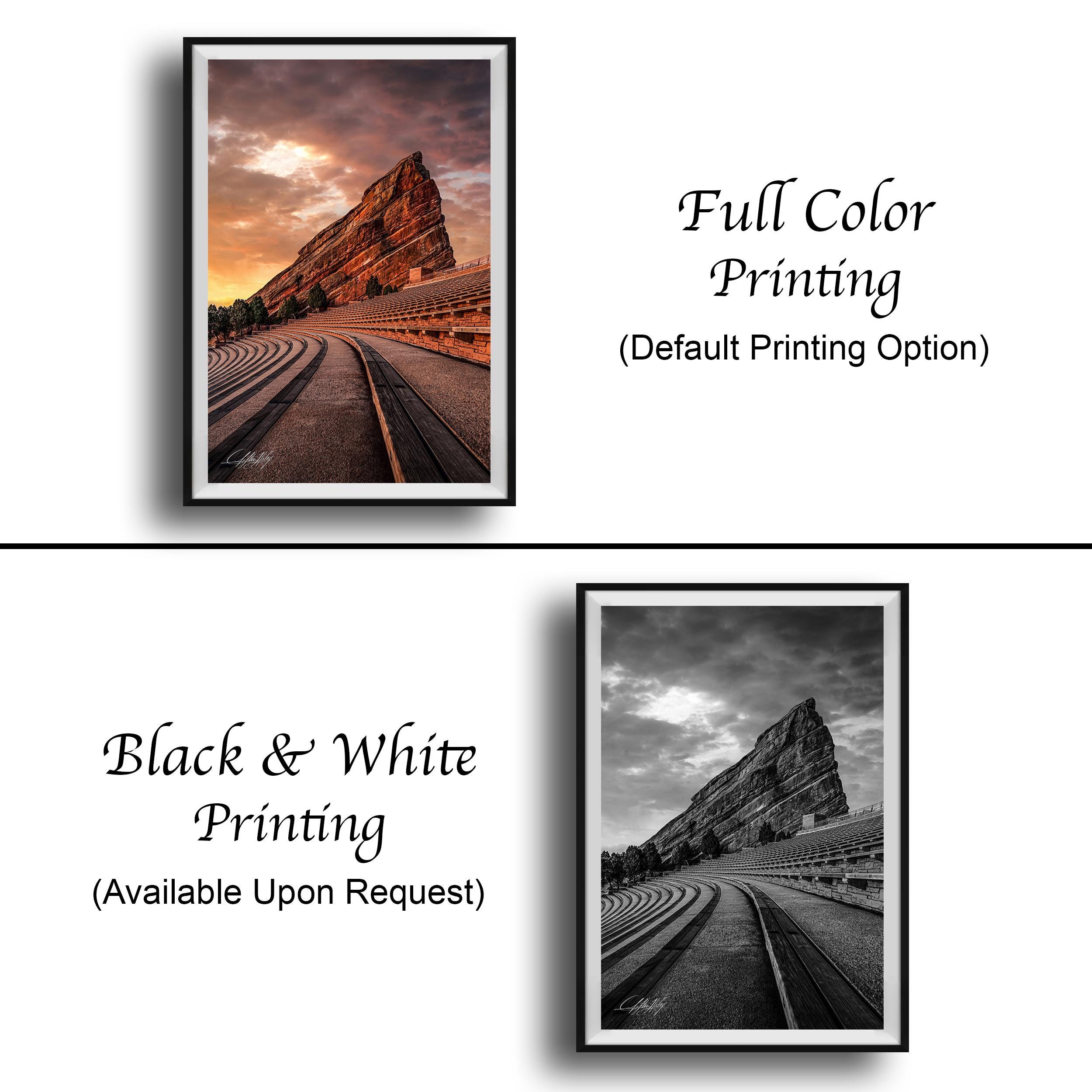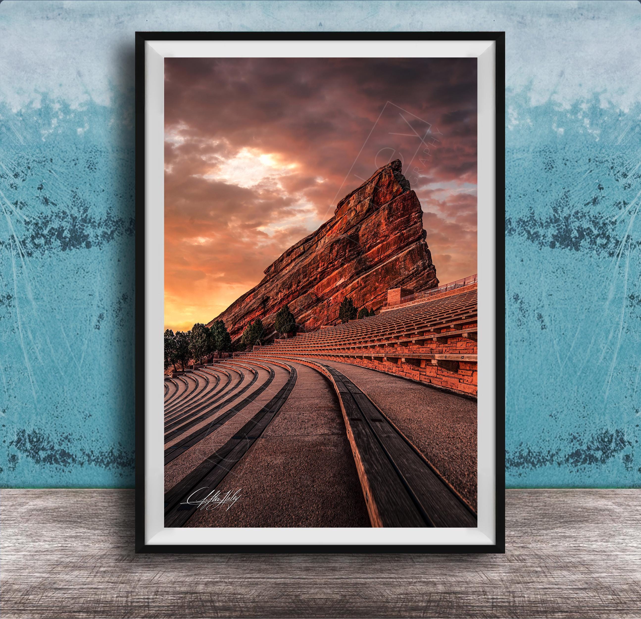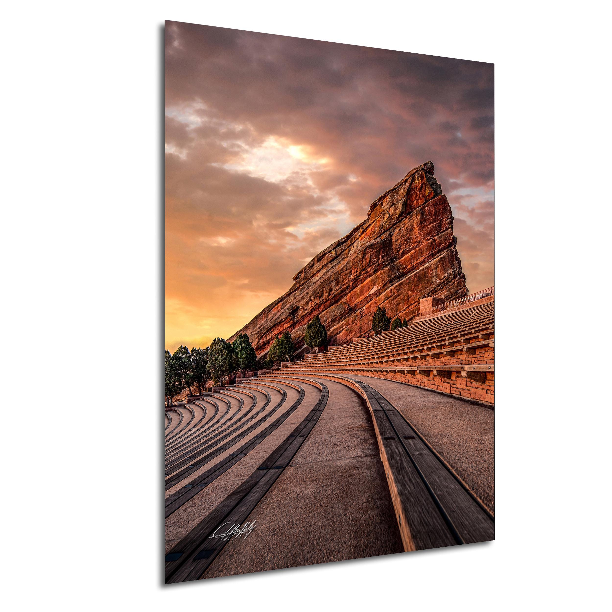 - ✅ Made-to-order fine art print featuring the Red Rocks Amphitheater at sunrise - ✅ Available in framed paper prints with a 2" white mat border, acrylics, aluminum/metal prints, and canvas prints with flush mounting - ✅ Artist's signature authenticates each piece as a unique creation, adding a personal touch - ✅ Ideal for home or office decor, offering a timeless nature lover gift that highlights Colorado's majestic landscape