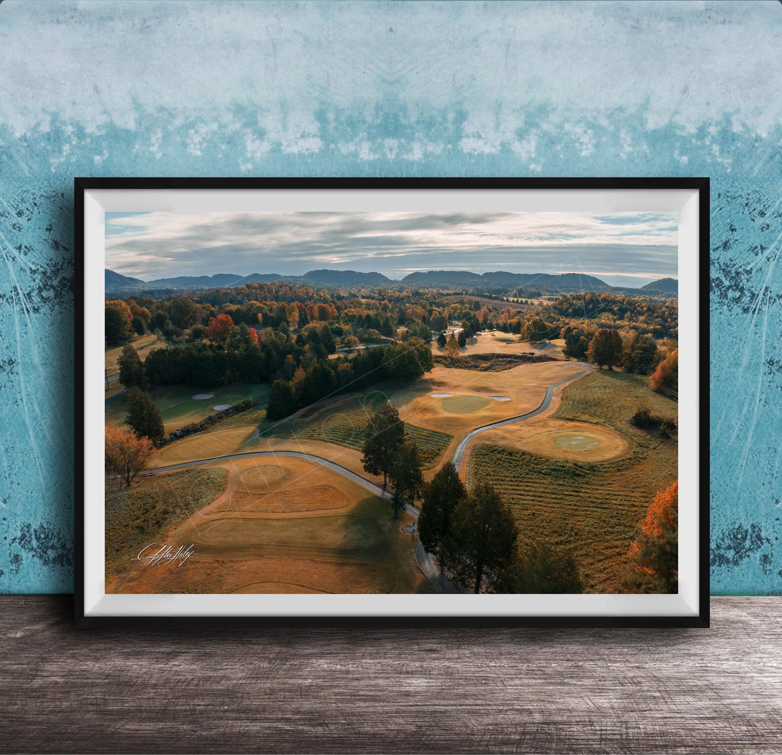 Three Ridge captures the essence of a stunning golf course, perfect as golf gifts for men and Father Day presents. This scenic print showcases the autumn beauty of the Smoky Mountains and East Tennessee's iconic landscape.