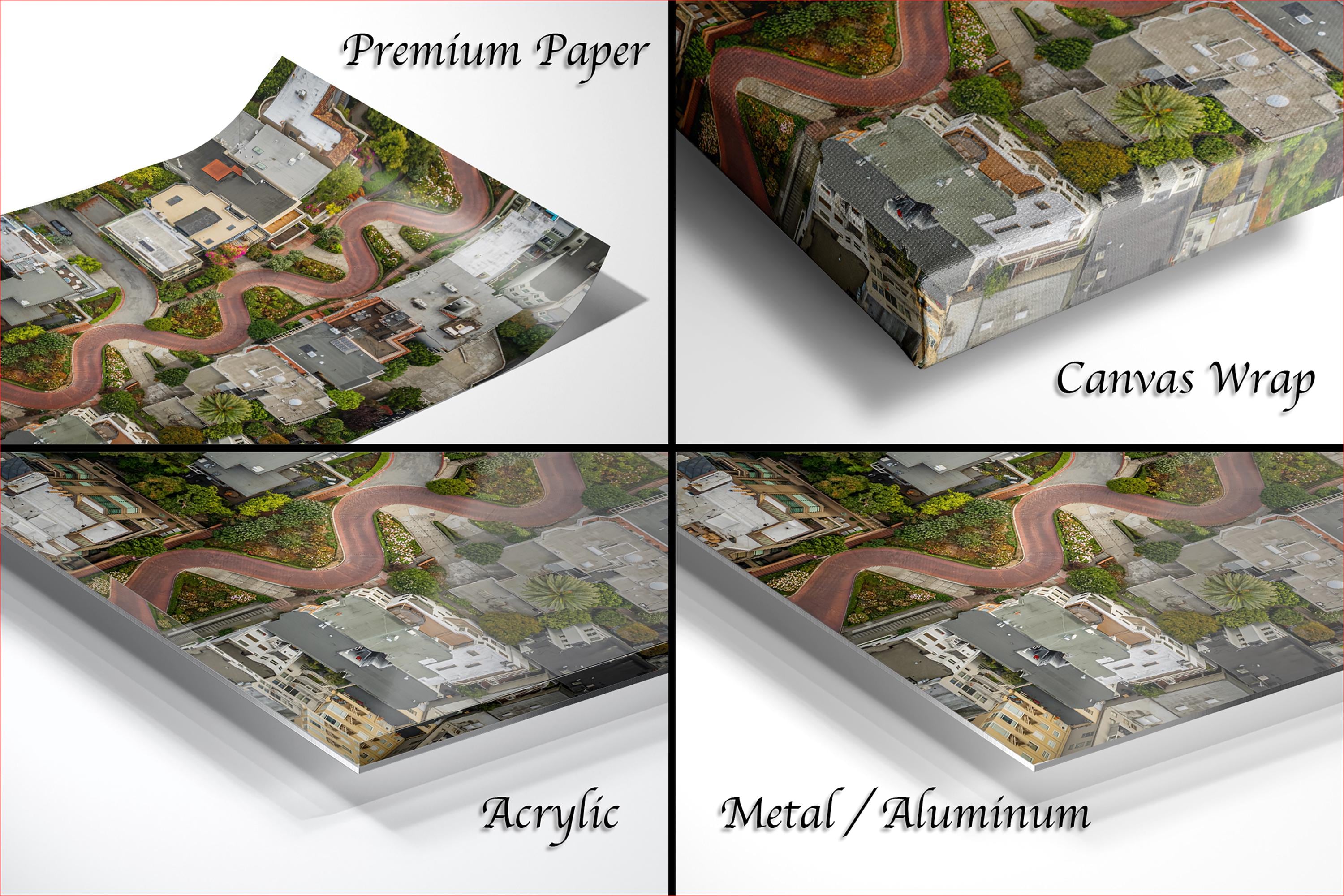 3.1) Only framed paper prints, acrylics and aluminum/metal prints will have a 2" white mat border. 3.2) Canvas prints will be a flush mounted (no mat border) to the frame.
