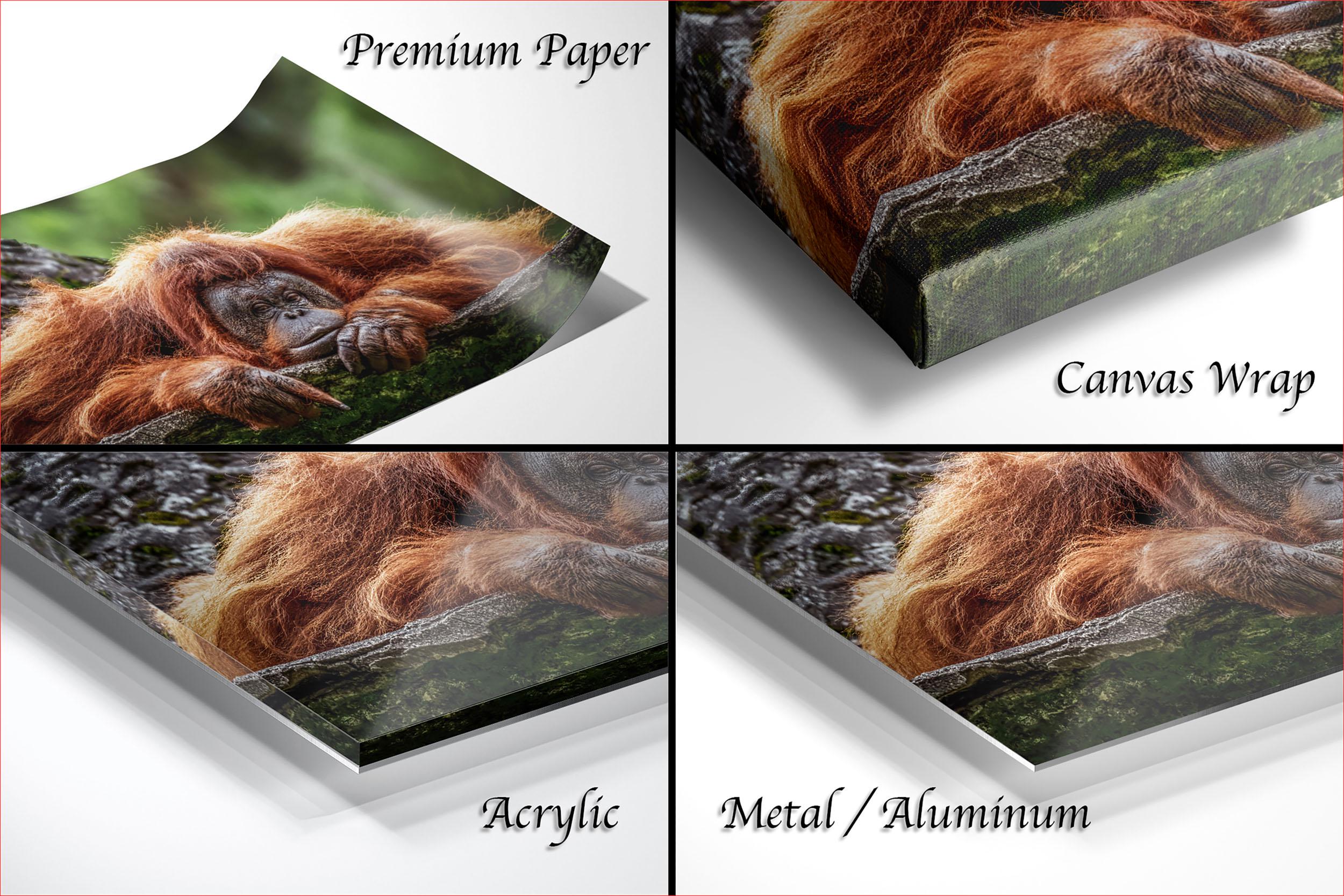 ➢ Dimensions and materials vary by print type; please select your preference at checkout. ➢ Ideal as an orangutan gift or a striking addition to your wildlife photography collection. ➢ Since each print is personalized, returns are not accepted, but damaged items will be promptly replaced.