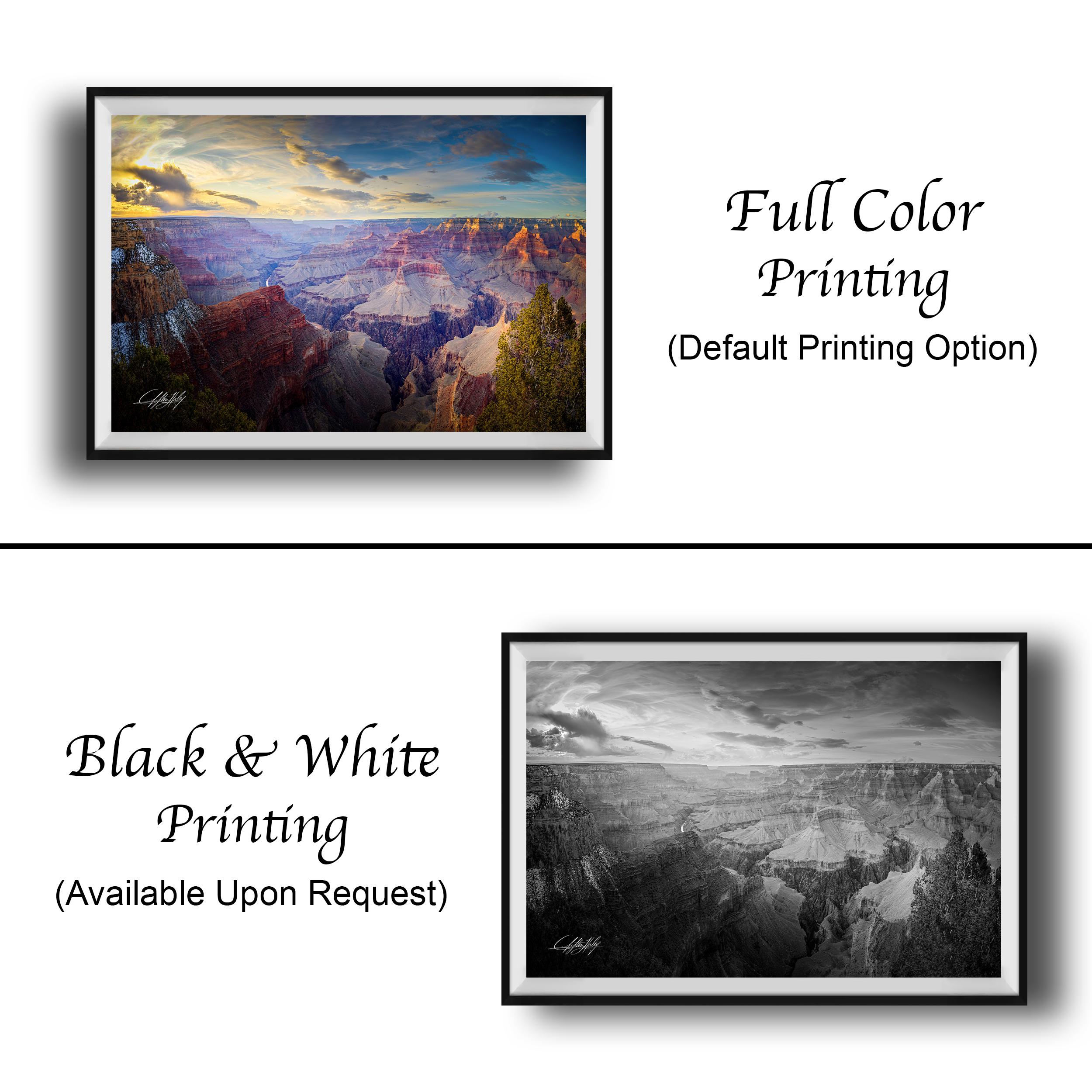 Each piece is crafted with care, featuring the artist's signature in the bottom corner to authenticate its originality. Choose from framed paper prints, acrylics, aluminum/metal prints with a 2" white mat border, or canvas prints with flush mounting for a clean finish.