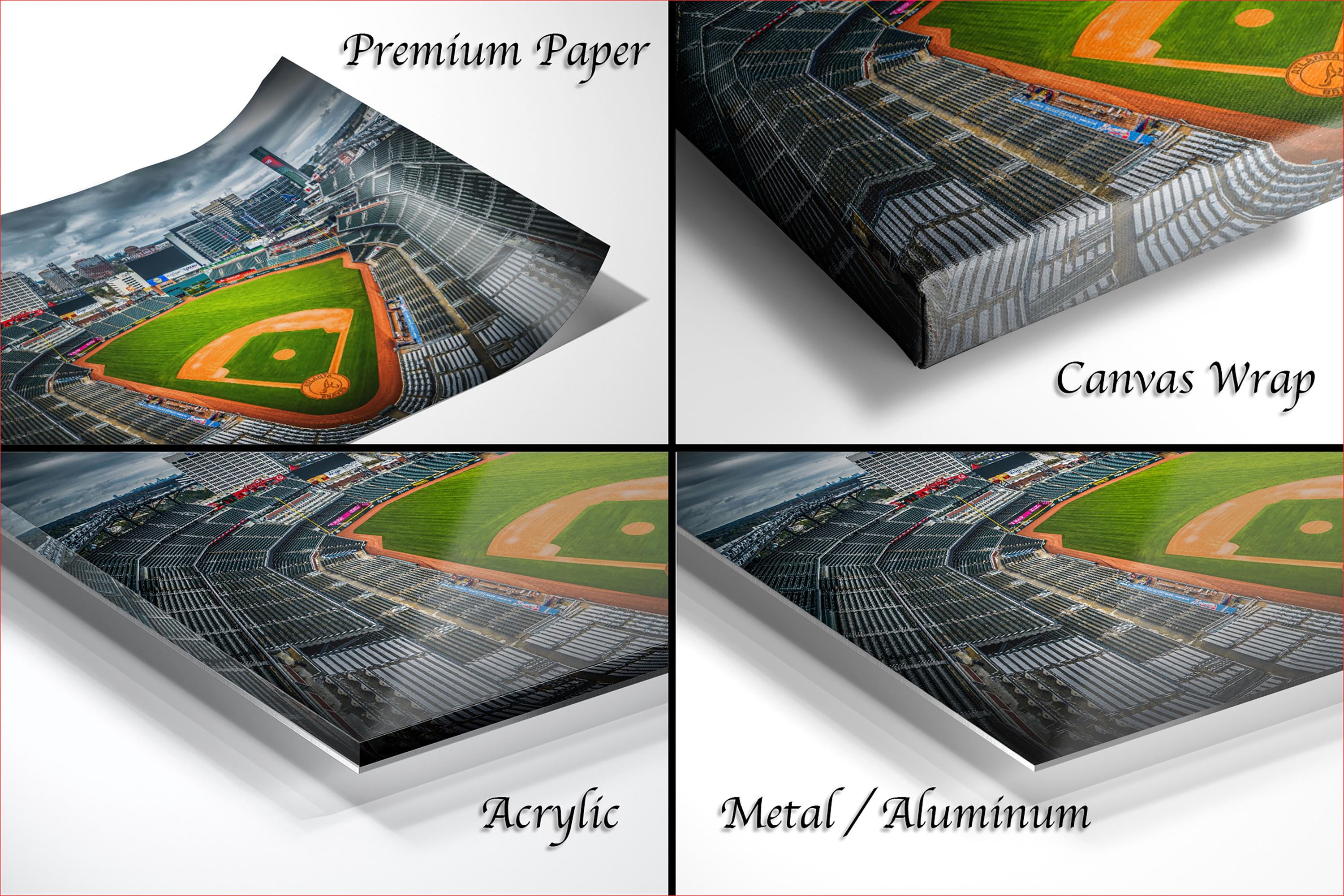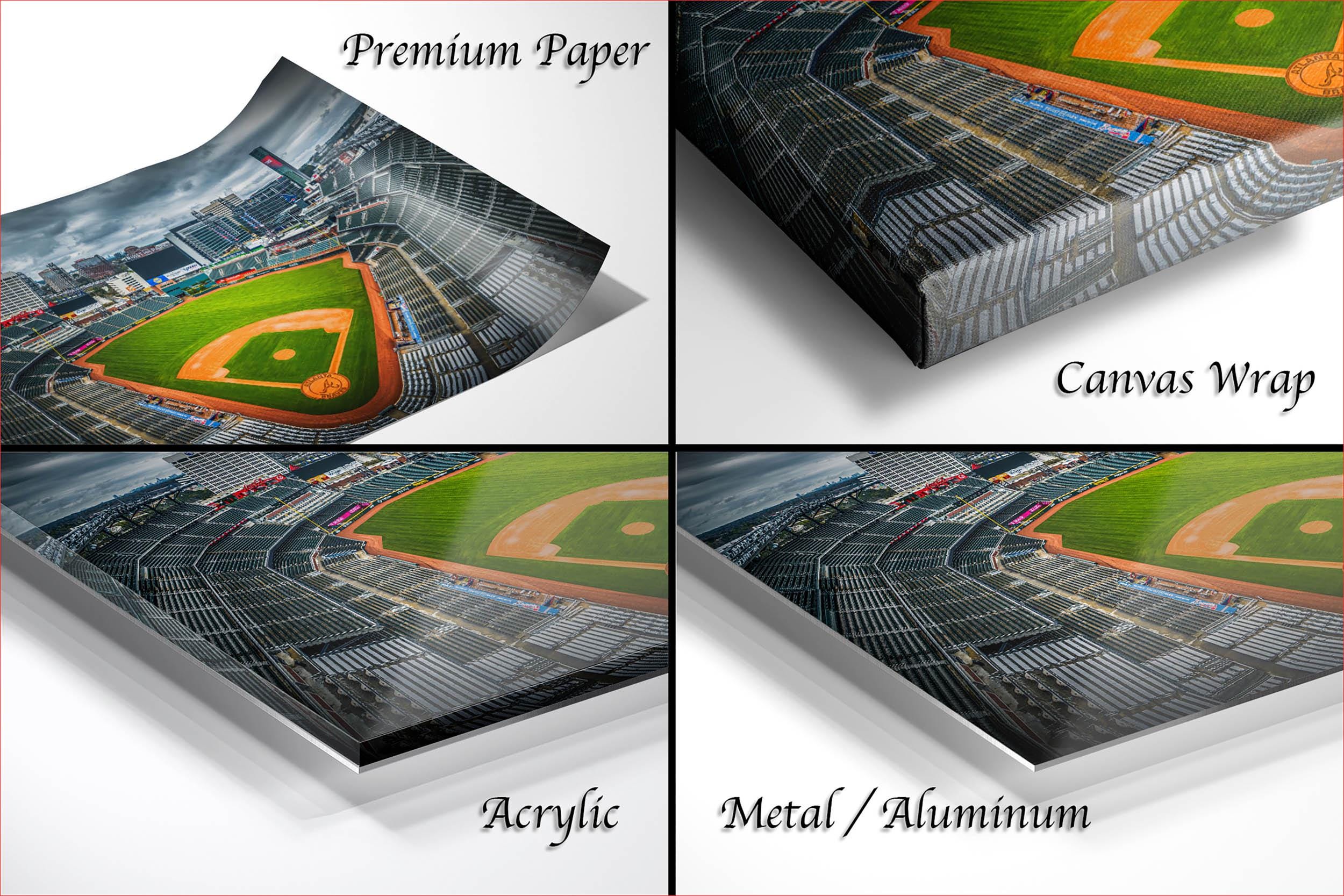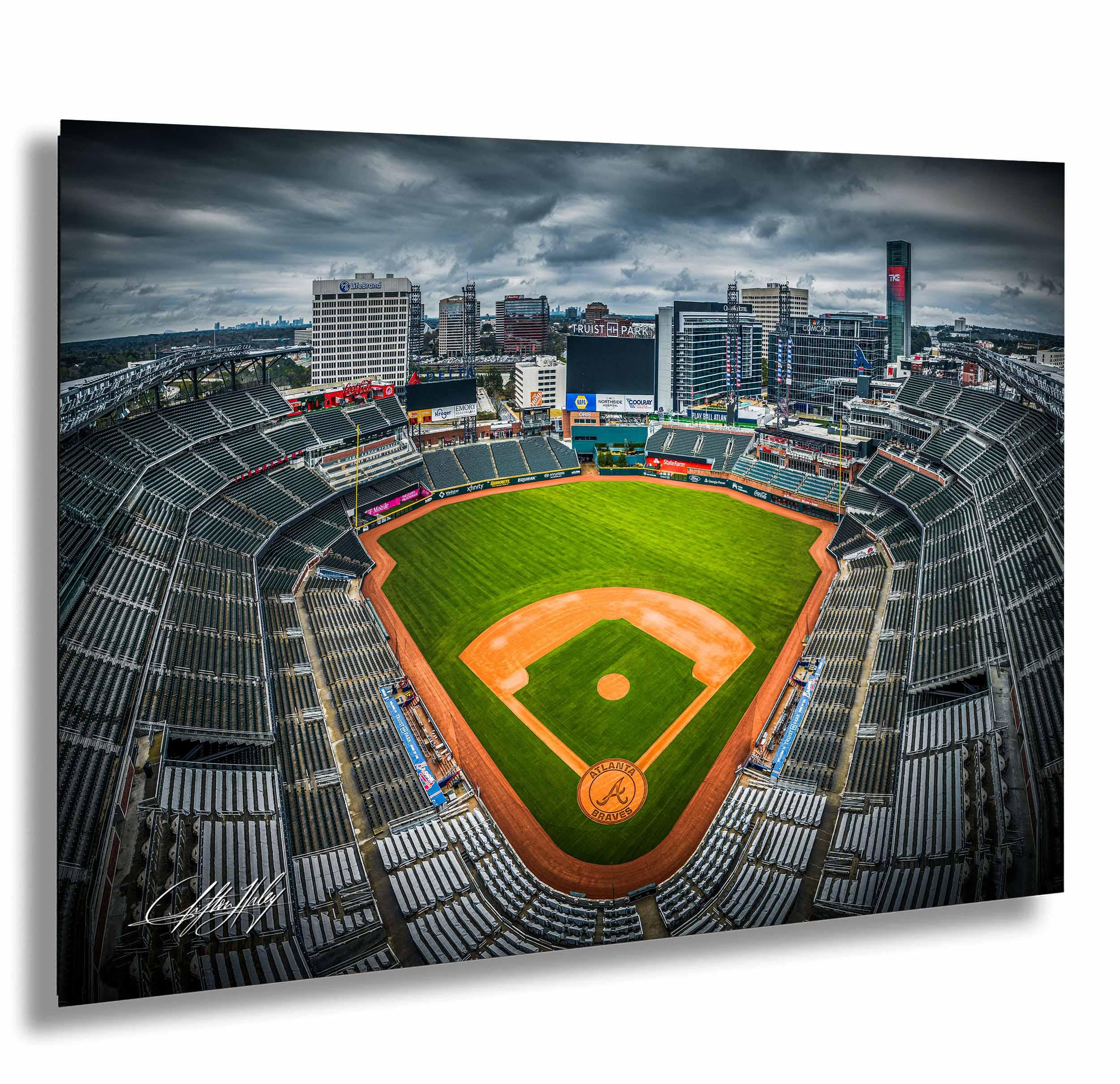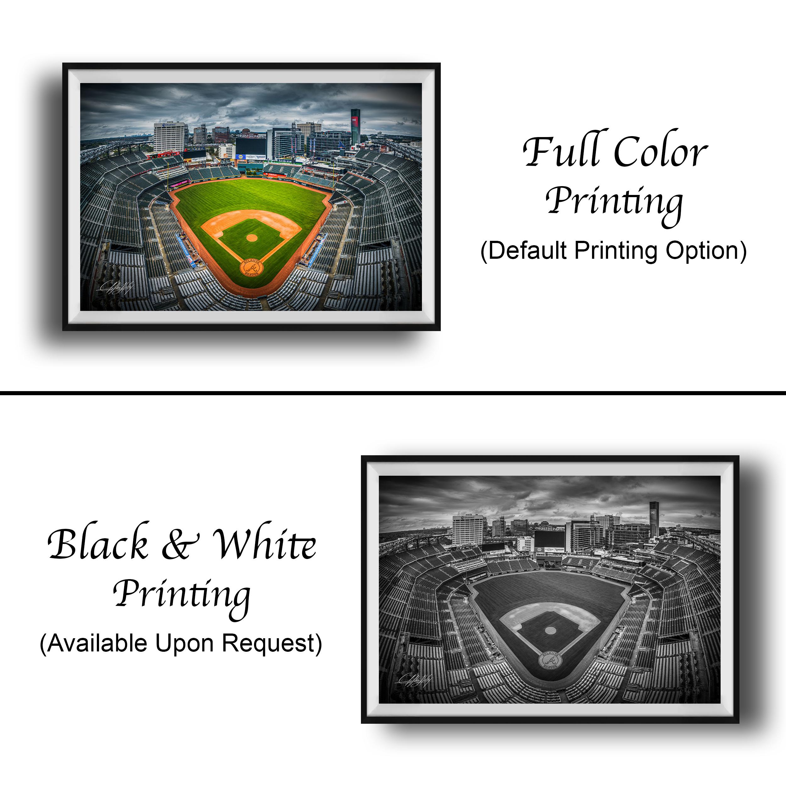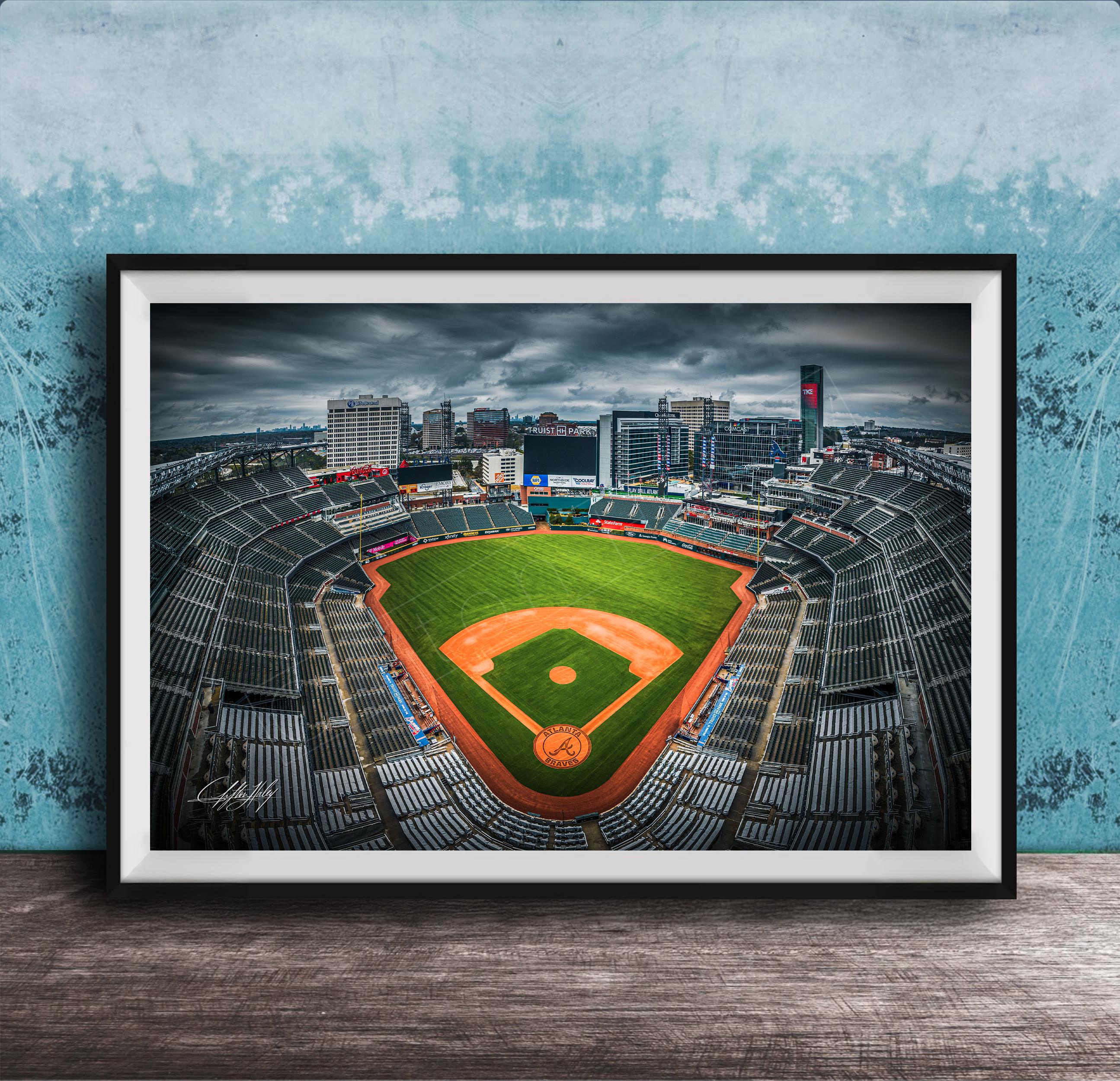 Bring the thrill of game day into your home with this captivating baseball stadium art. Ideal for displaying in your sports room, office, or as a standout piece of Atlanta sports decor. Celebrate your love for baseball and the Atlanta Braves with this exclusive stadium aerial photo that captures the heart of the game.