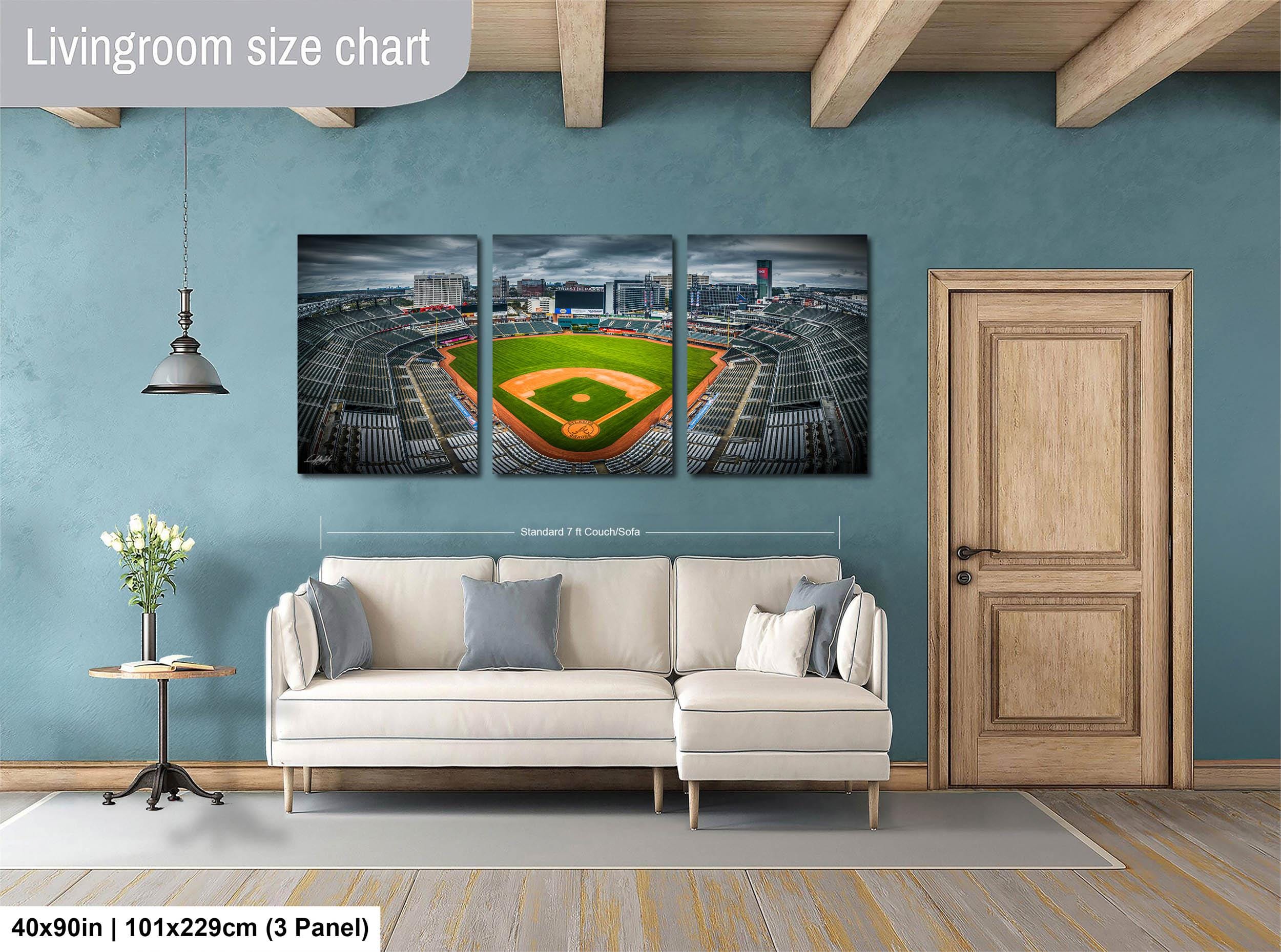 Each custom fine art print is made to order, artist signed, and crafted from high-quality materials to ensure a vibrant and durable piece of sports wall art. Whether you're a dedicated Braves fan or looking for a dynamic addition to your game room decor, this stadium aerial view will elevate any space with its striking detail and vivid colors.