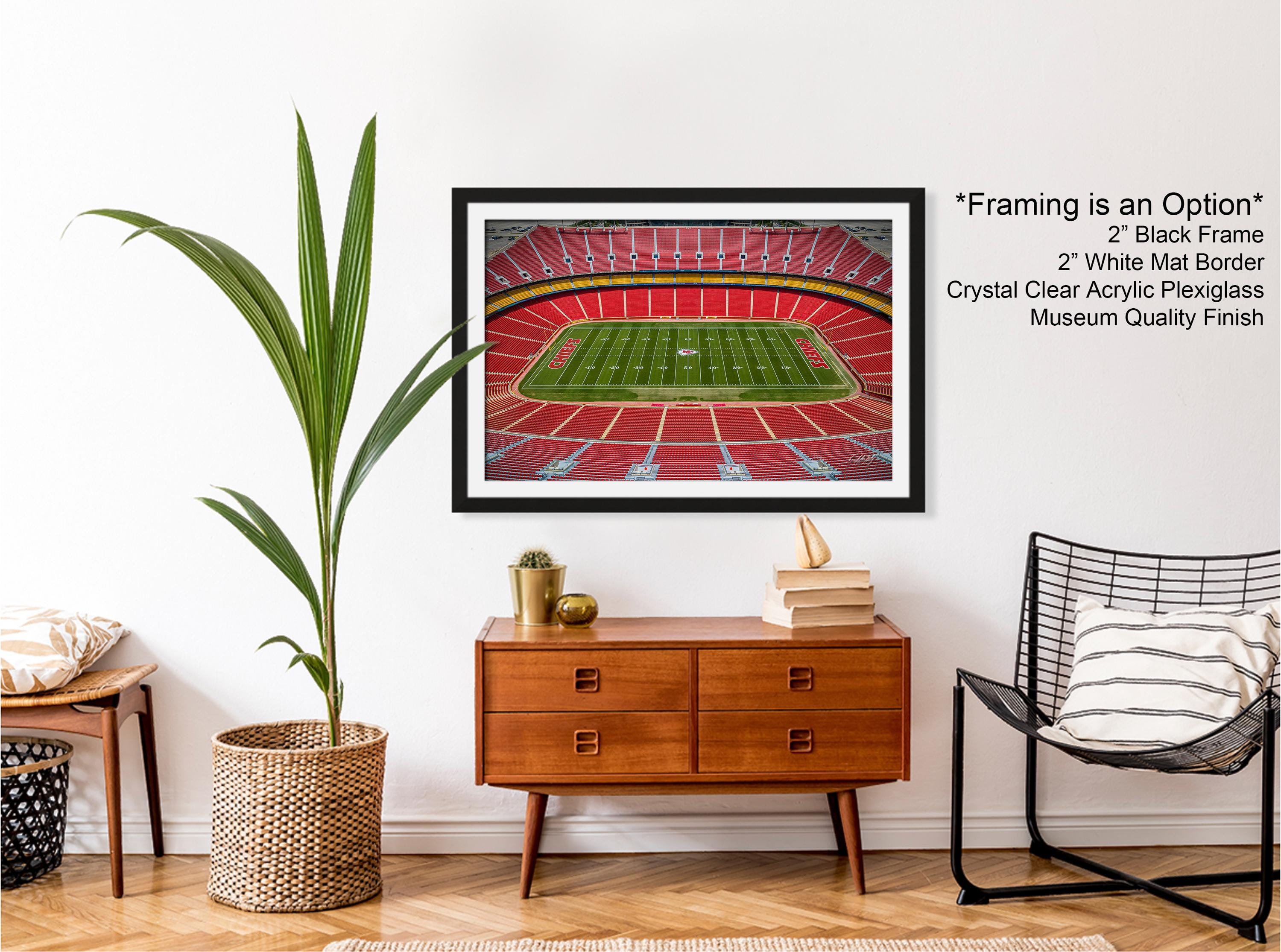 Bring home a timeless tribute to your favorite football stadium and relive the excitement of every game day with this exclusive Arrowhead Stadium artwork.
