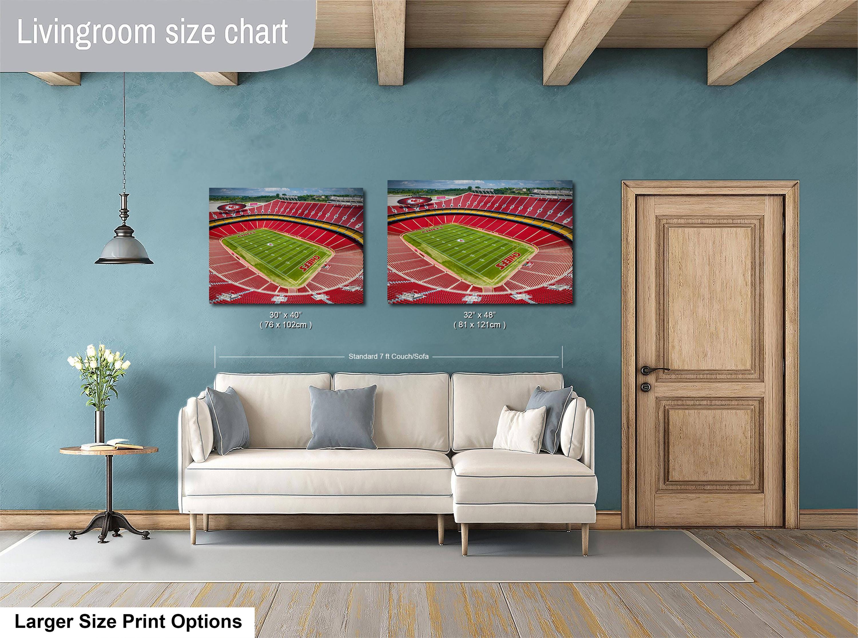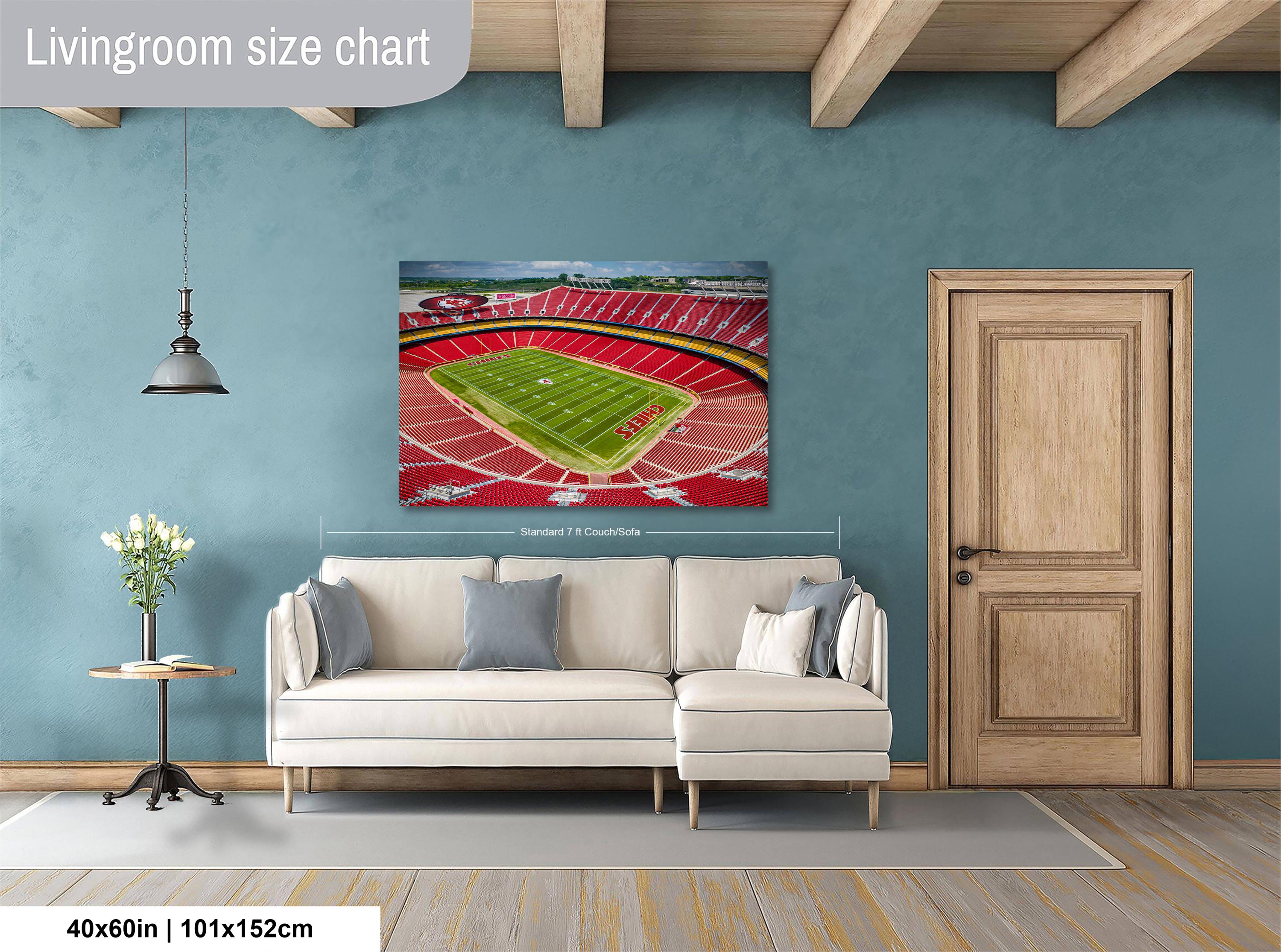 • Dimensions and customization options available upon request • Made-to-order with no returns, but damaged items are eligible for exchange or replacement • Ideal gift for Kansas City Chiefs supporters or collectors of stadium art