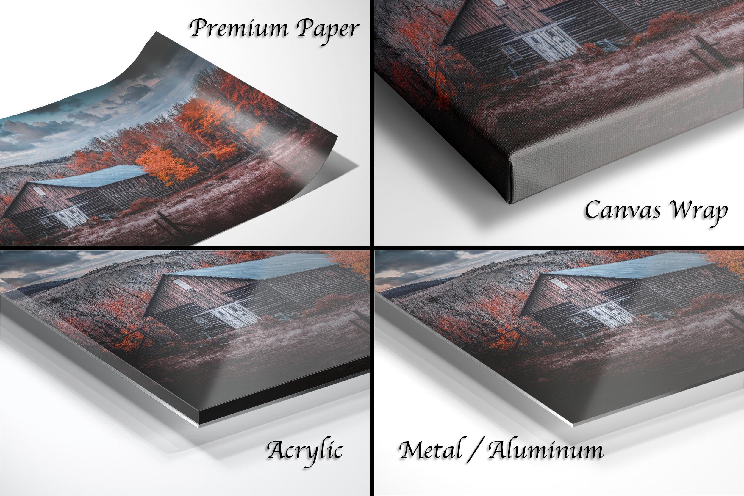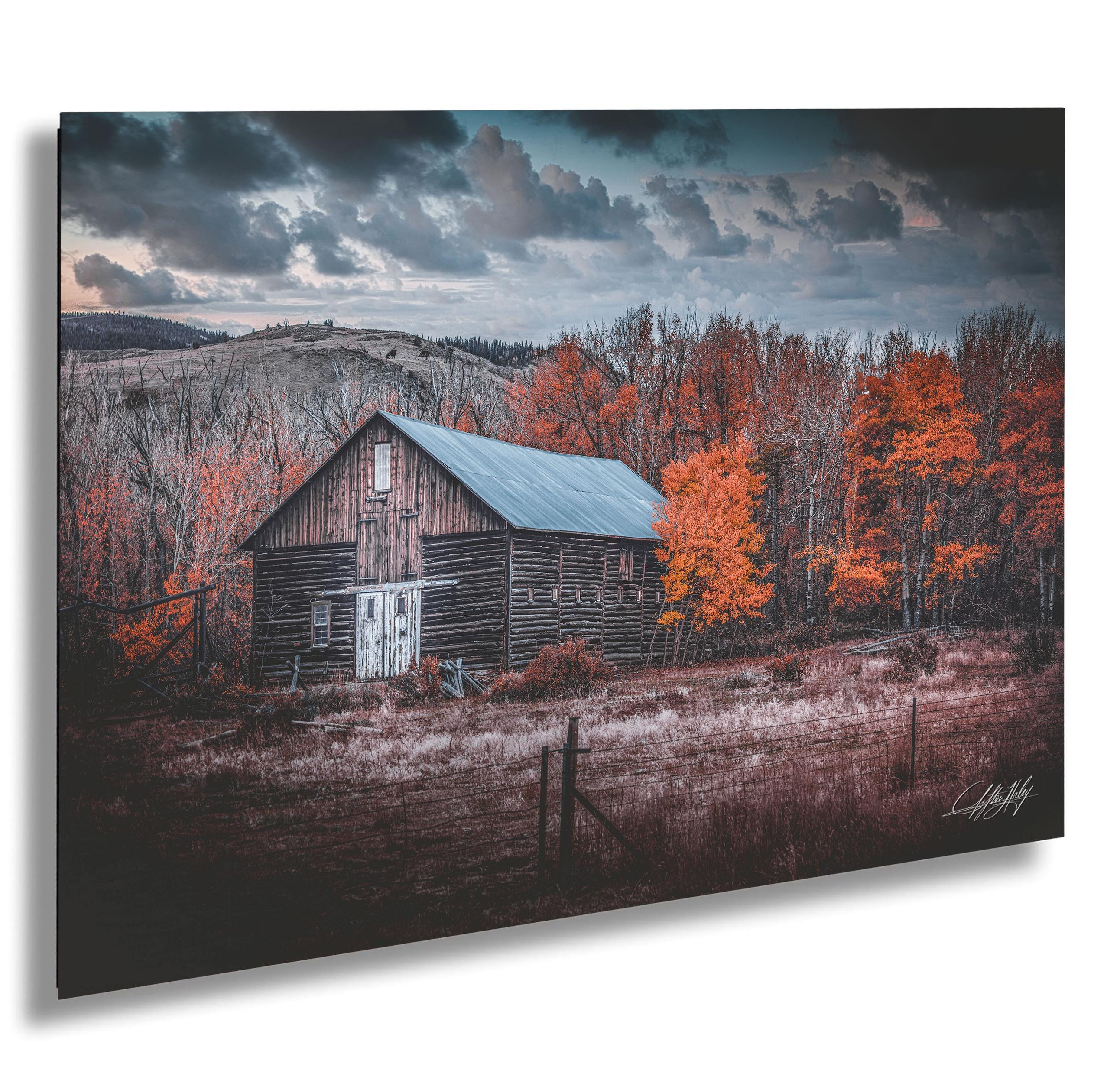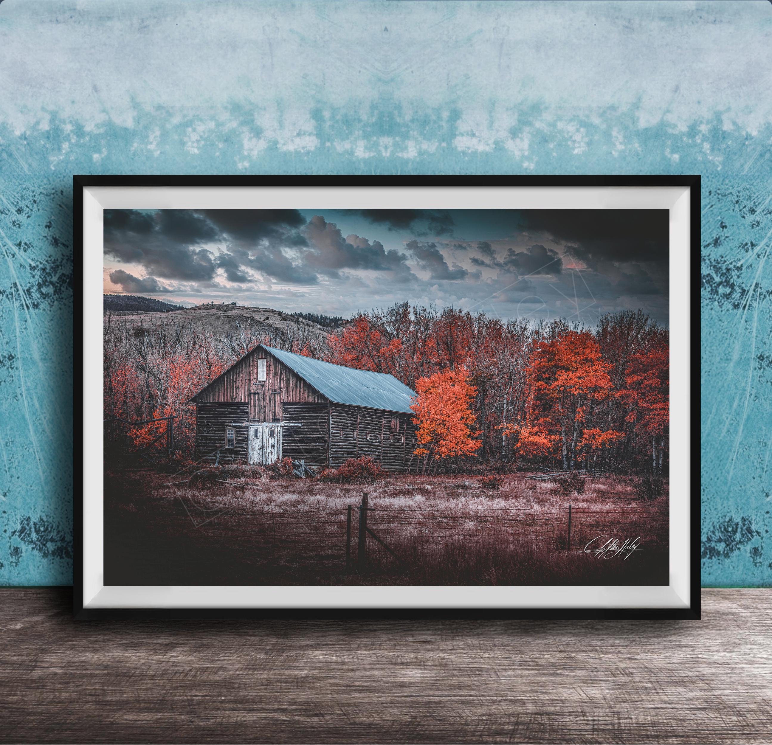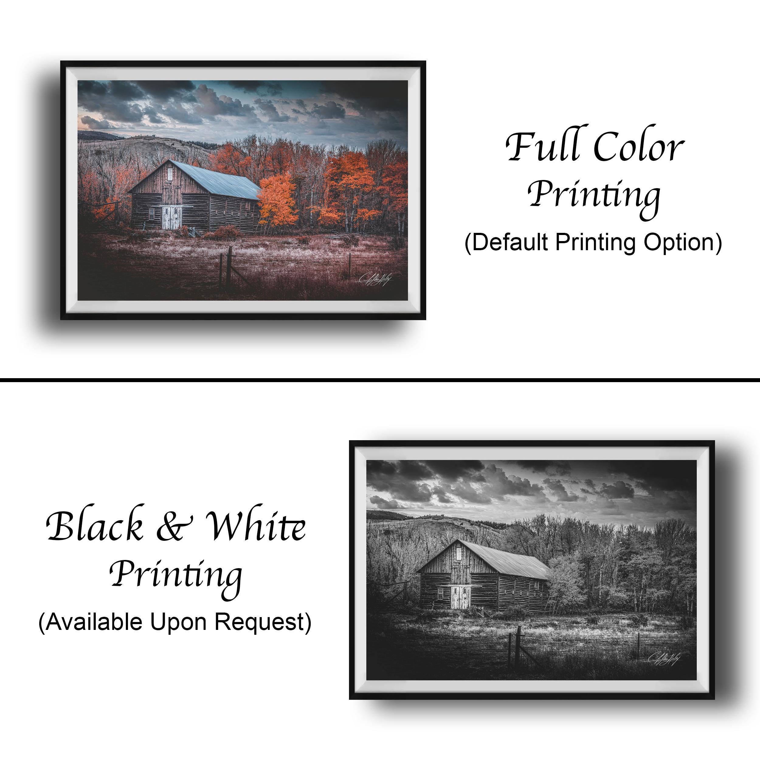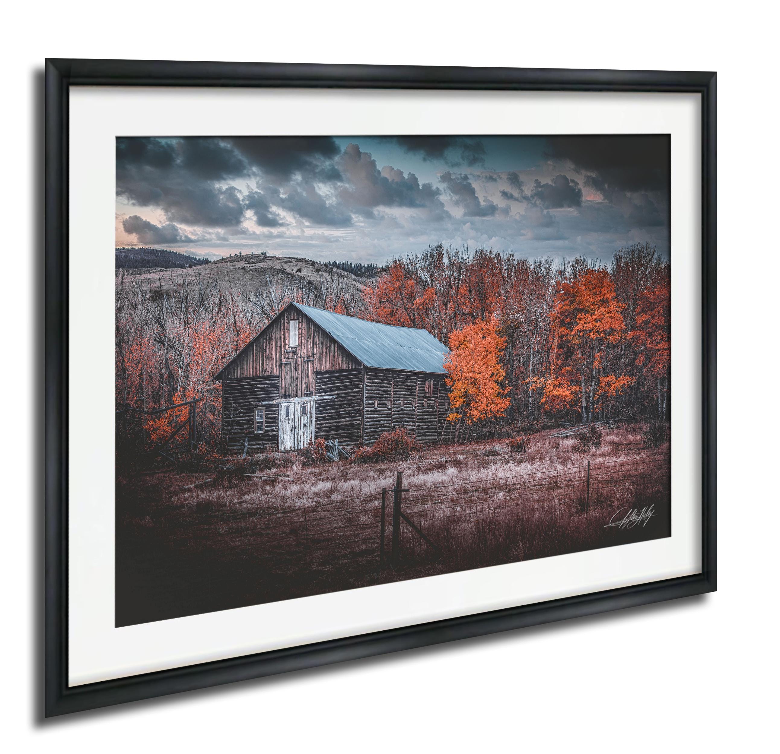 Choose from framed paper prints, acrylics, or aluminum/metal prints with a 2" white mat border, or opt for canvas prints that are flush mounted without a mat border. This Wyoming barn artwork is a beautiful way to bring the serene spirit of the countryside into your home.