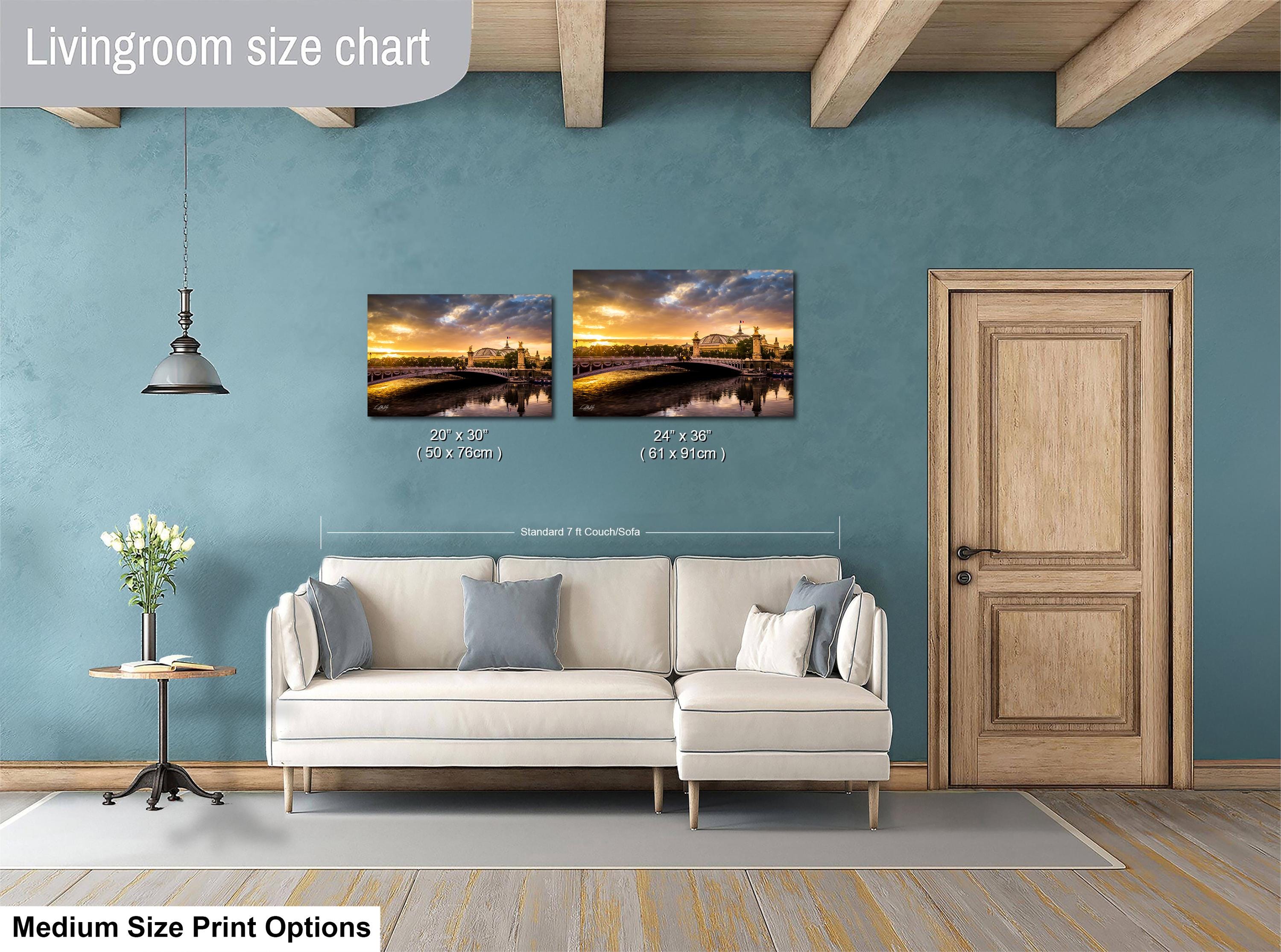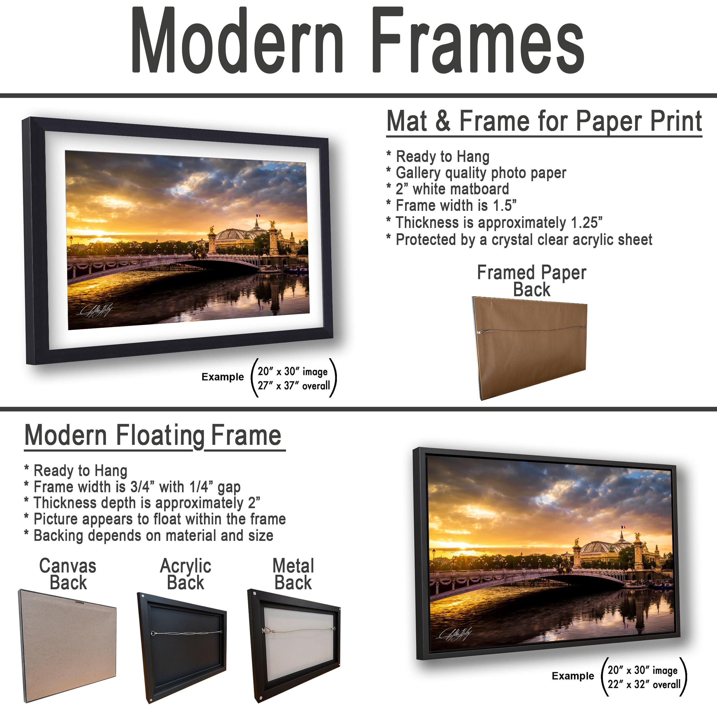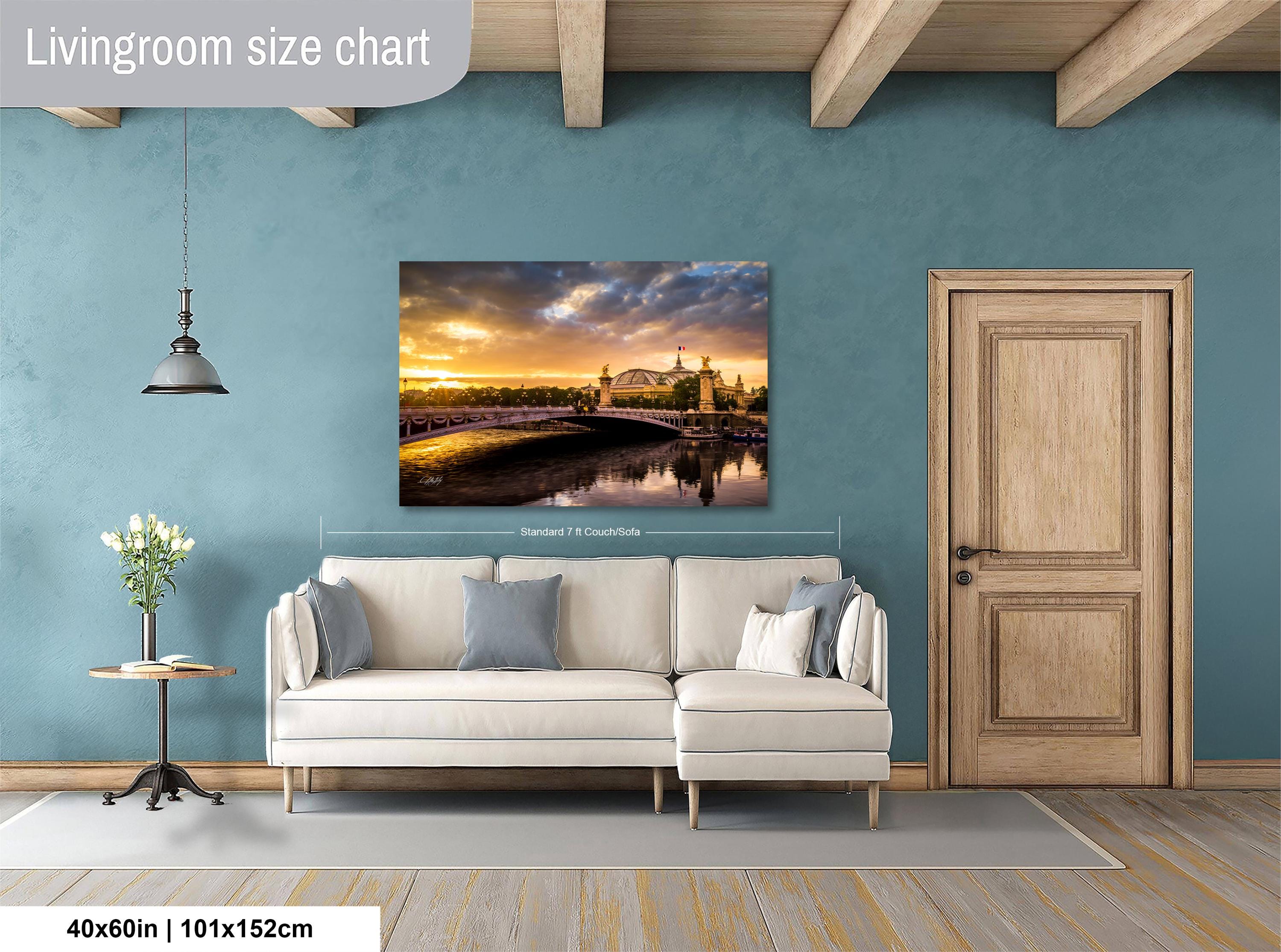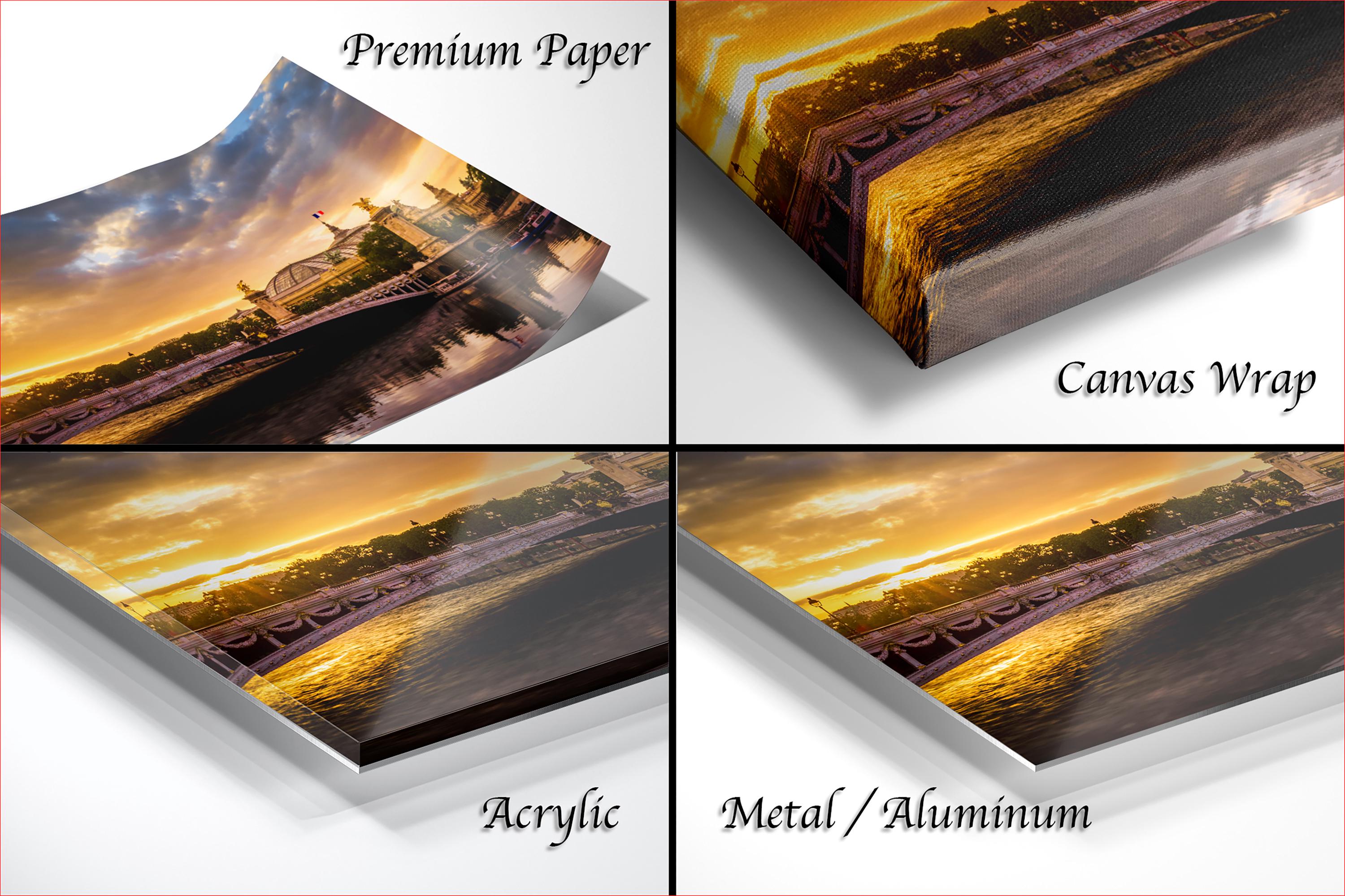 • Made-to-order fine art photograph featuring the iconic Alexander 3rd Bridge bathed in warm golden hour sunset light. • Artist’s signature authenticates each piece, adding a personal and exclusive touch. • Available in multiple formats: framed paper prints, acrylics, aluminum/metal prints with a 2" white mat border, or canvas prints flush mounted without a mat border. • Dimensions and customization options available upon request to perfectly suit your space. • Please note: due to the custom nature of this artwork, returns are not accepted; however, we gladly offer exchanges or replacements if your piece arrives damaged or with any issues.