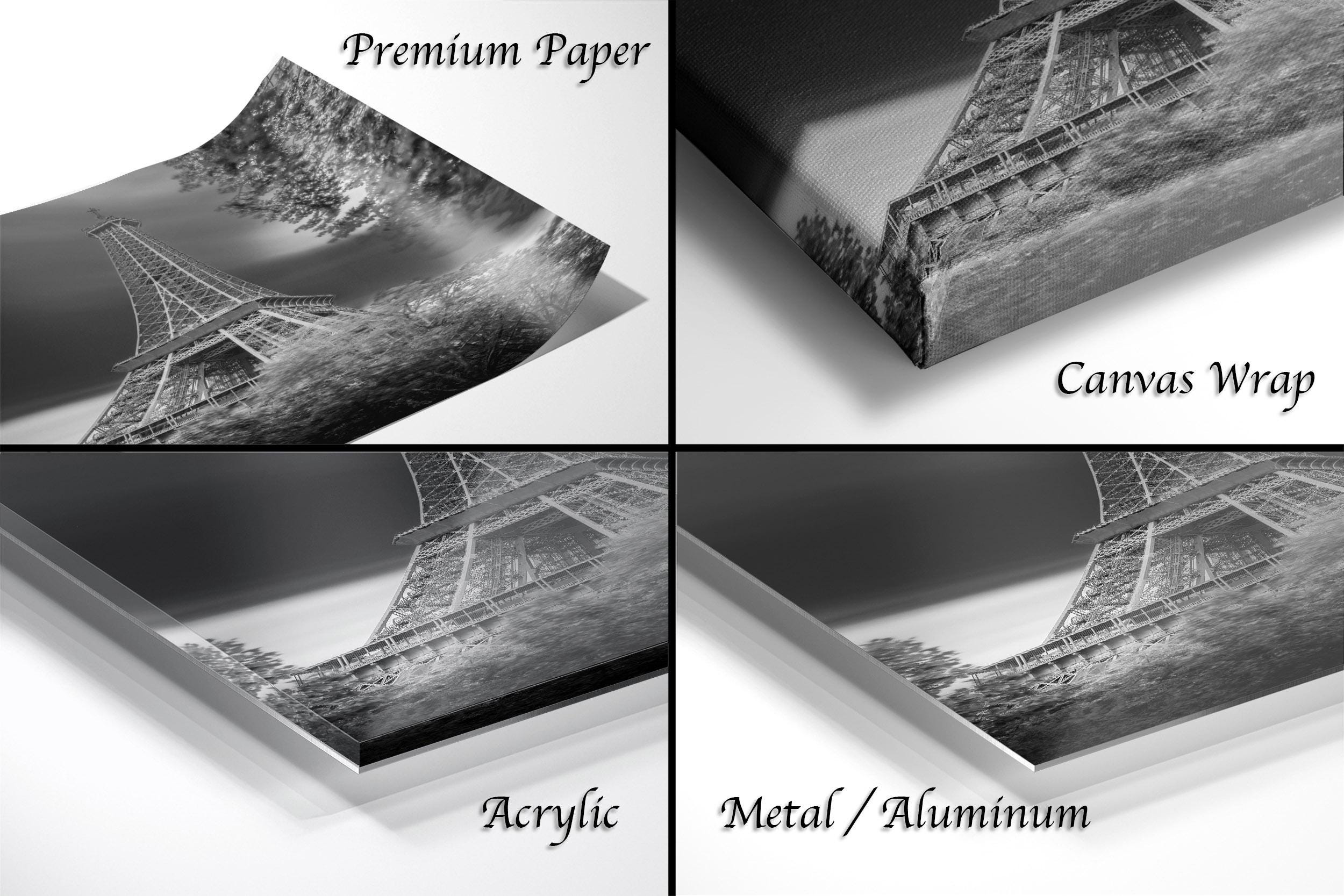 This large photography piece captures the iconic French landmark with a unique long exposure technique, offering a fresh perspective on one of the world’s most beloved symbols. Whether you're a lover of monochrome wall art or searching for the perfect gift for travelers, this fine art print blends urban travel decor with modern Paris artwork seamlessly.