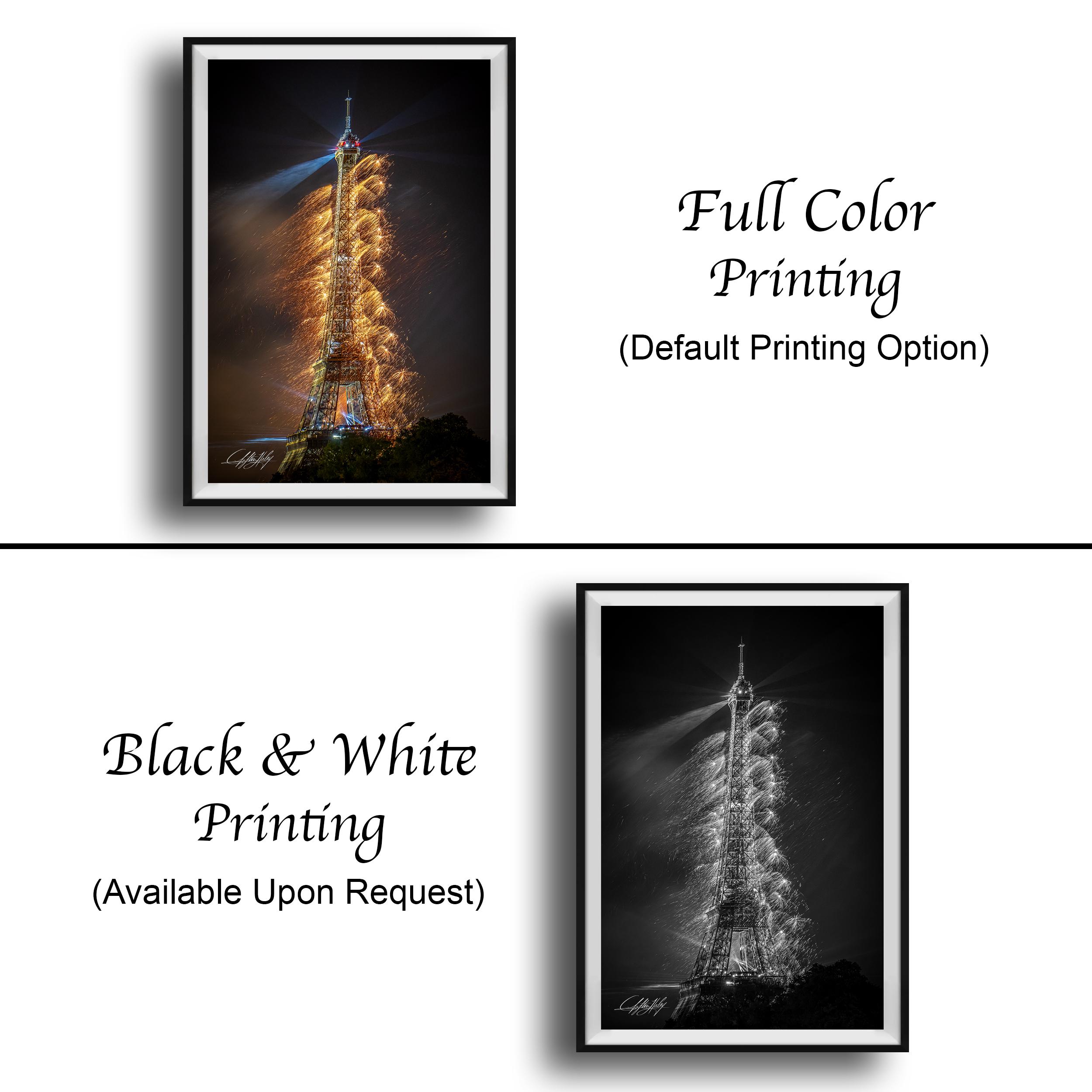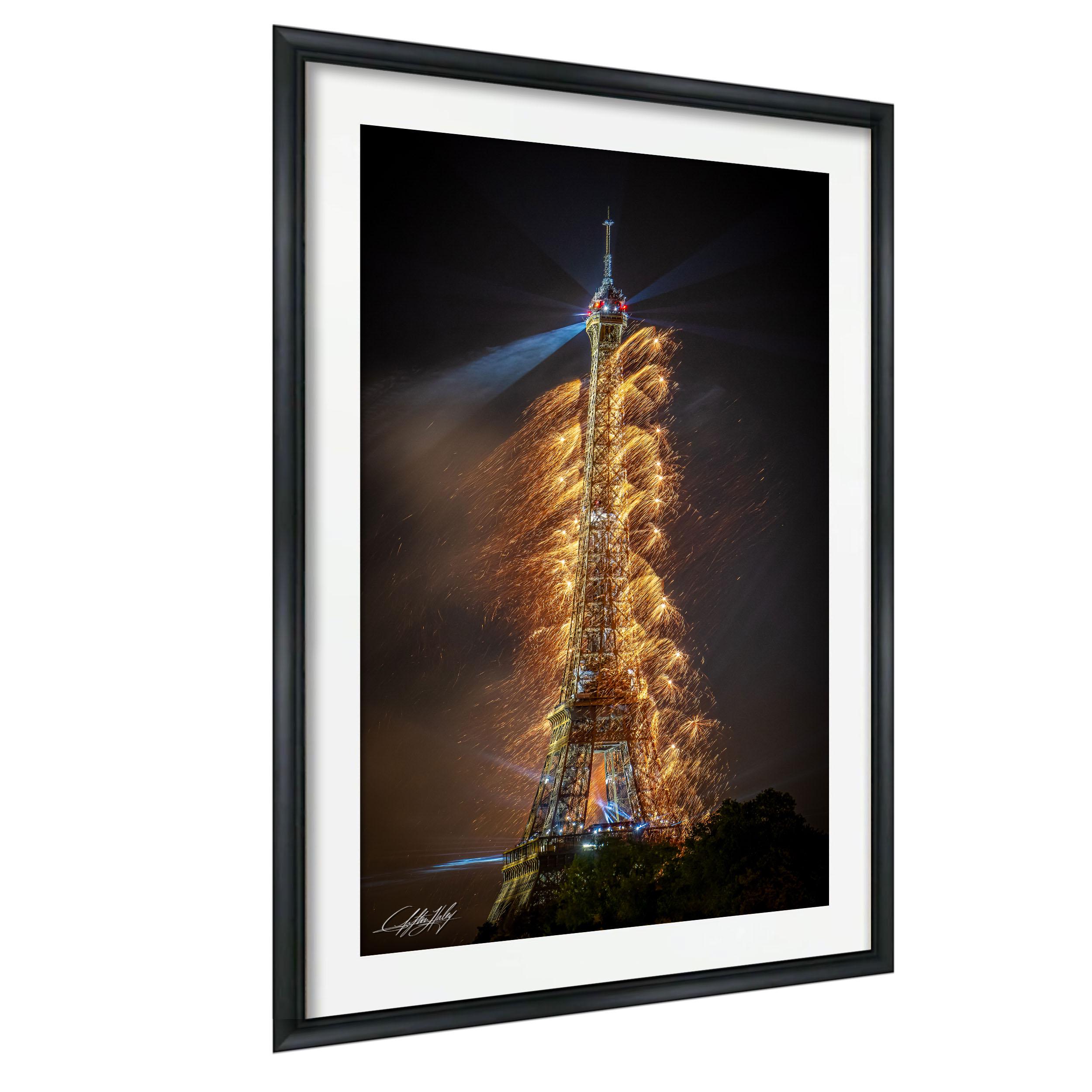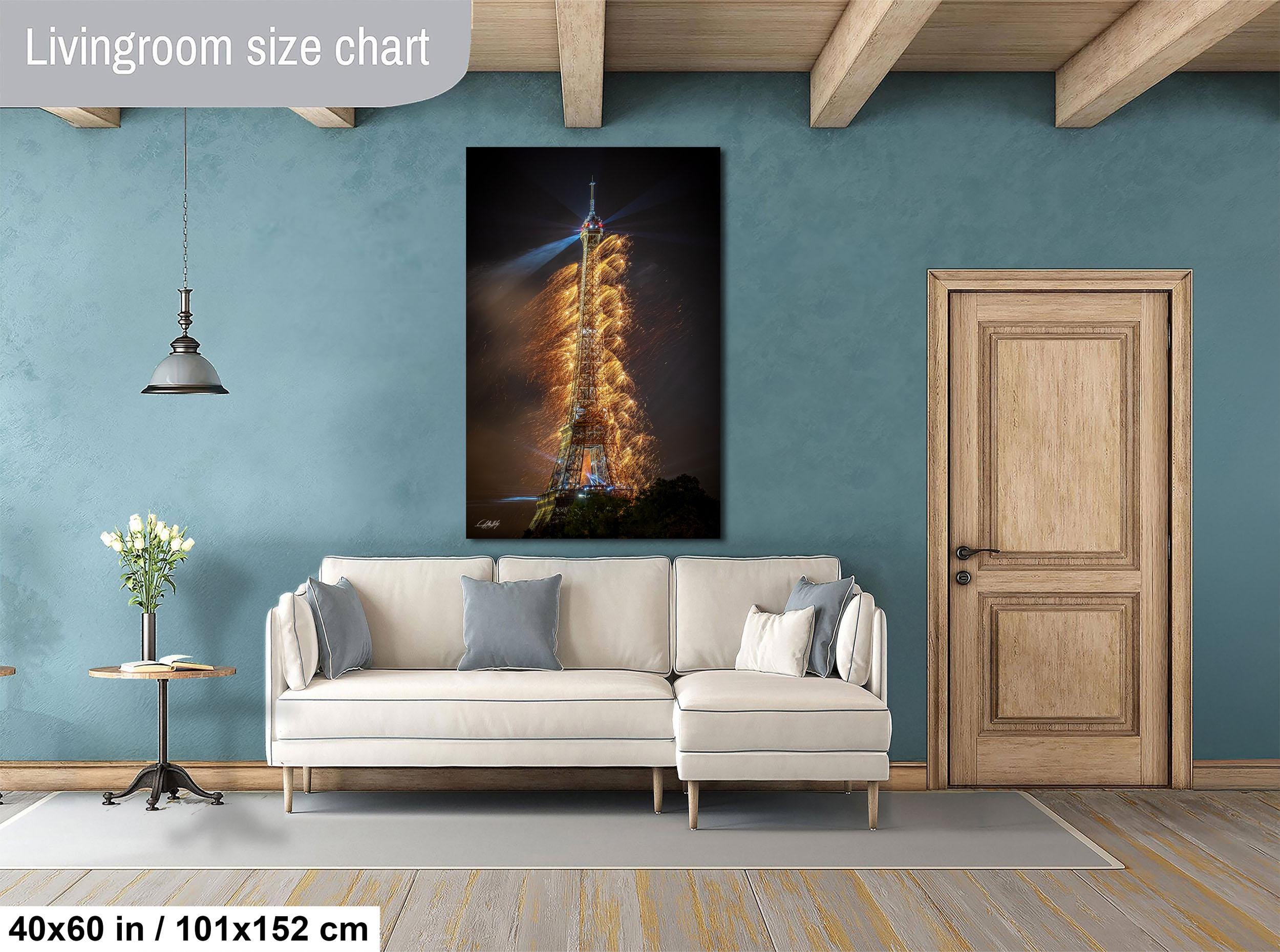 Celebrate your love for travel with this large format wall art that beautifully showcases a summer Paris scene. The fine art photography highlights the Eiffel Tower illuminated against dazzling Bastille Day fireworks, creating a unique travel poster that evokes cherished memories and wanderlust.