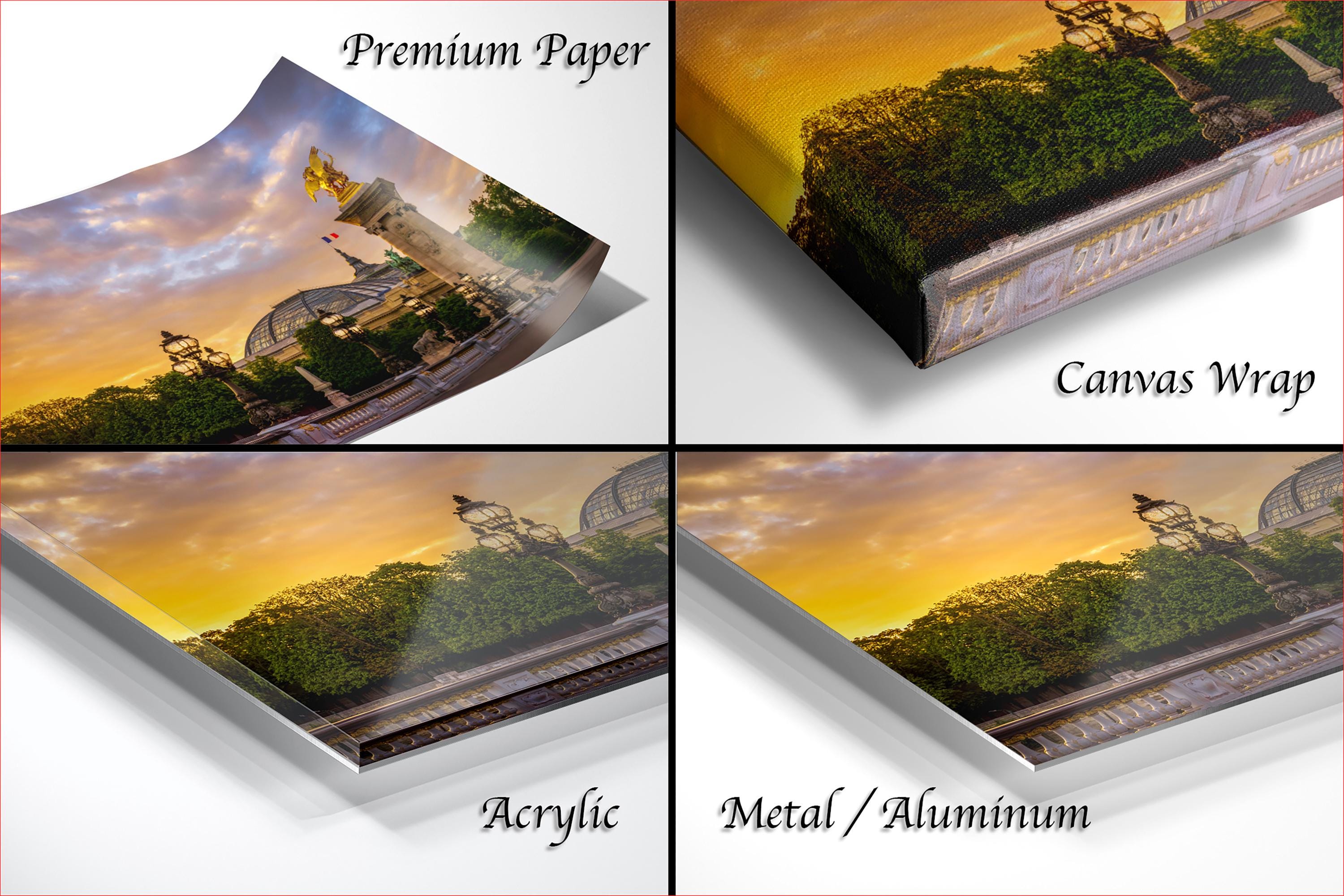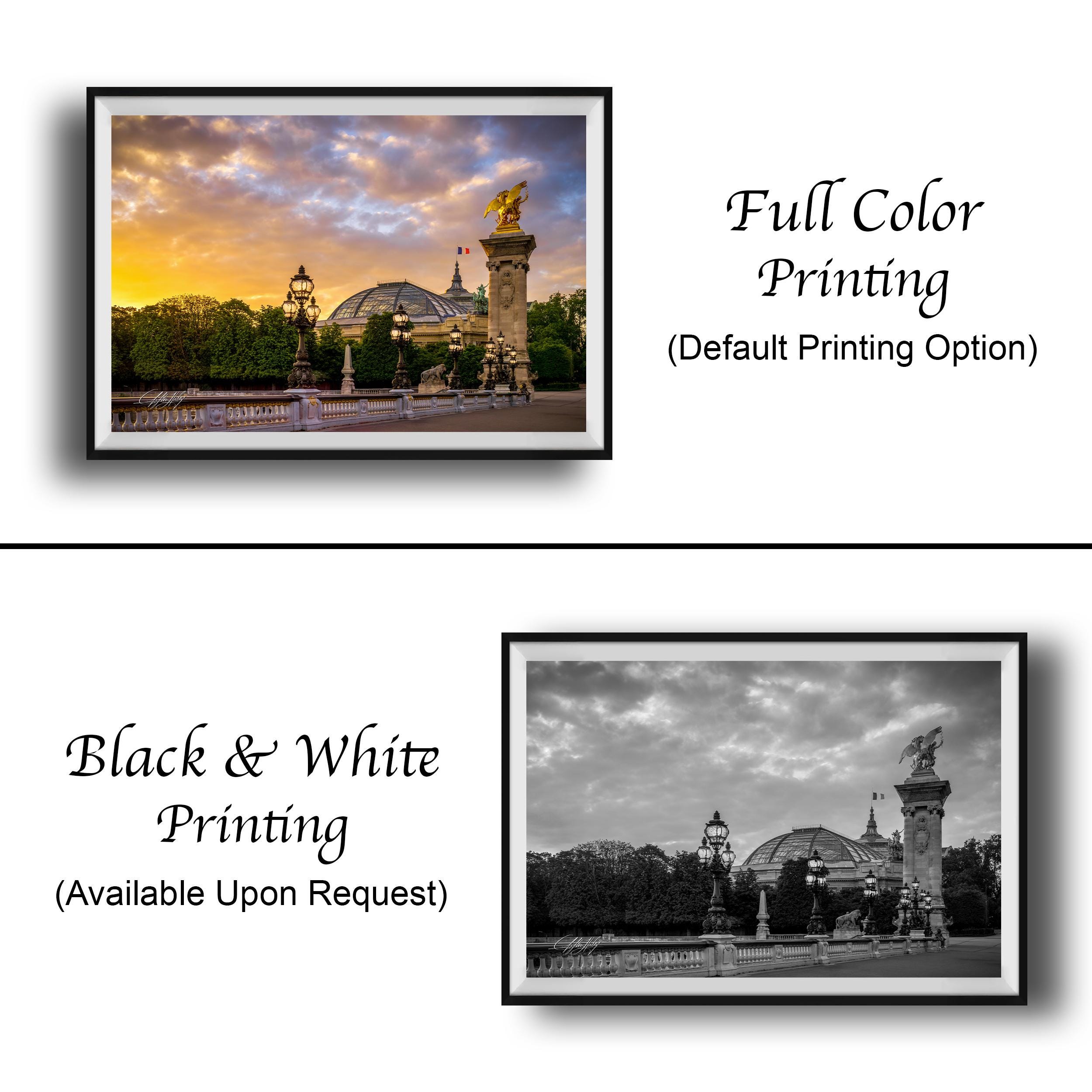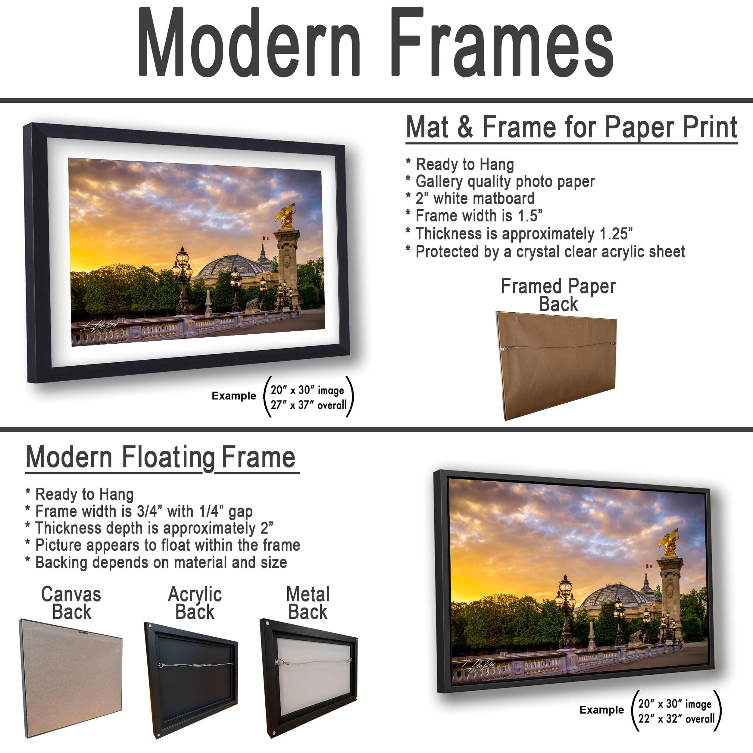 • Artist signed print authenticates each made to order art piece, ensuring uniqueness and personal connection. • Available in multiple formats: framed paper prints, acrylics, aluminum/metal prints with a 2" white mat border, or canvas prints with flush mounting. • Dimensions and customization options available upon request to perfectly fit your gallery wall or living space. • Ideal as elegant French decor or a sunset cityscape art addition that inspires wanderlust and beauty.