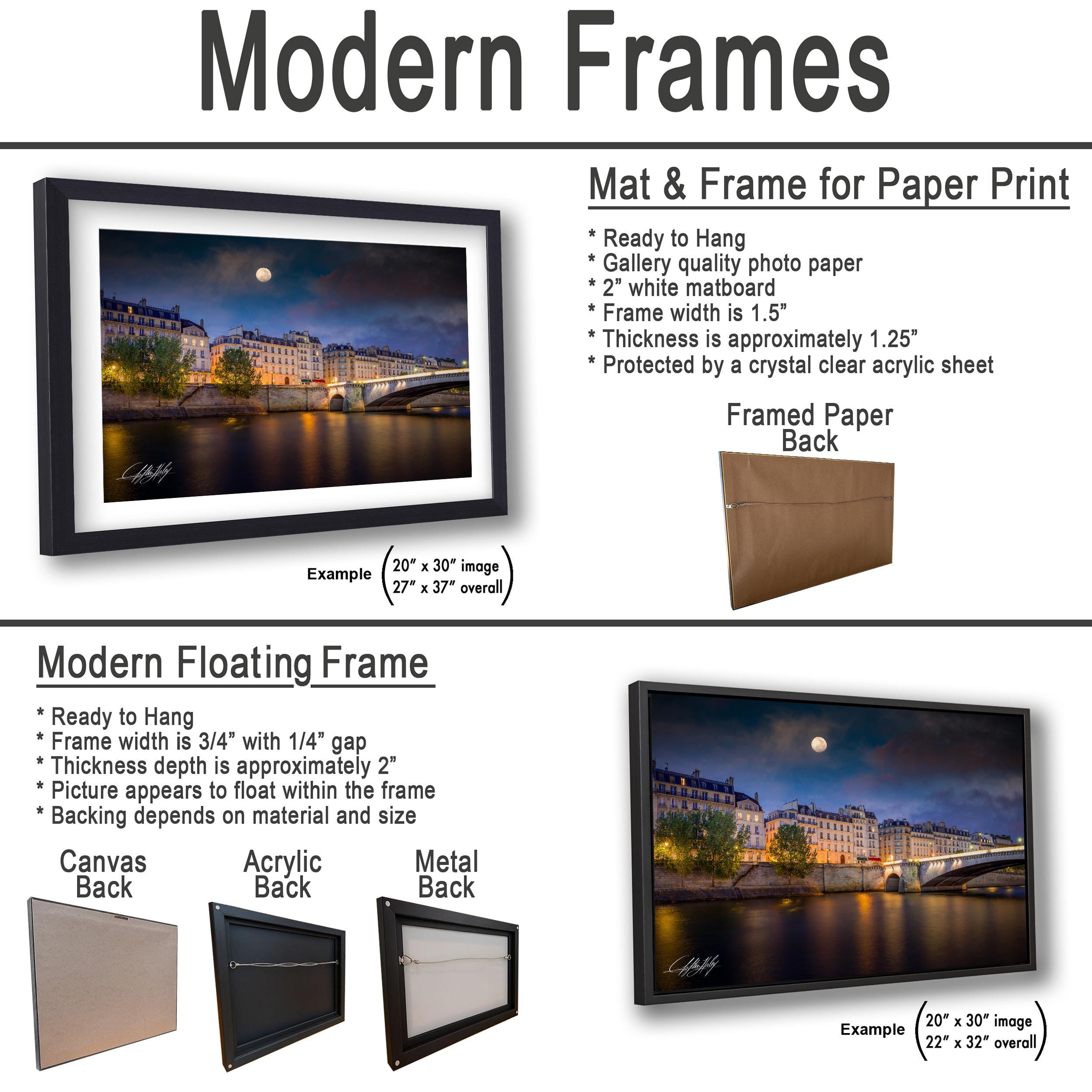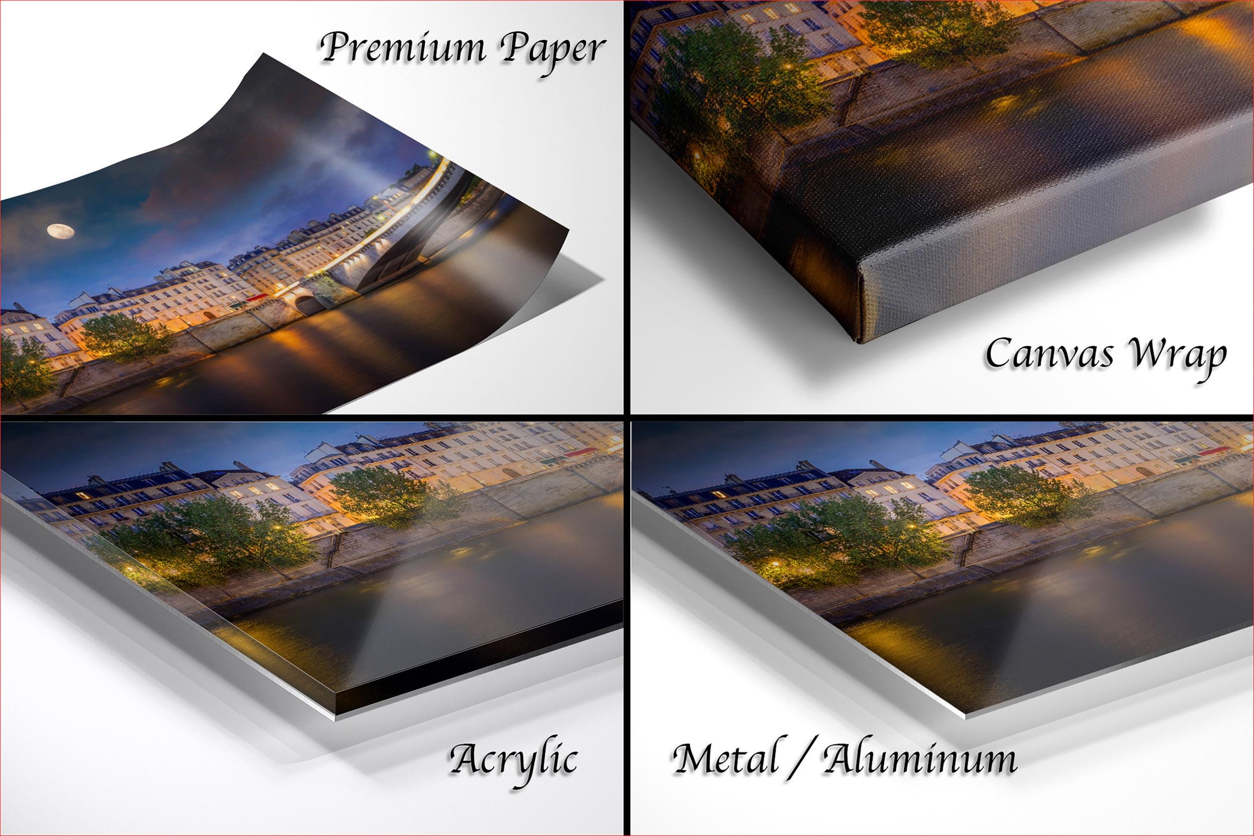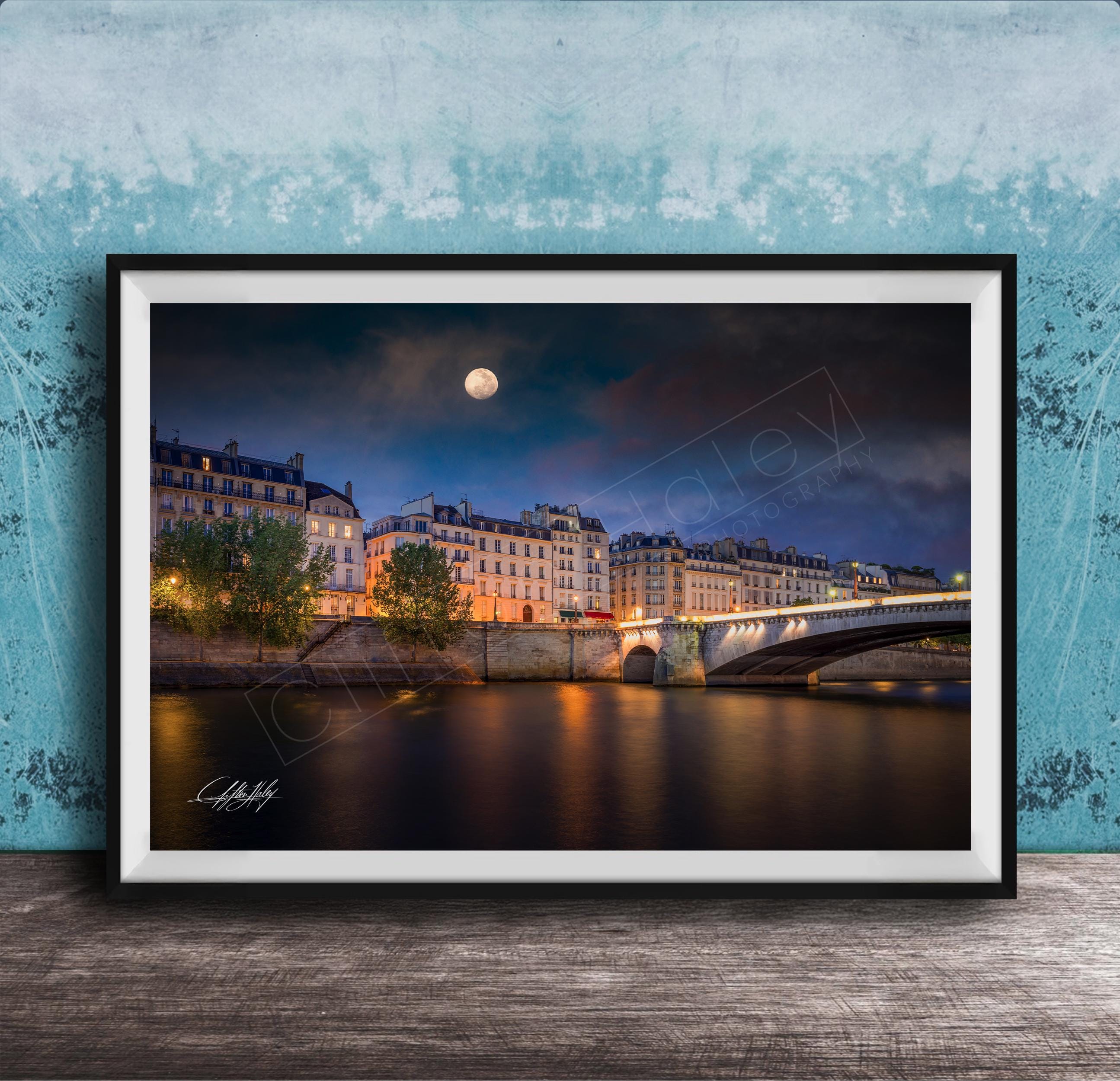 Celebrate the allure of Paris with this exceptional travel decor that captures a fleeting moment of harmony between history and nature. Whether displayed in your living room, office, or gallery wall, this fine art photograph invites you to dream of moonlit strolls along the Seine.