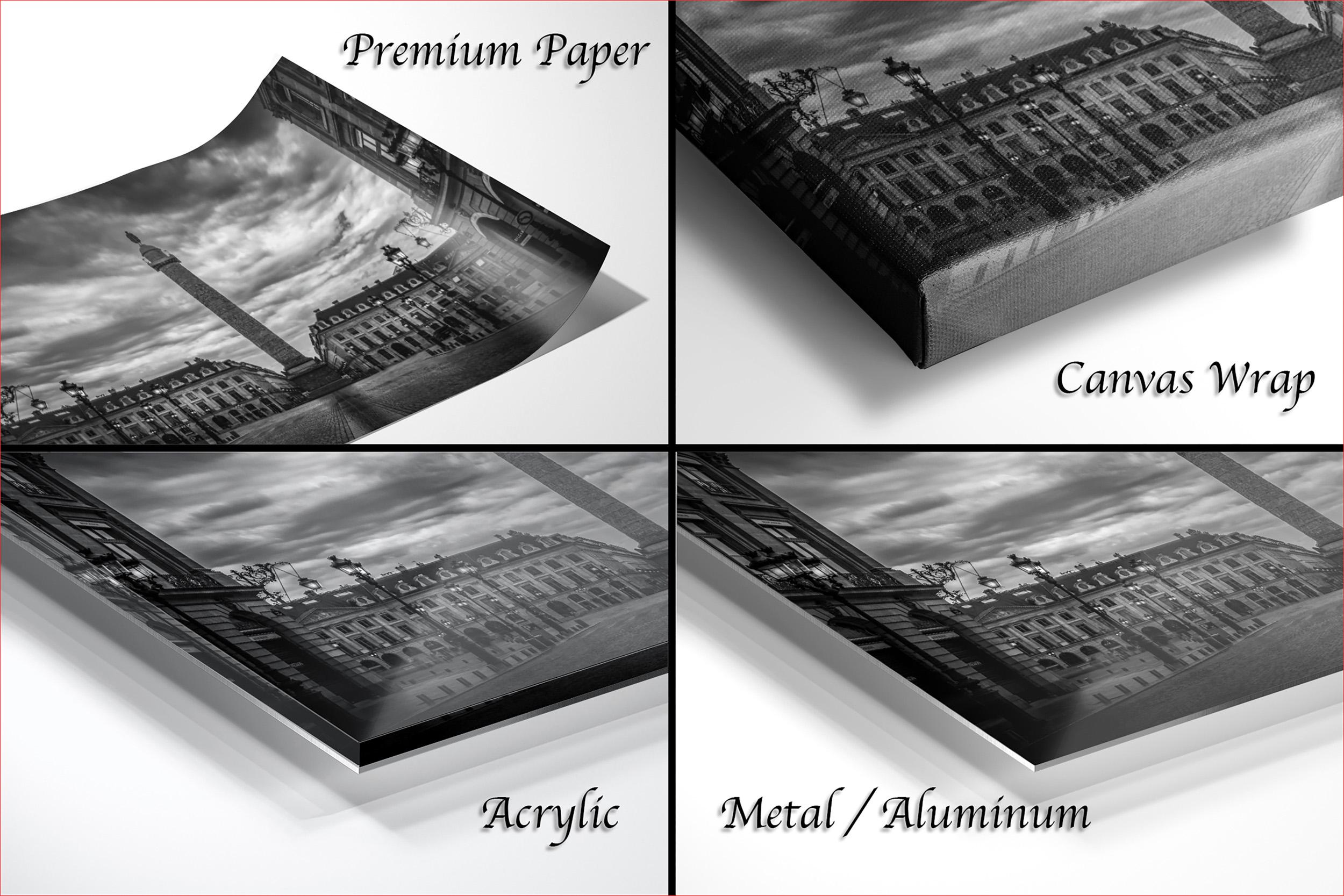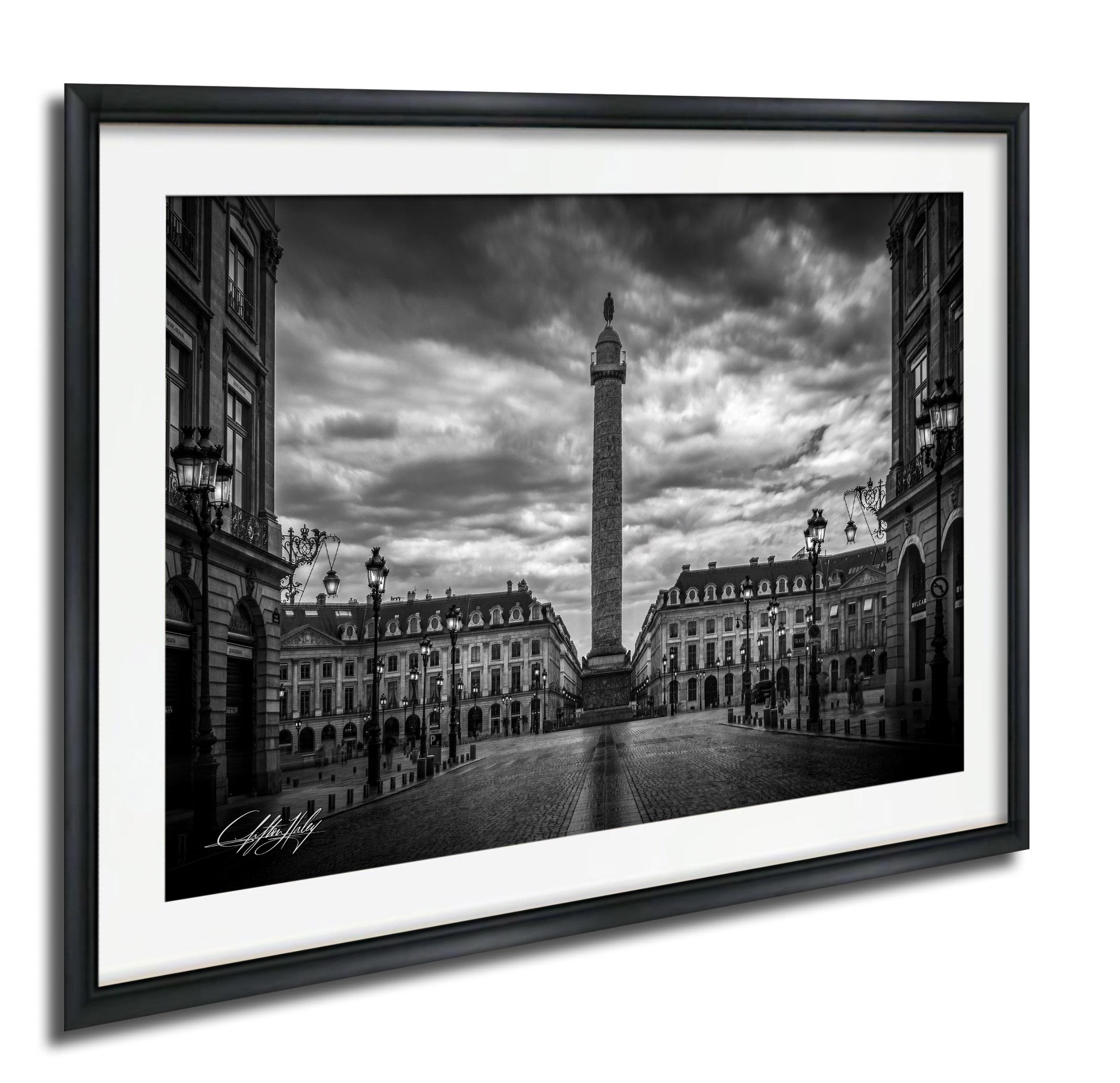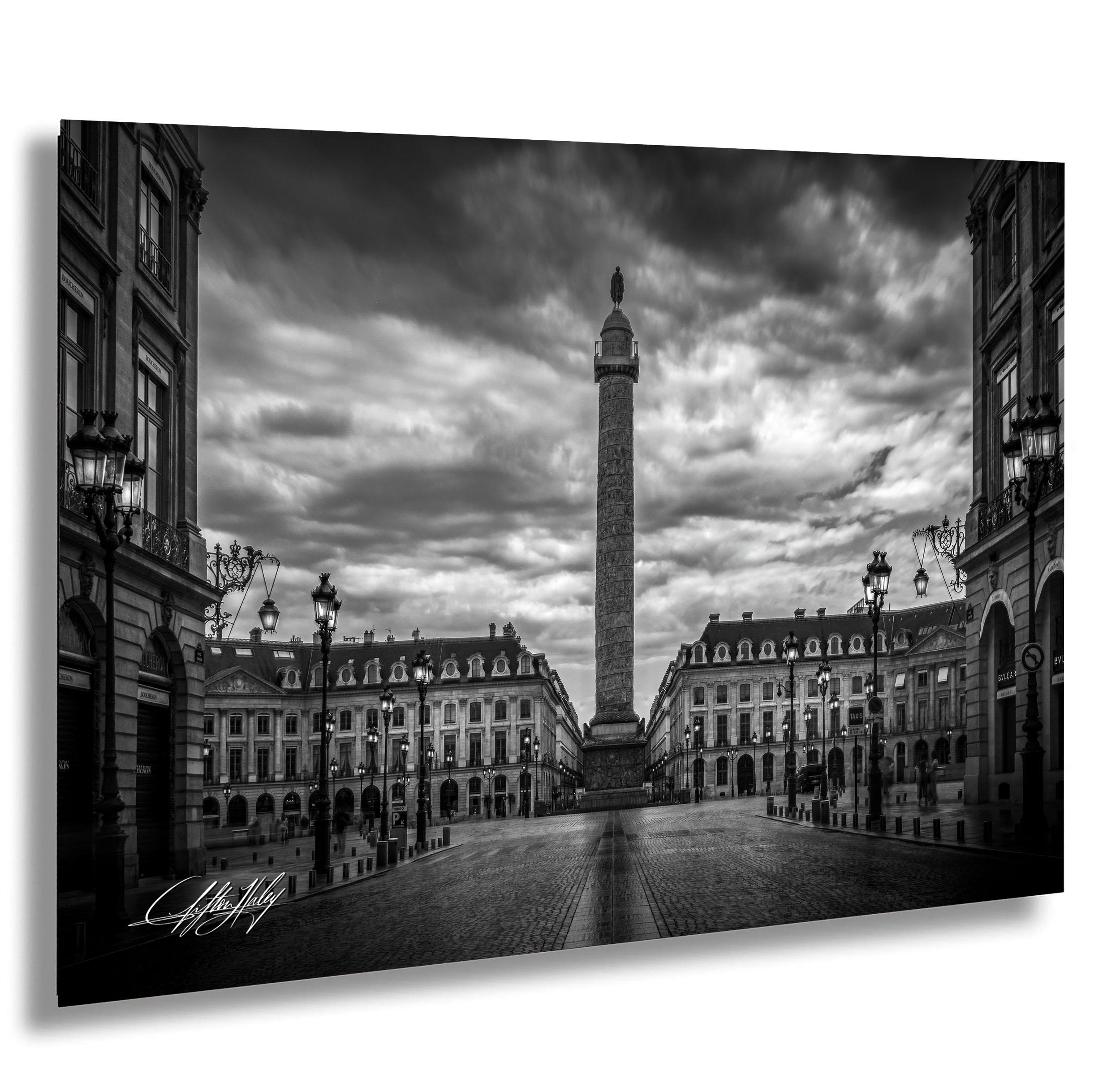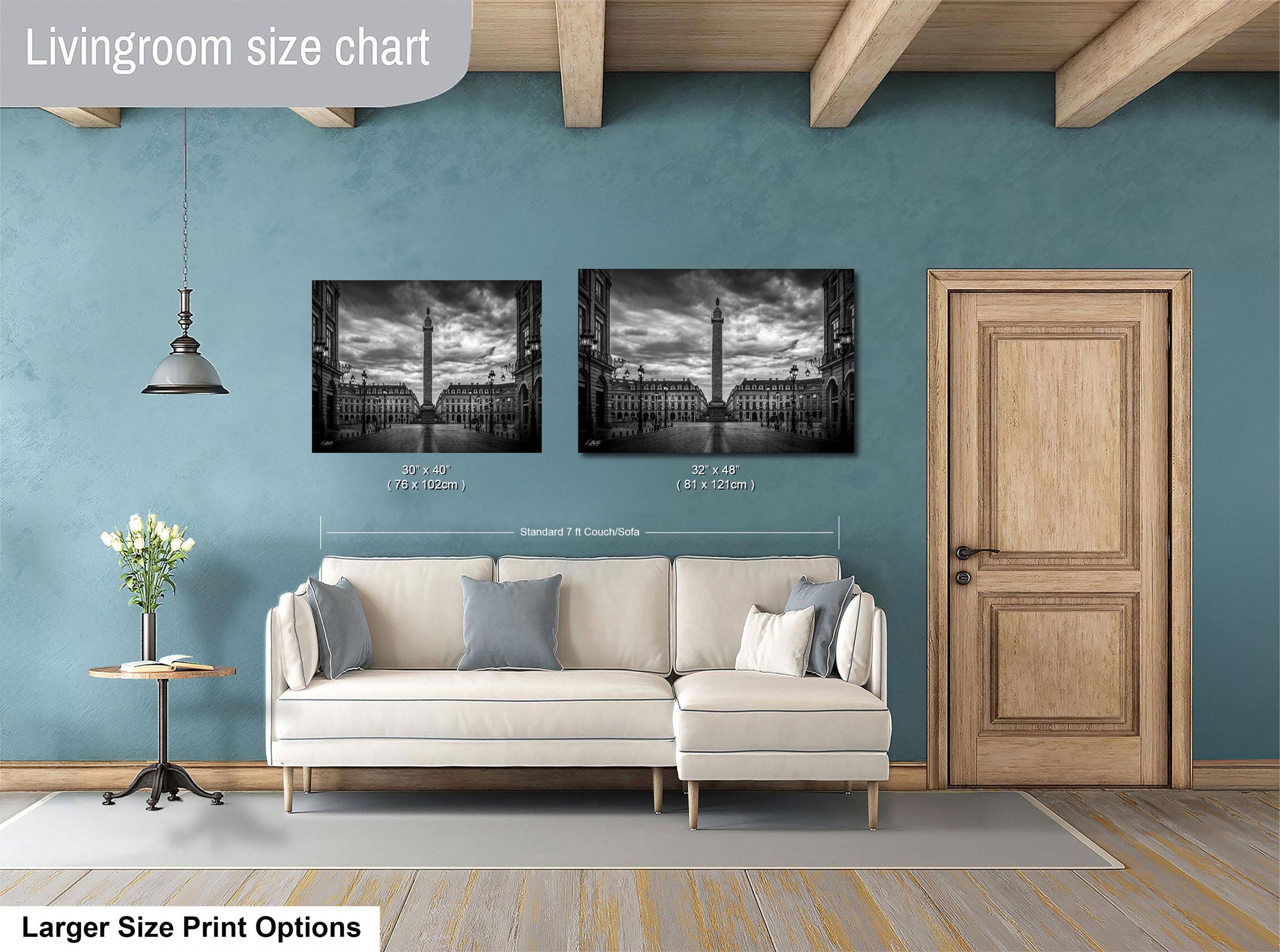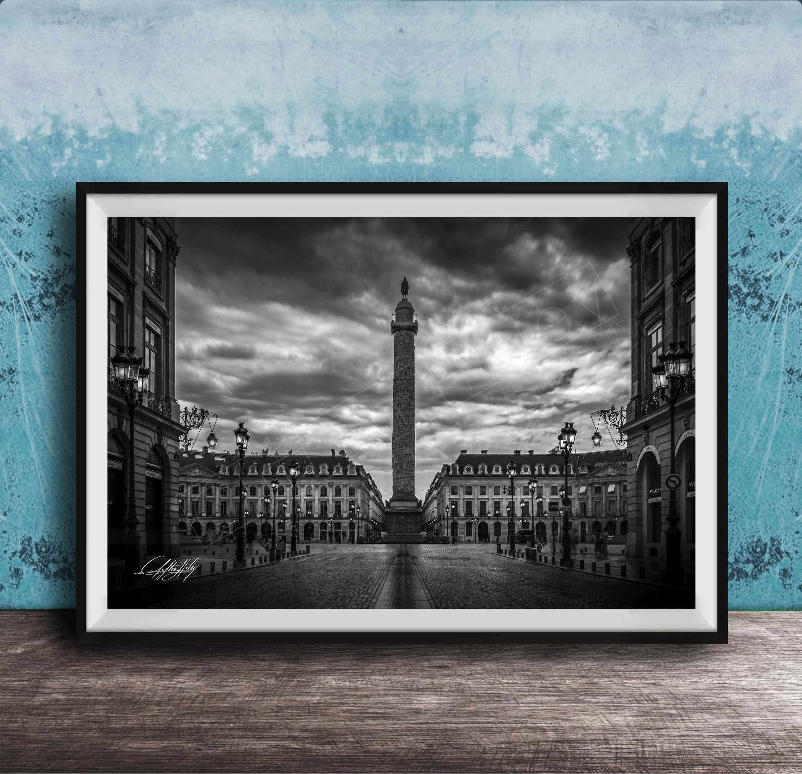 Place Vendôme Paris wall art captures the timeless elegance of one of the city's most iconic landmarks through striking black and white photography. This fine art print brings a sophisticated Parisian wall art vibe to your space, perfect for lovers of travel poster art and historic Paris photos.