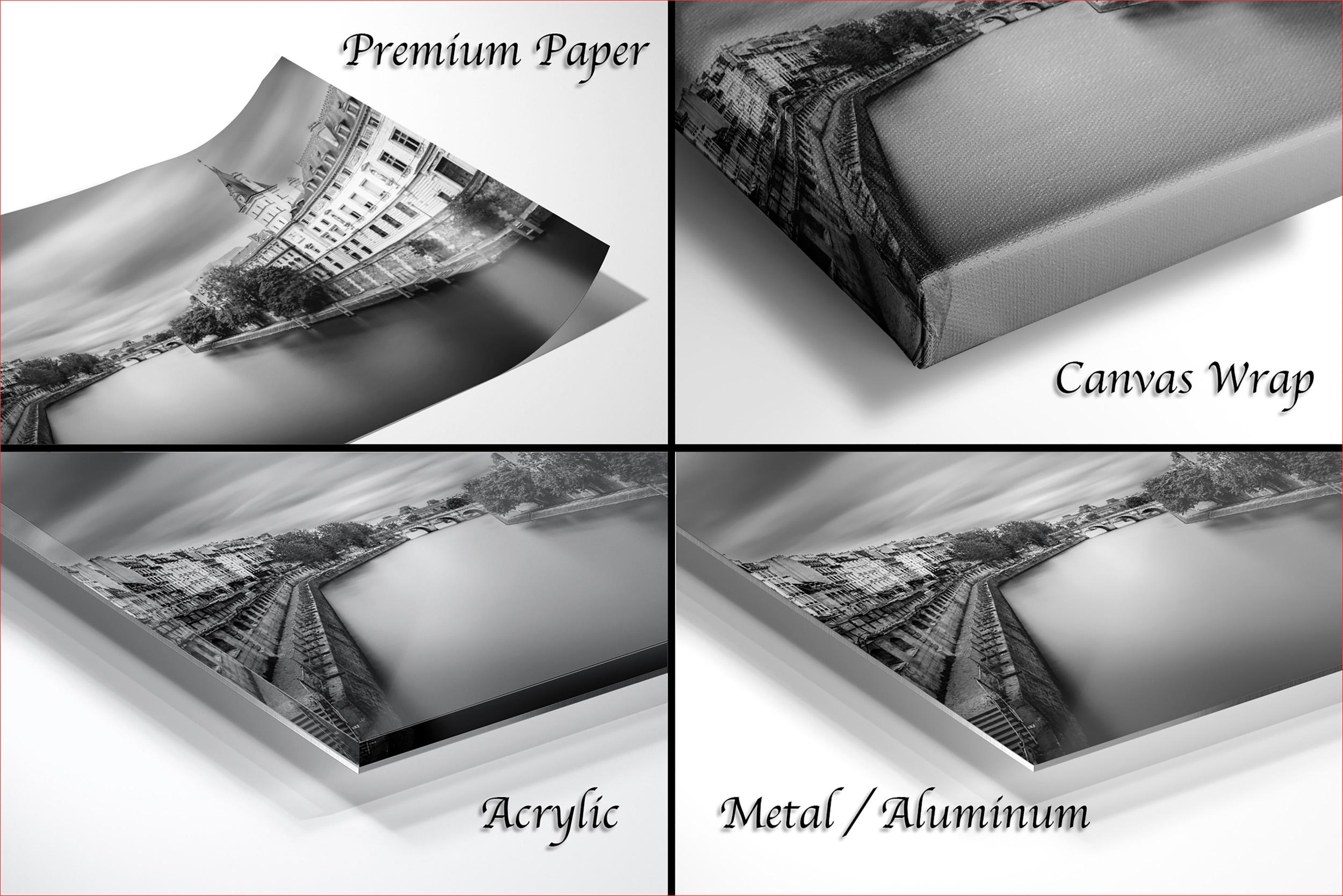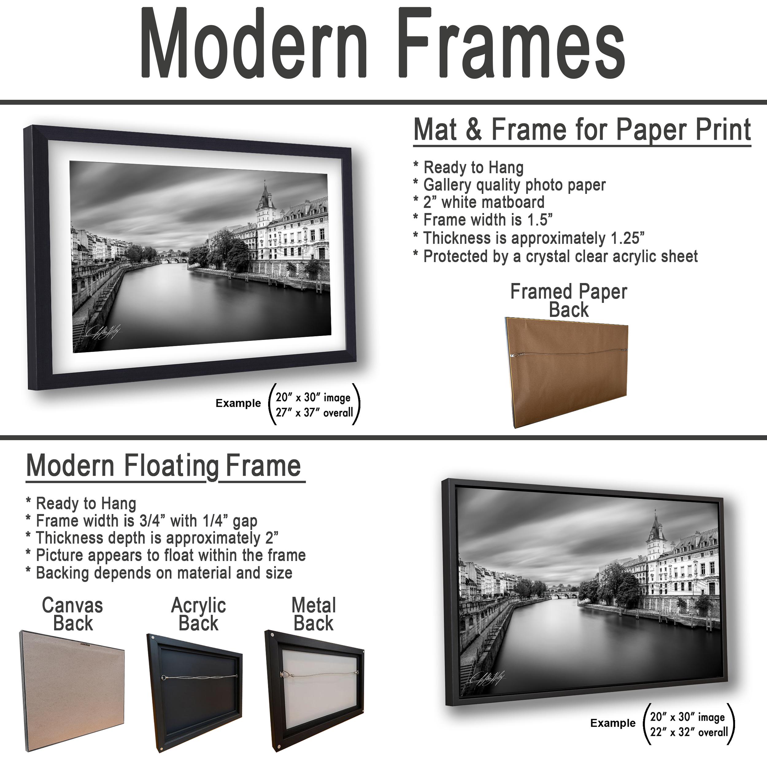Each piece is custom-made to order, ensuring you receive a unique photography print signed by the artist for authenticity. Choose from framed paper prints with a 2" white mat border, acrylics, aluminum/metal prints, or flush-mounted canvas prints to match your space perfectly.