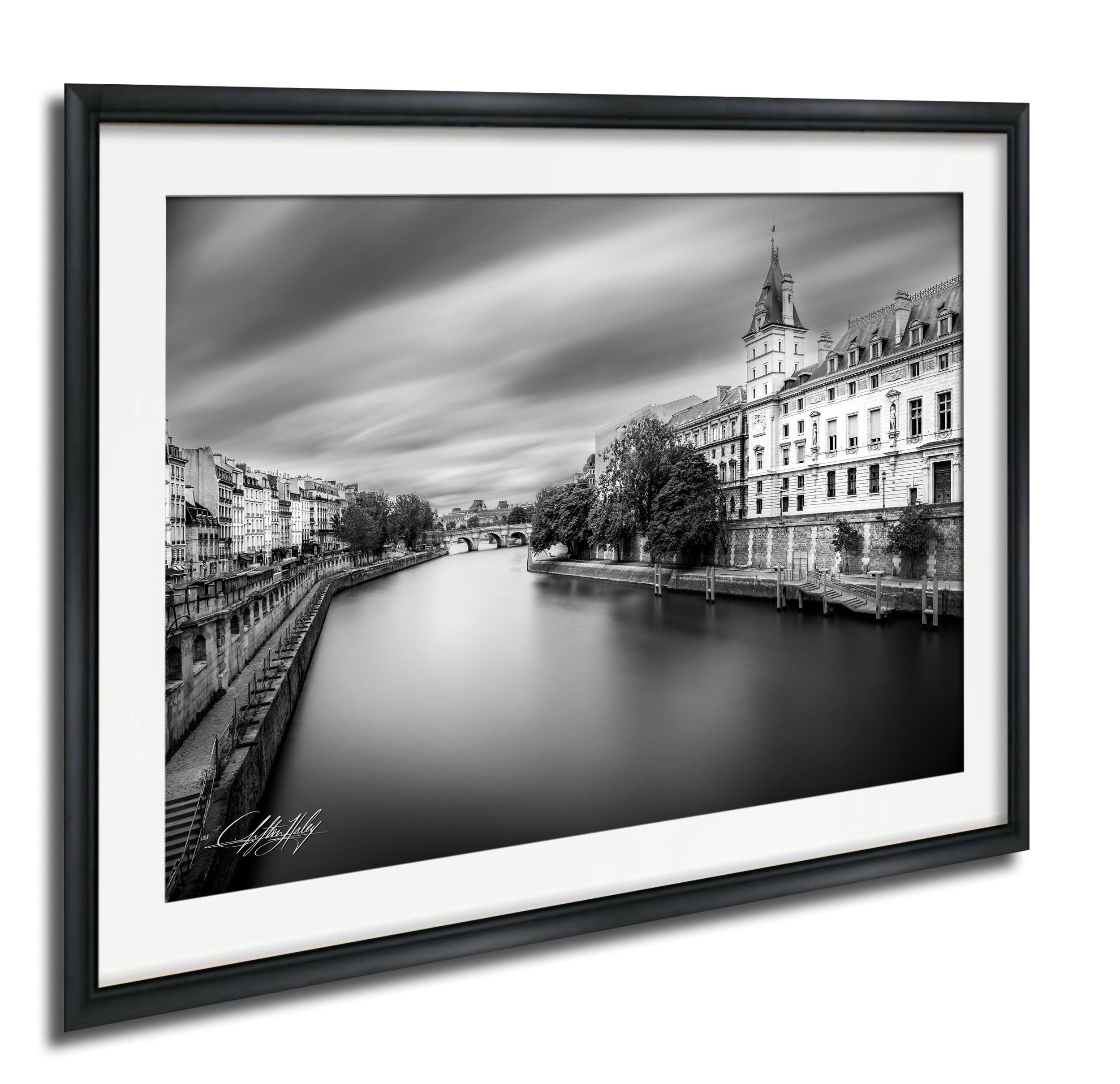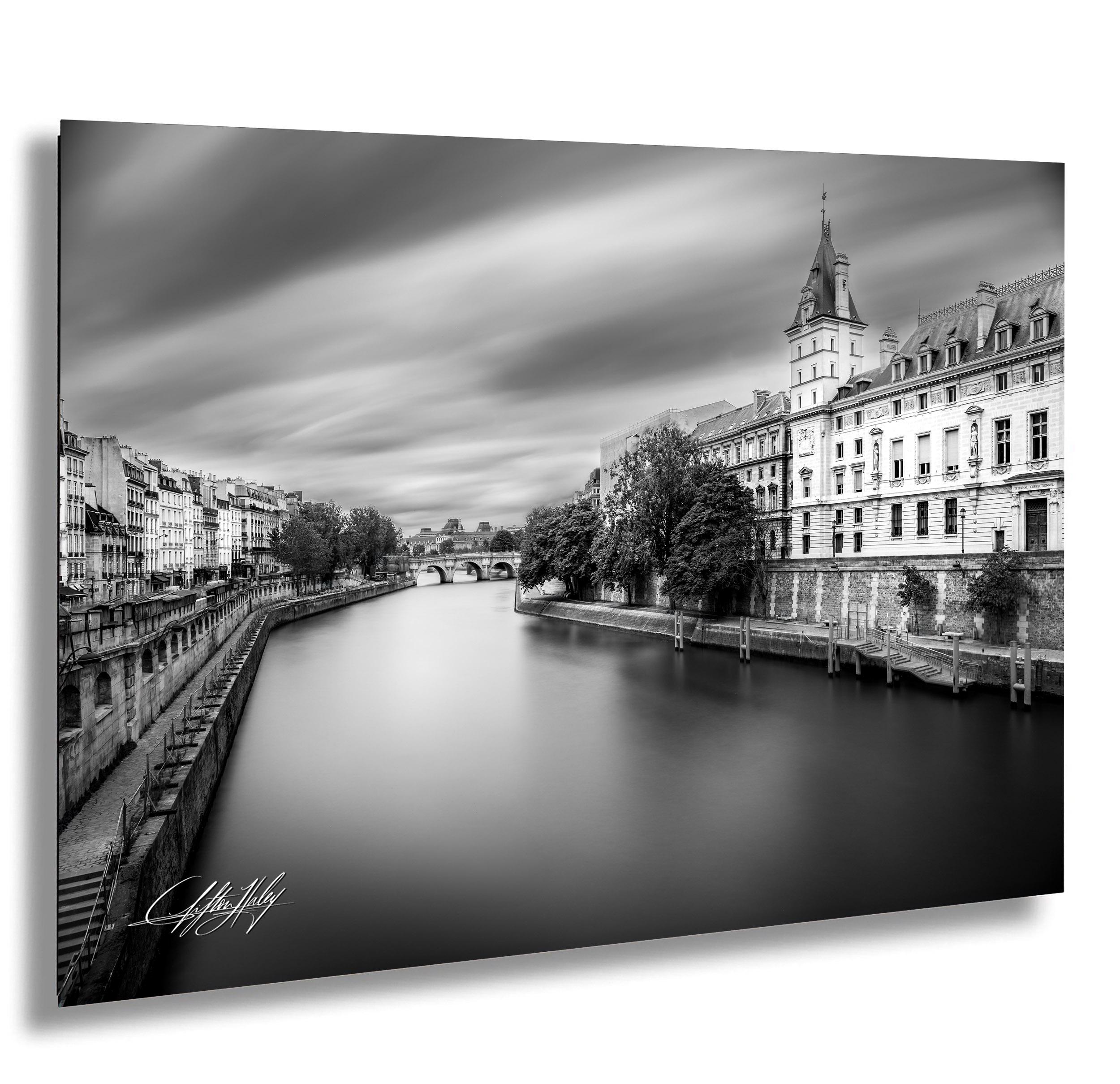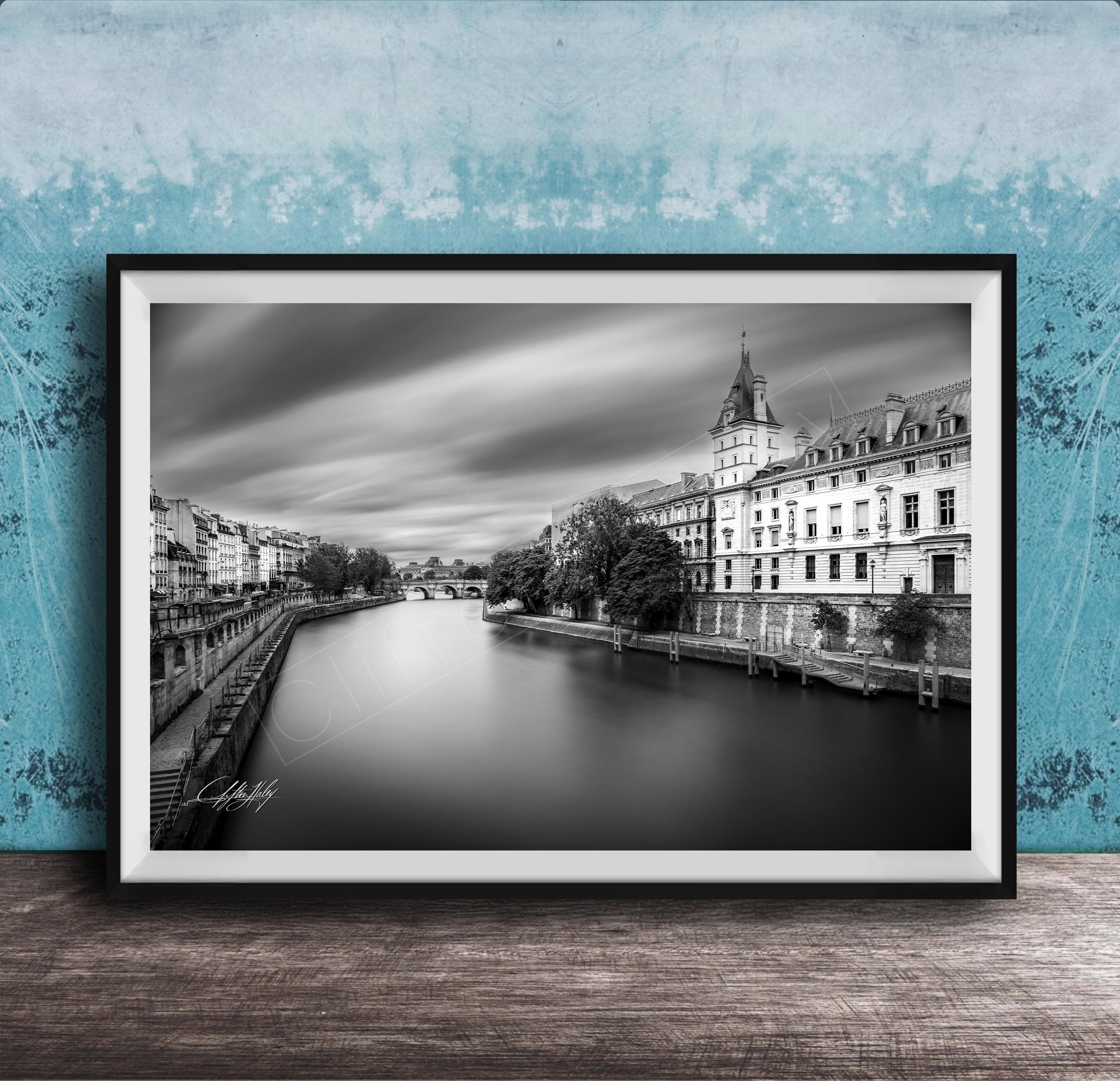This exquisite printable decor showcases a unique long exposure photograph of the Tribunal Correctionnel de Paris alongside the serene Seine River, blending historic grandeur with contemporary style. The black and white tones emphasize the architectural details, making it a perfect addition to any Paris decor collection.