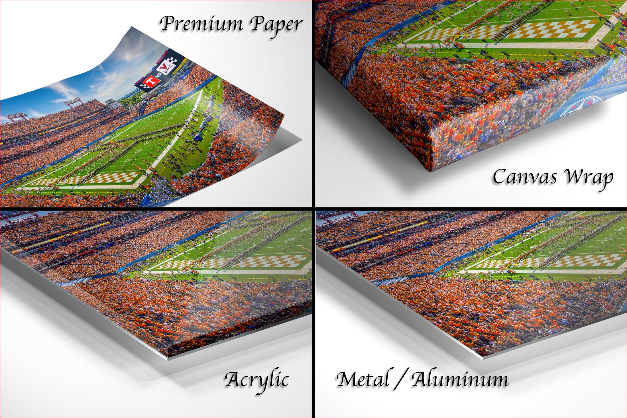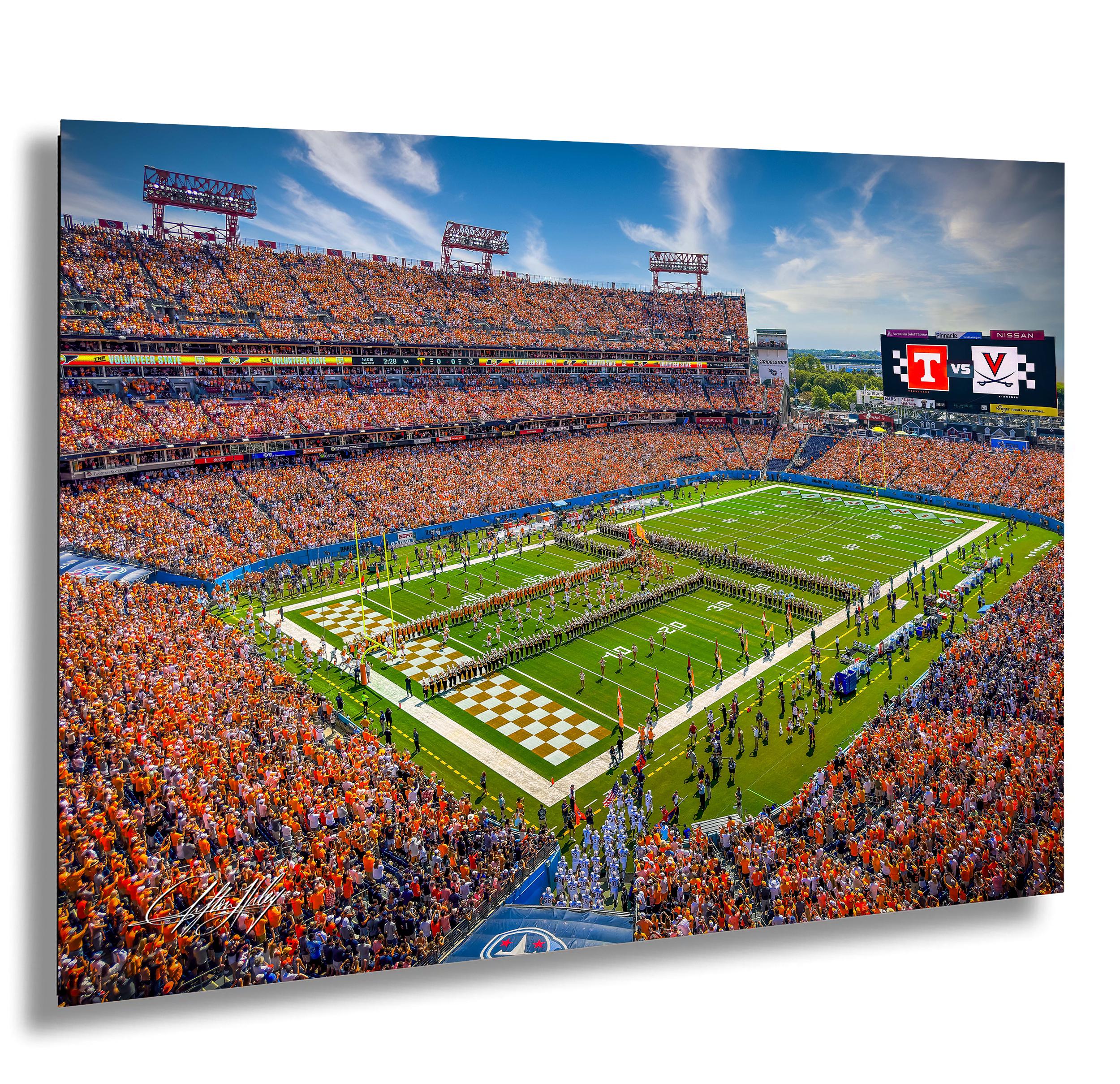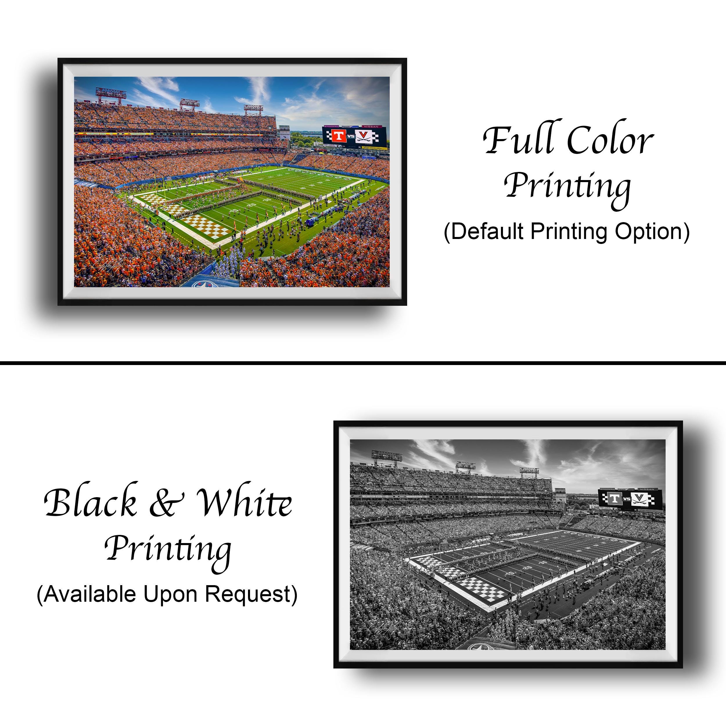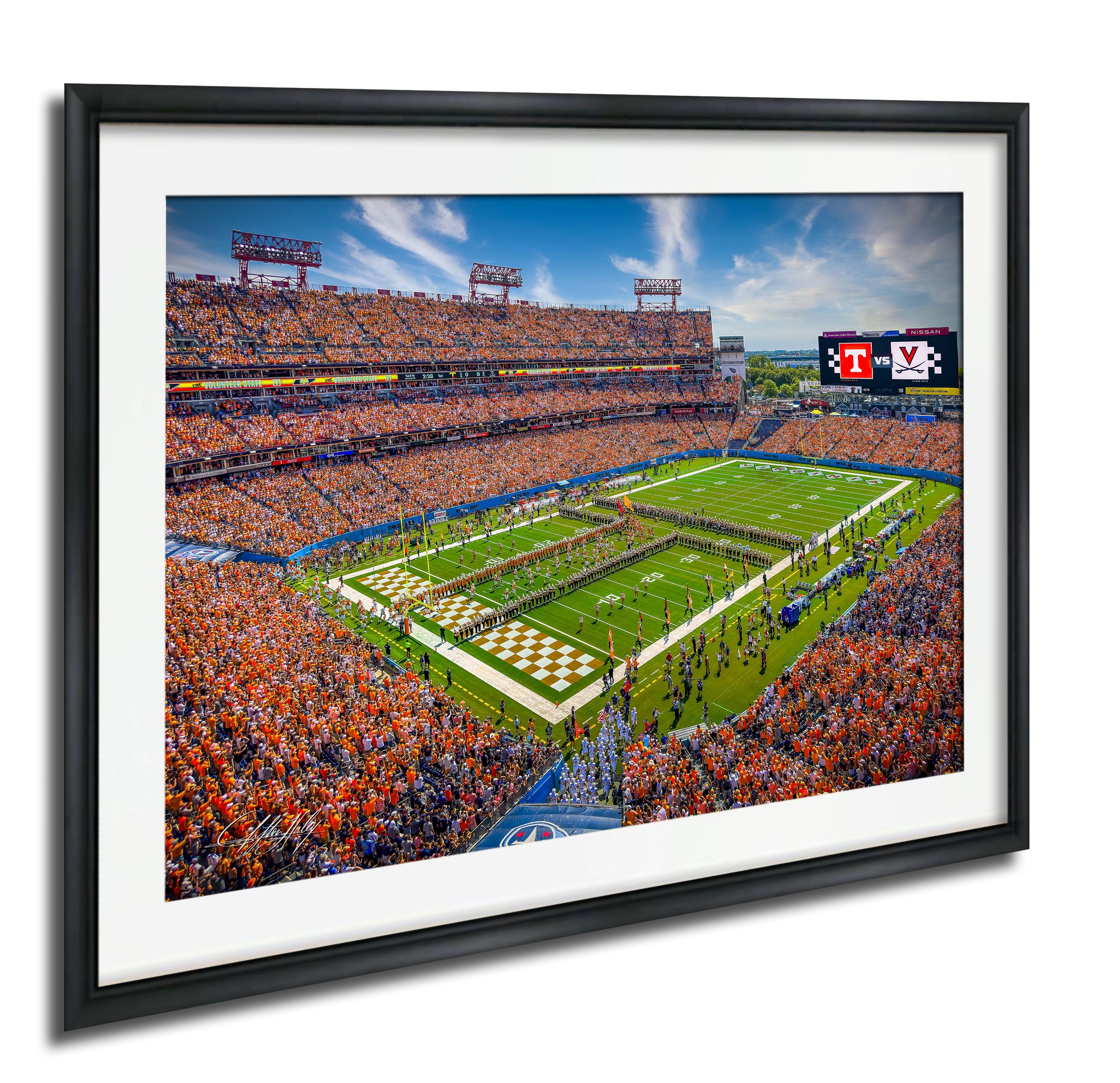 - Meticulously crafted custom fine art print showcasing key moments from the Tennessee vs Virginia game - Available as framed paper prints with a 2" white mat border or canvas prints with flush mounting - Features artist’s signature for authenticity and a personal touch - Captures special teams play and iconic third quarter scores for an immersive fan experience