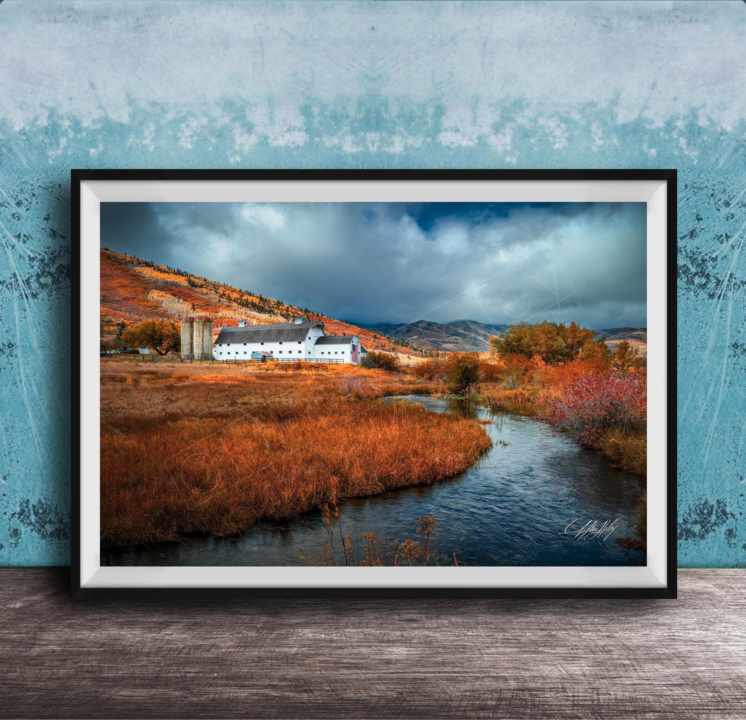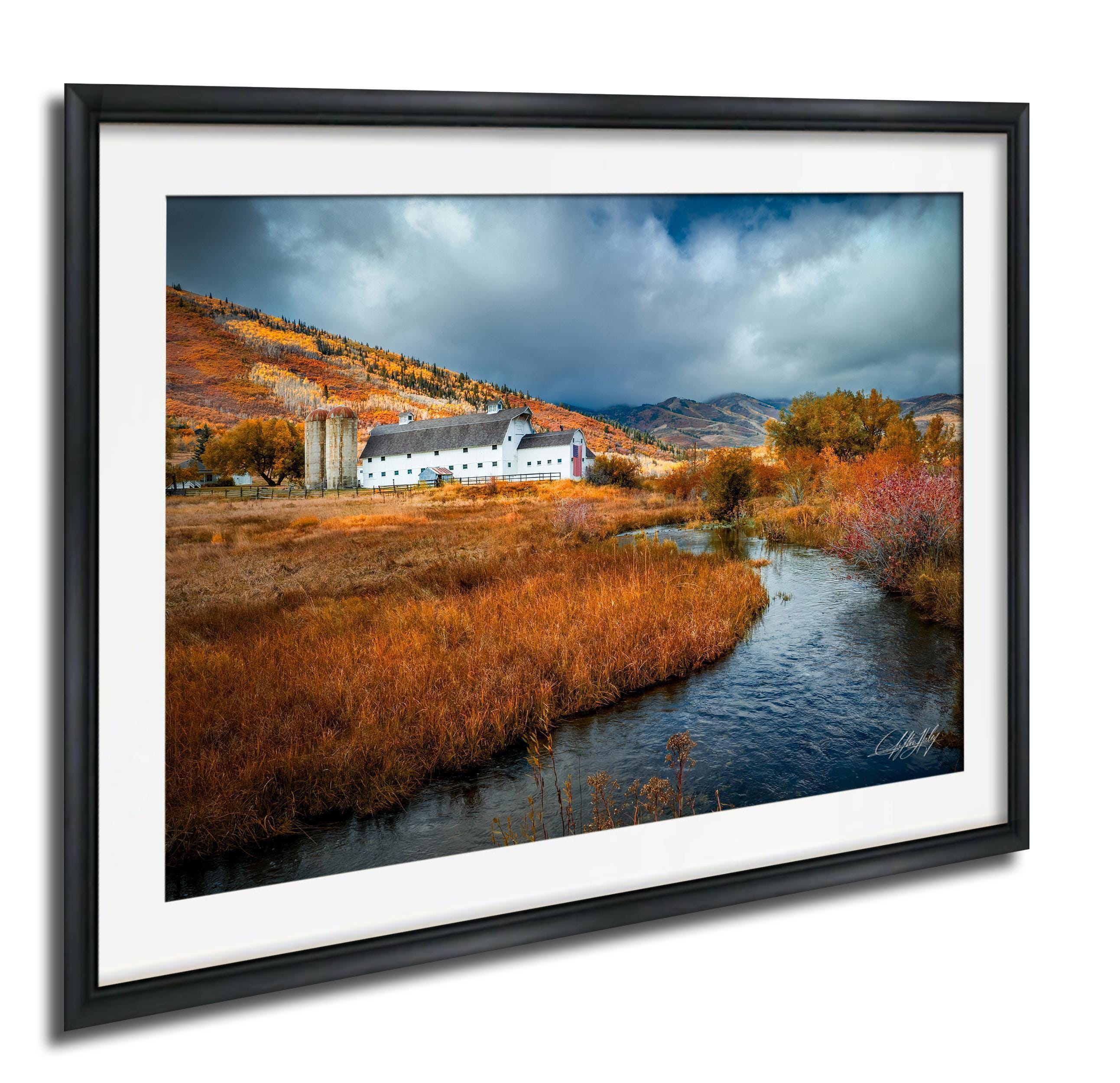 - ✅ Features a high-quality fine art print showcasing the McPolin Farmstead Barn and surrounding autumn aspens