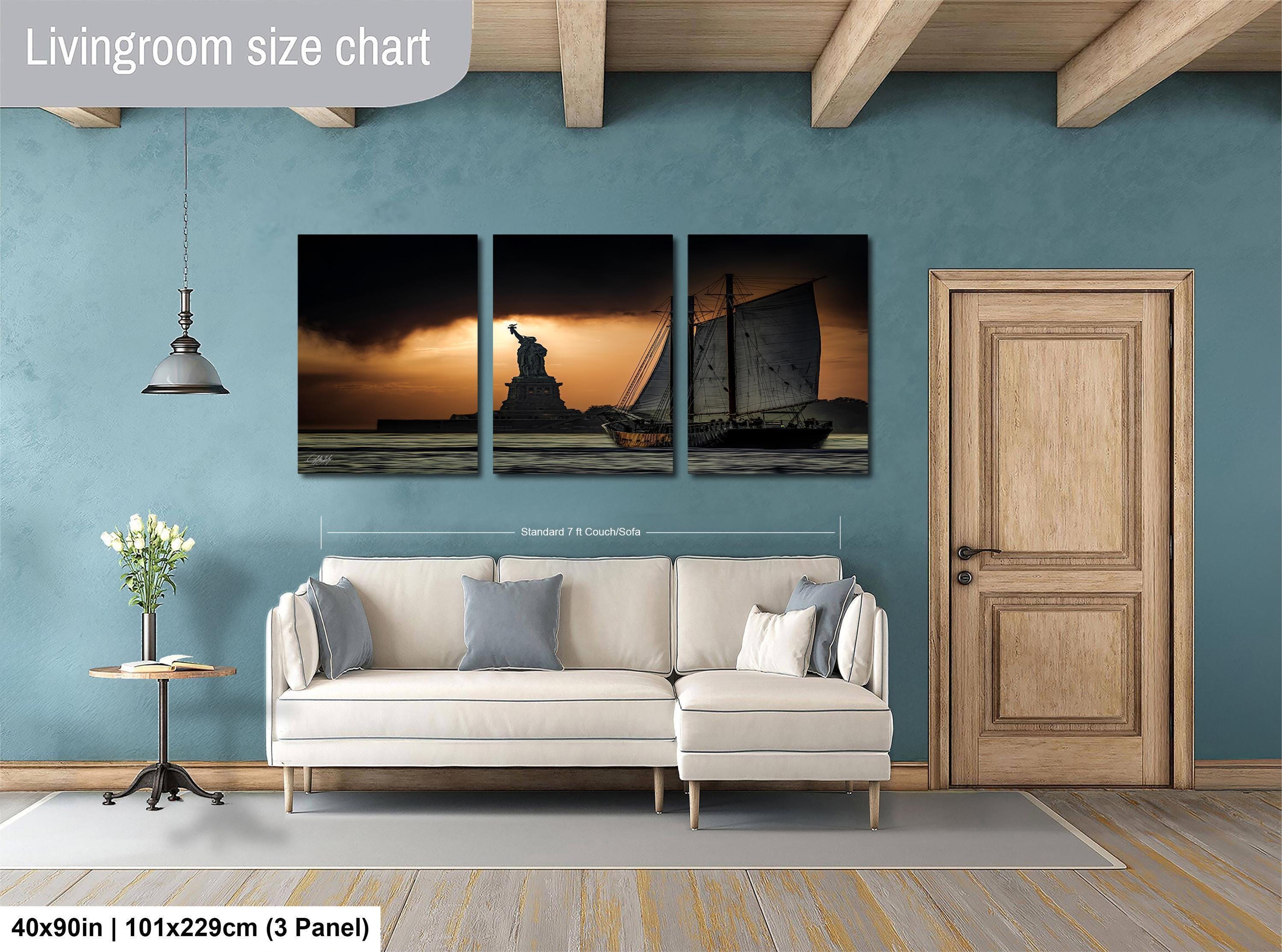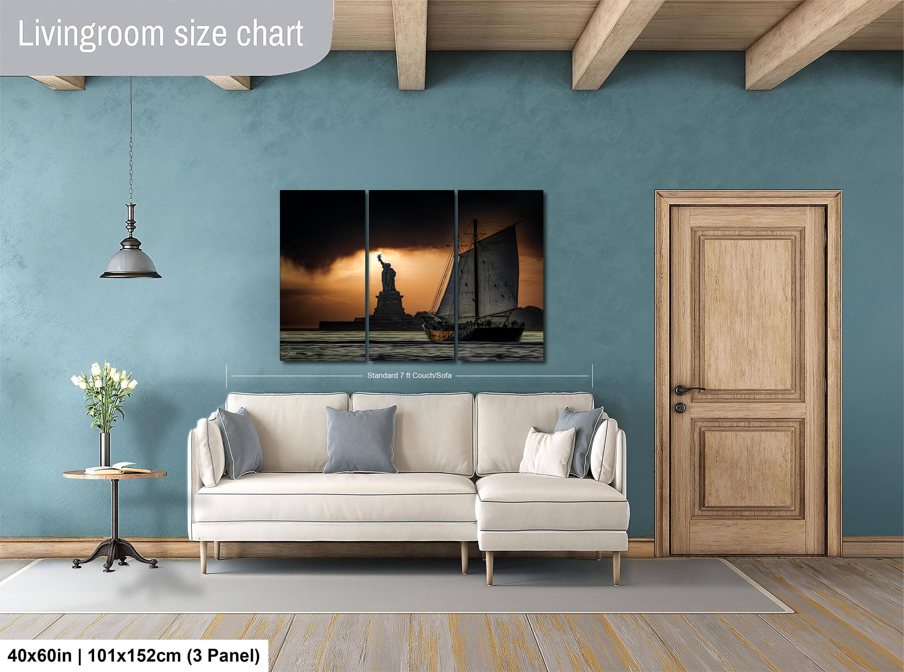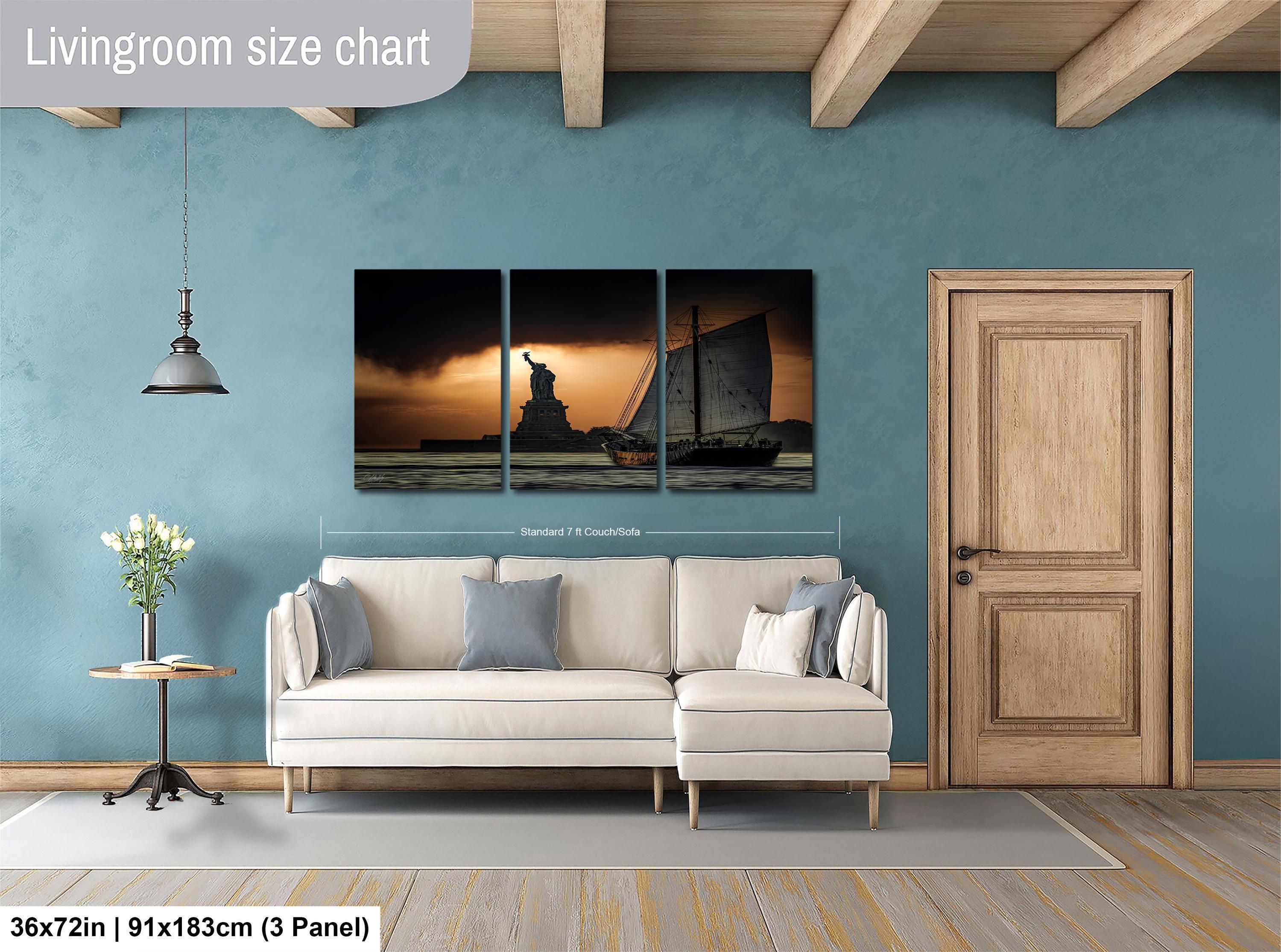 Add a touch of New York City charm to your space with this bold “Lady by the Door” Statue of Liberty wall art. Blending vintage pop art with maritime flair, it features Lady Liberty aglow in sunset light, a sailboat drifting by, and a detailed NYC map backdrop. Ideal for fans of urban art, nautical scenes, or midcentury decor, this print brings the spirit of the city to life.