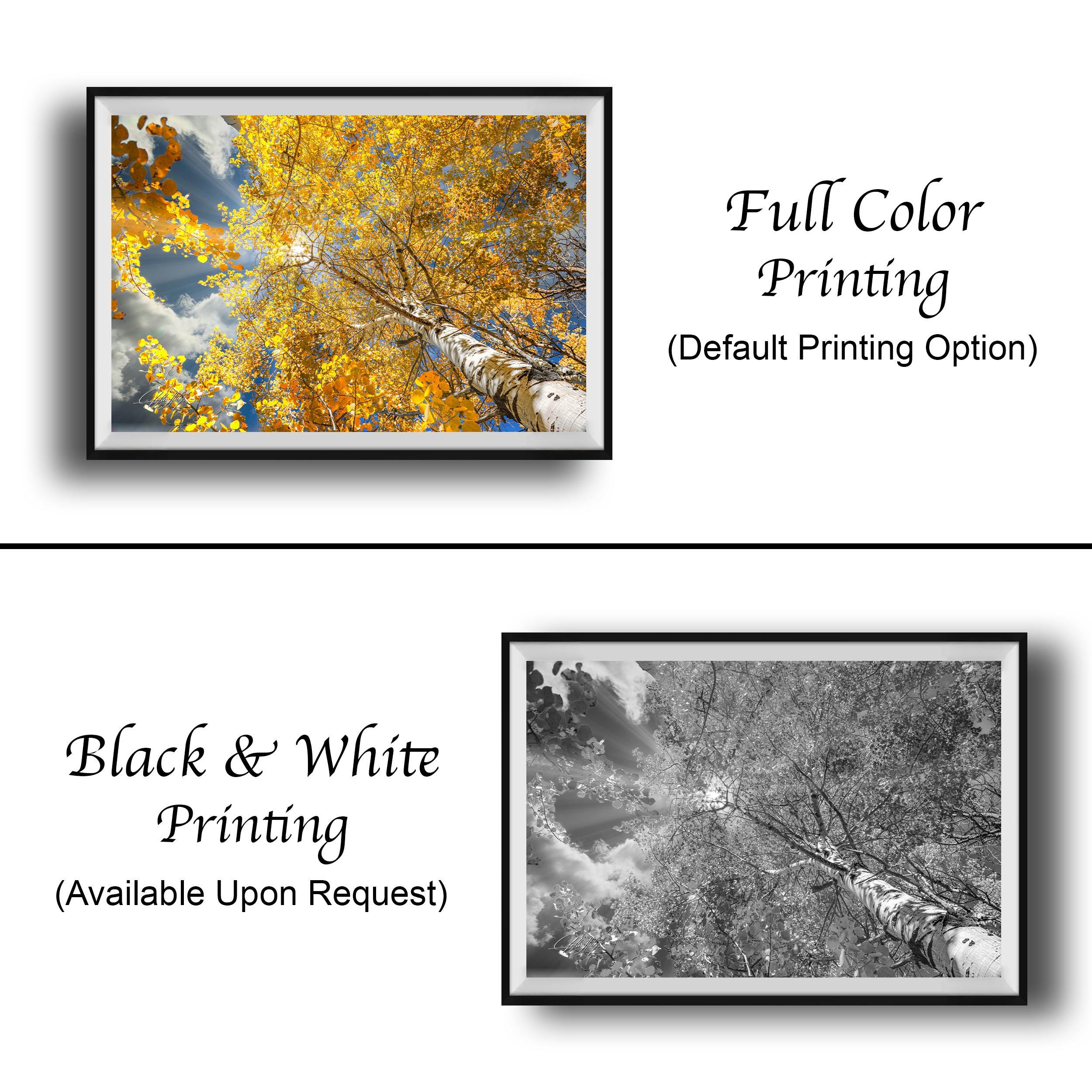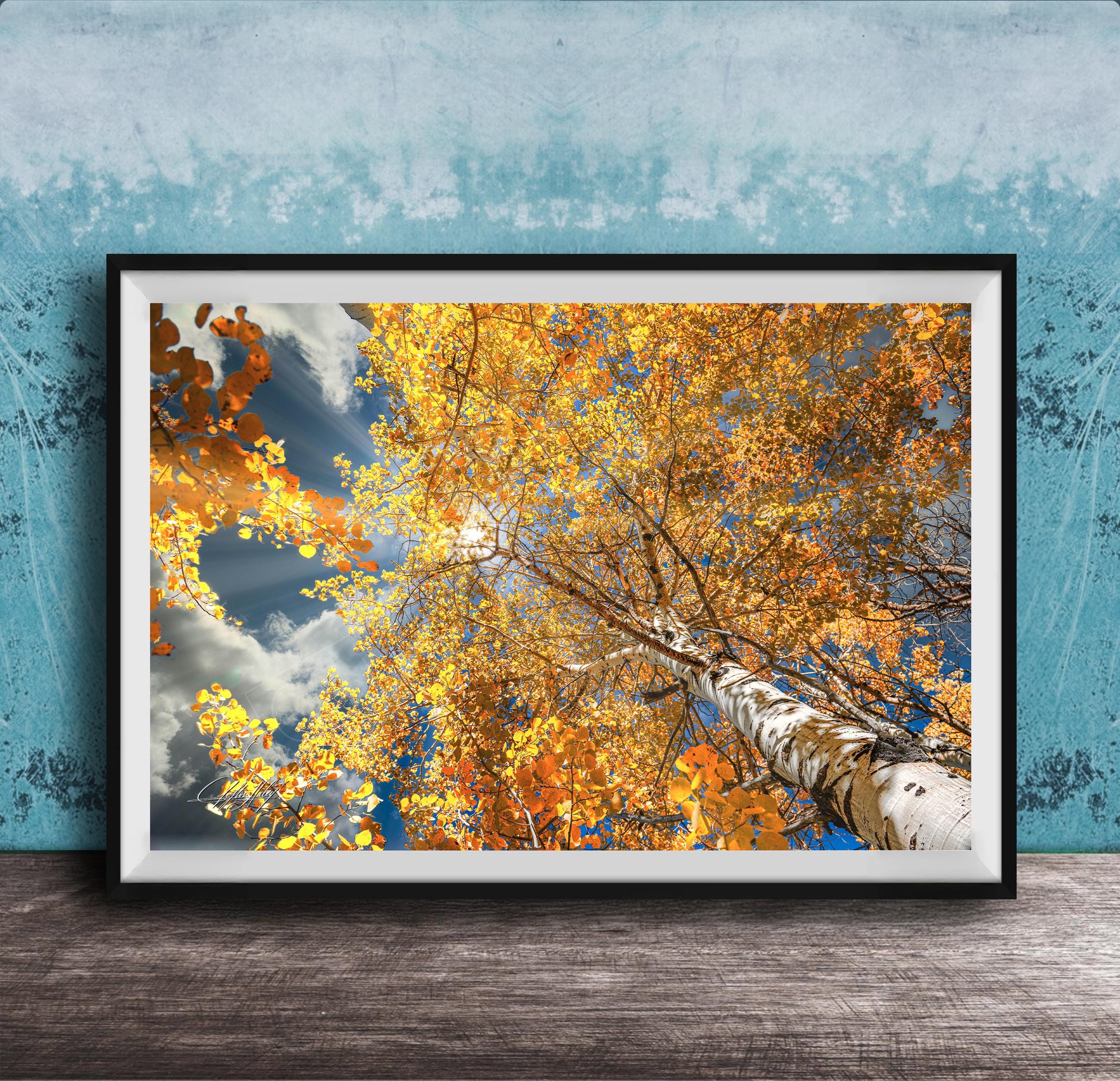 Experience the vibrant beauty of aspen trees print Colorado, capturing fall colors decor perfect for your mountain trail print or rustic cabin decor.